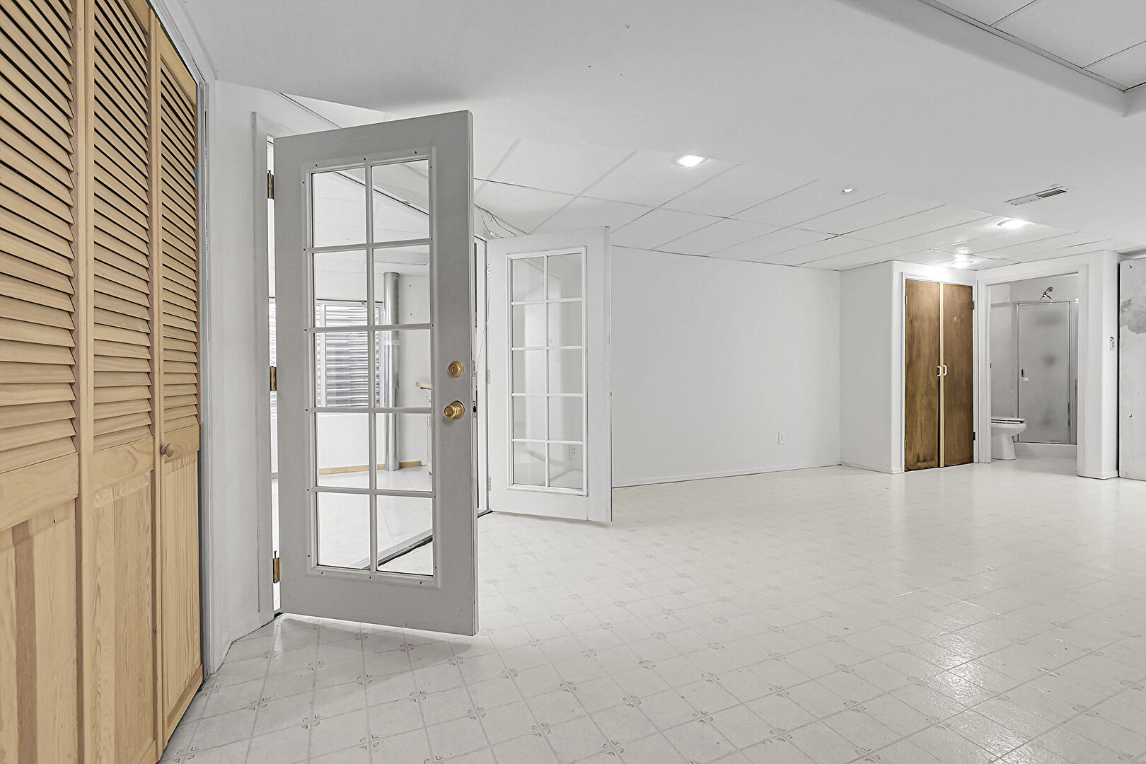 Baseboards Wall, Drop Ceiling, Drywall, Natural Light, Recessed Lighting, Vent, Vinyl Floor, French Doors