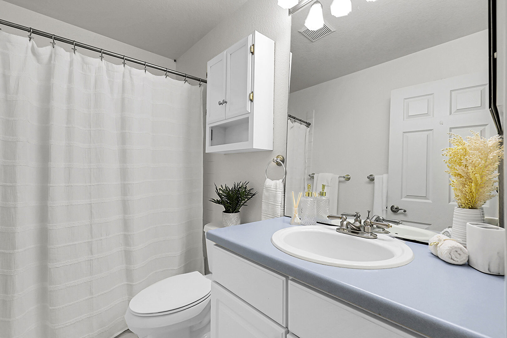 Baseboards Wall, Double Vanity, Drywall, Full Bathroom, Notable Chandelier, Textured Ceiling, Tile Floor, Vent, Walk In Closet, Full Bathroom, Vanity