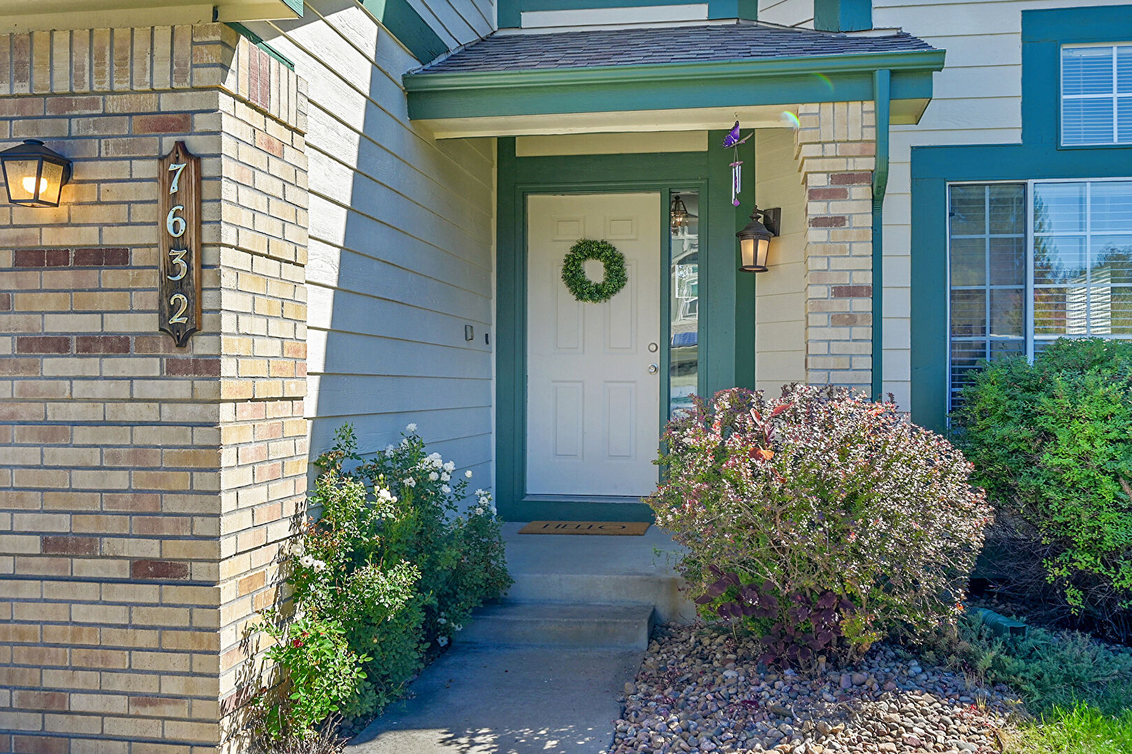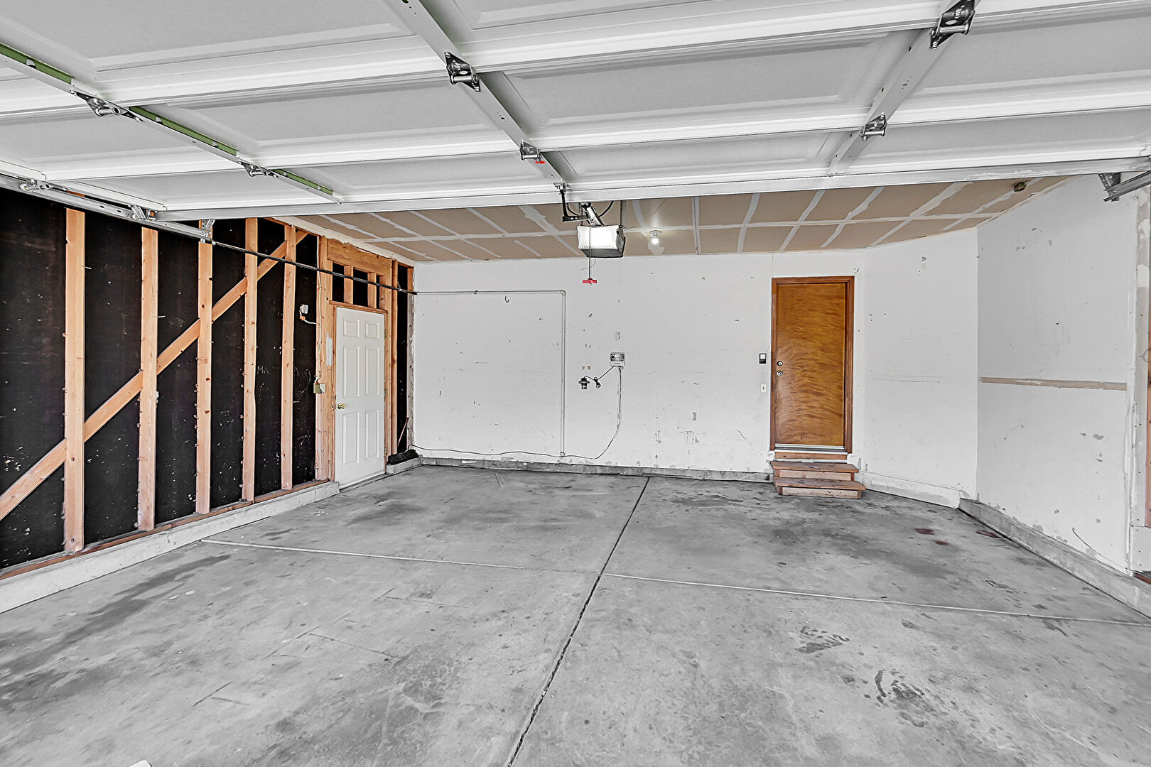 Brick Siding, Built In Garage, Downspout, Driveway, Fence, Gutters, Horizontal Siding, Lawn, Shingle Roof, Driveway, Horizontal Siding
