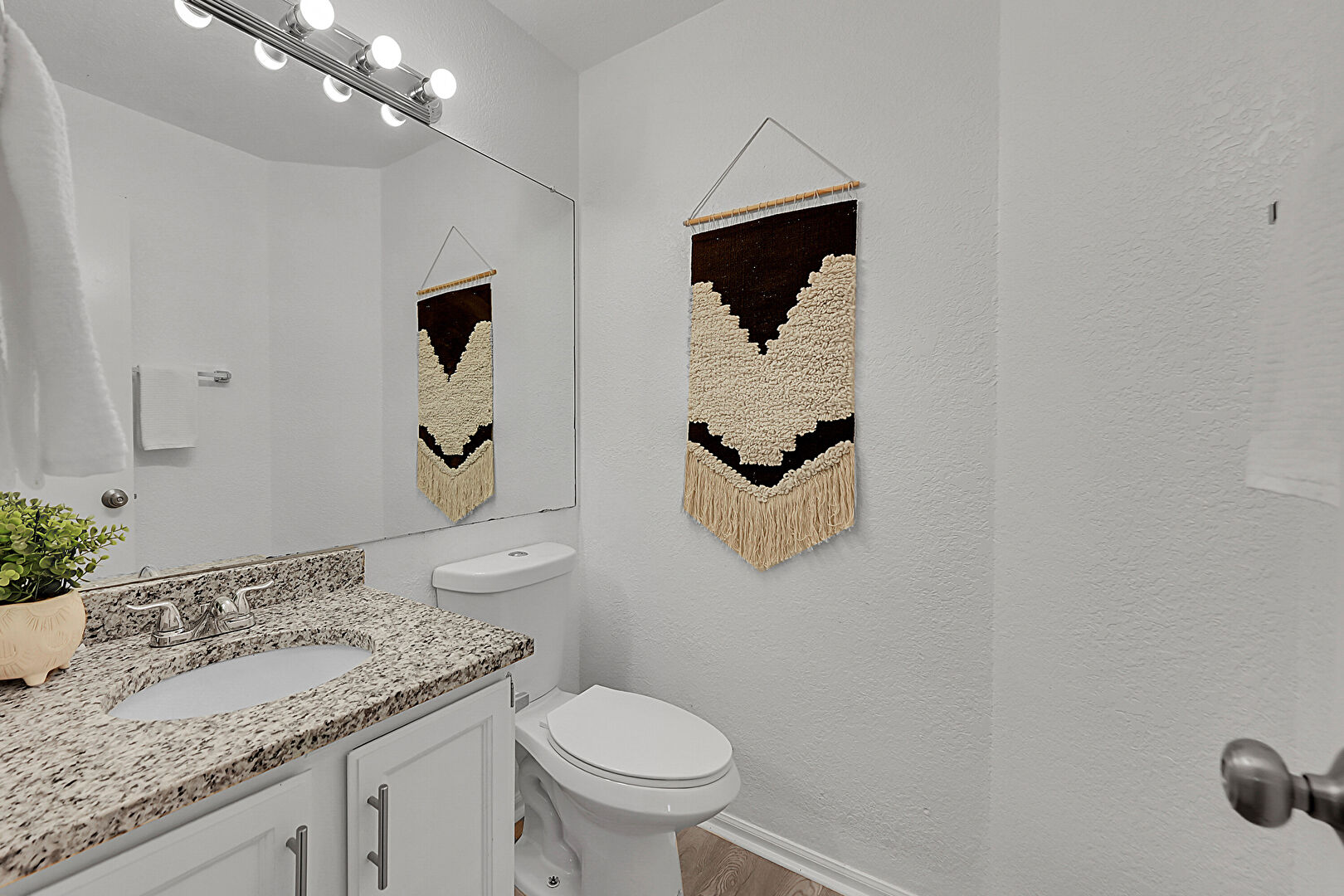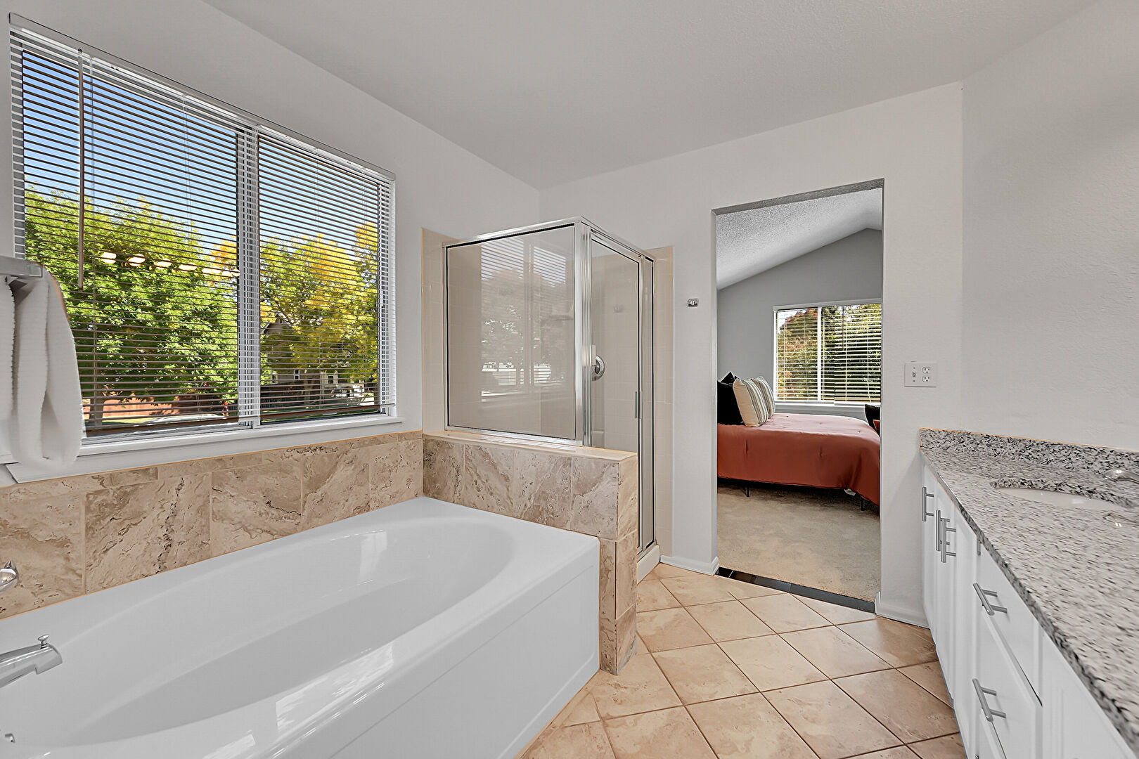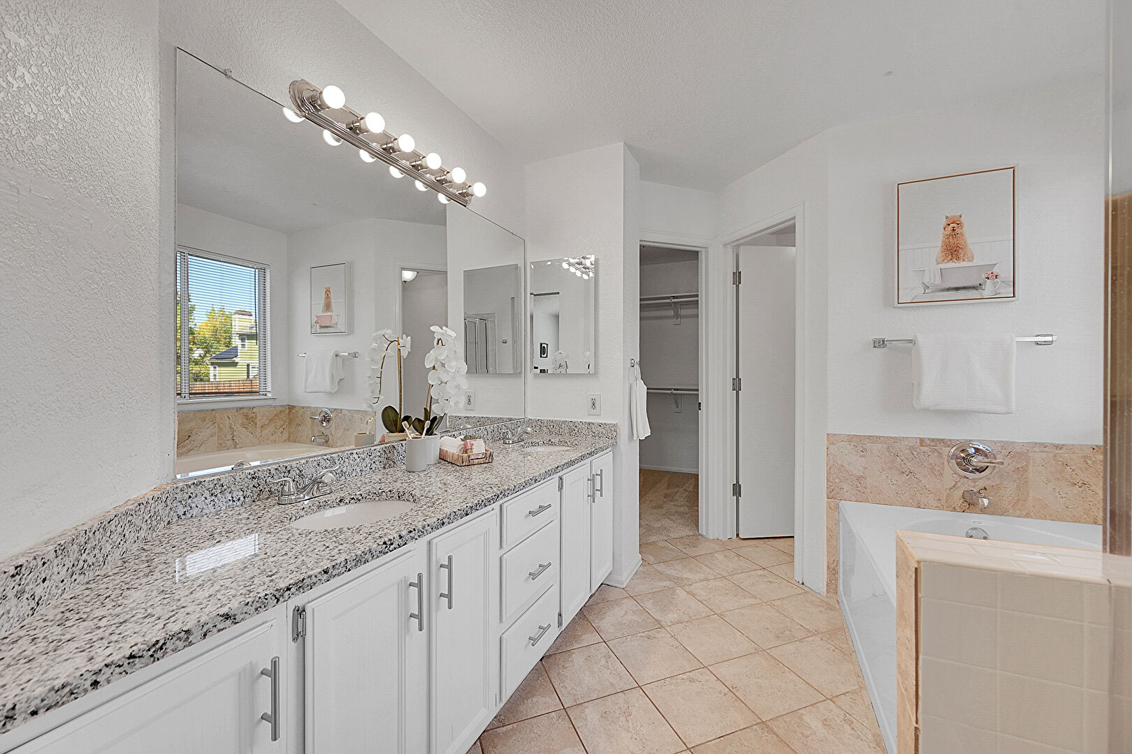 Baseboards Wall, Carpet, Combined Bath Shower, Double Vanity, Drywall, Ensuite Bathroom, Full Bathroom, Half Bathroom, Natural Light, Textured Ceiling, Textured Wall, Tile Floor, Vanity, Vaulted Ceiling, Walk In Closet, Wood Finish Floor, Full Bathroom, Natural Light, Textured Ceiling, Vanity, Wood Finish Floor