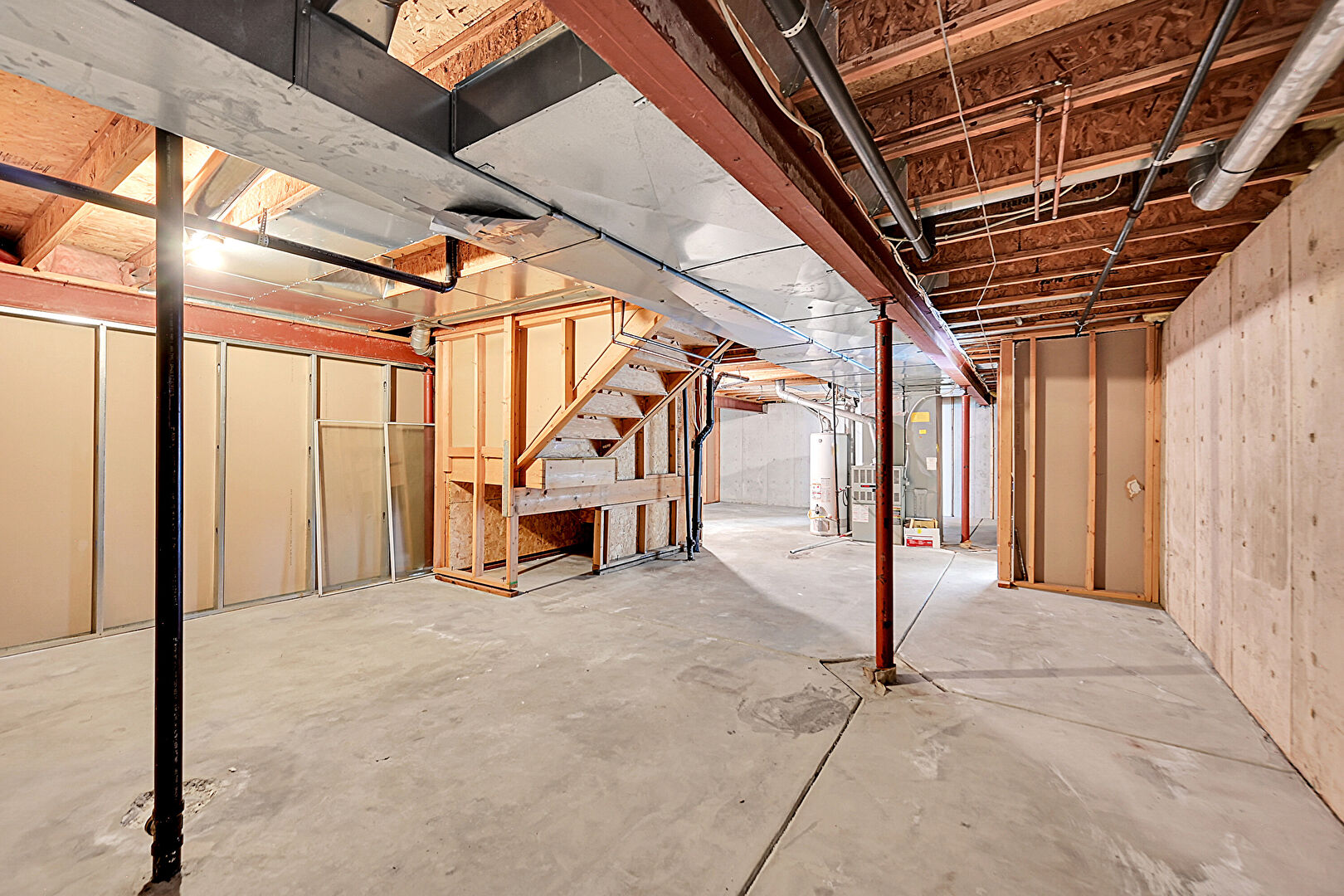 Basement, Concrete Foundation, Drywall, Furnace, Stairs, Water Heater, Basement, Furnace, Natural Light