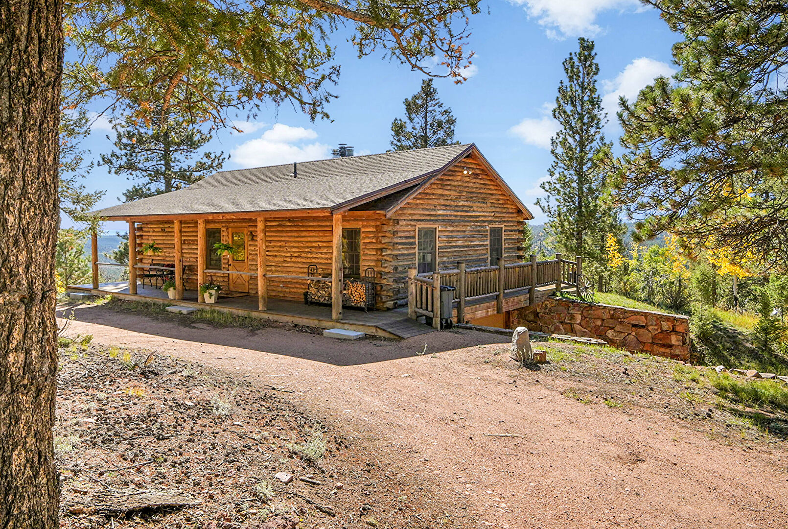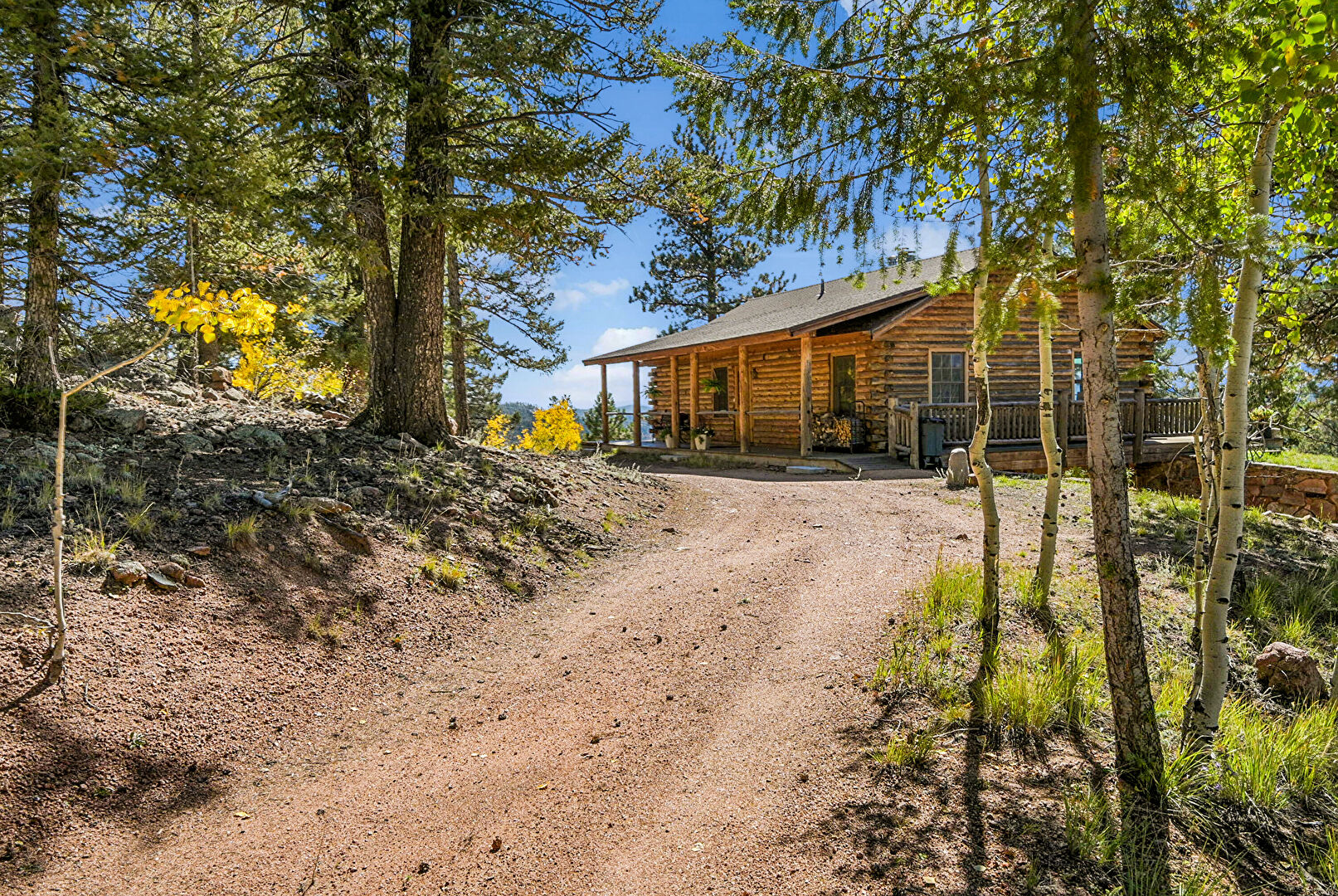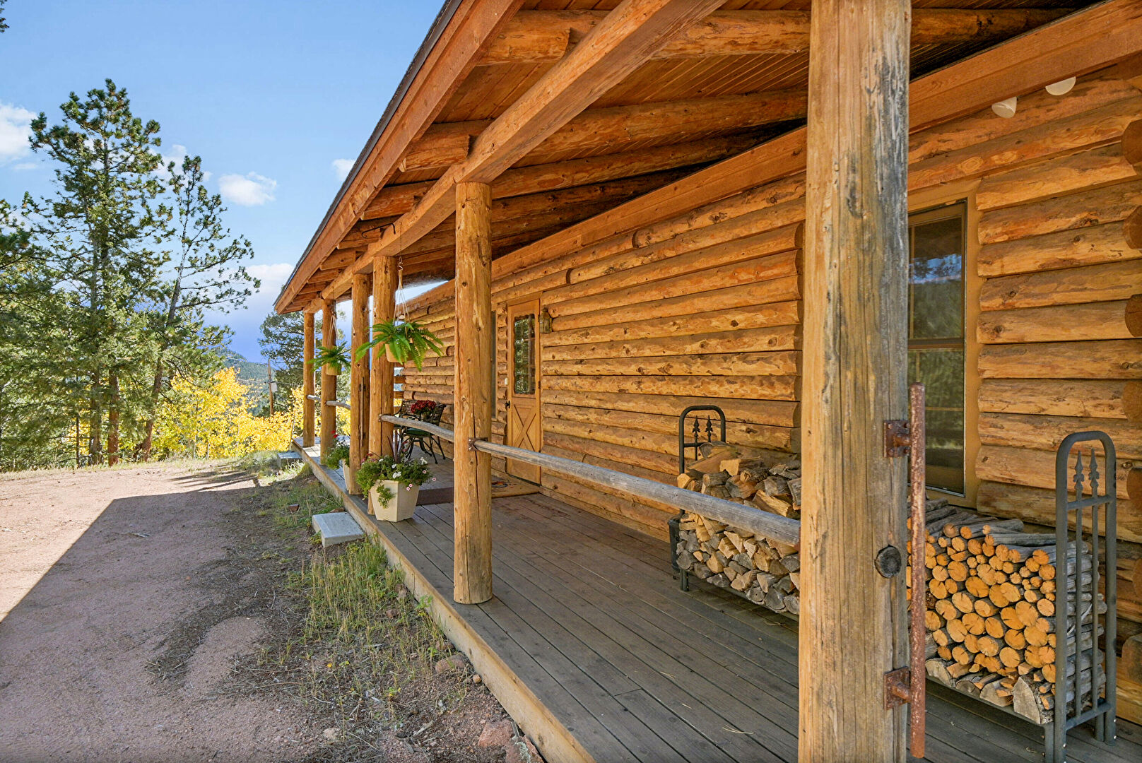 Basement Garage, Built In Garage, Chimney, Deck, Downspout, Driveway, Forest View, Horizontal Siding, Lawn, Log Siding, Mountain View, Parking Pad, Patio, Porch, Shingle Roof, Wood Siding, Basement Garage, Built In Garage, Deck, Gutters, Horizontal Siding, Log Siding