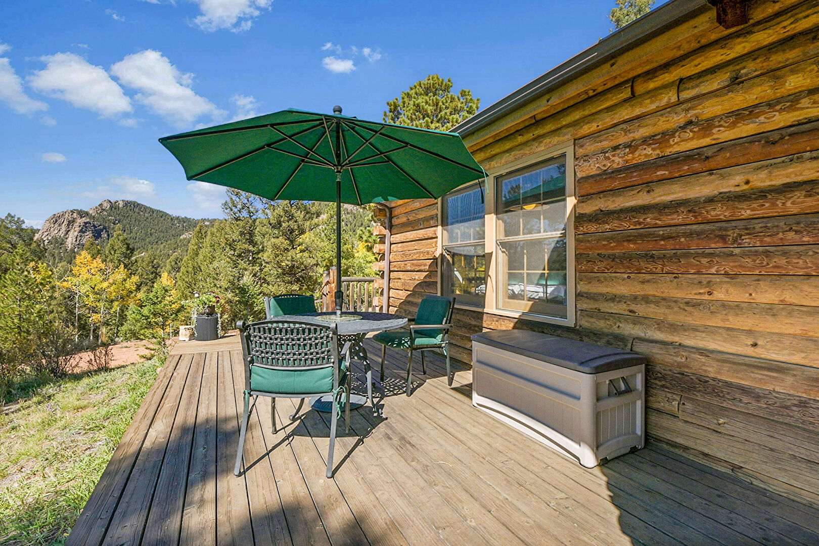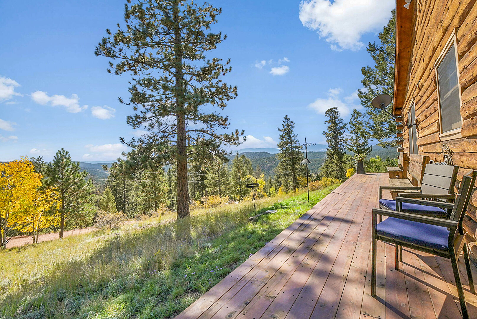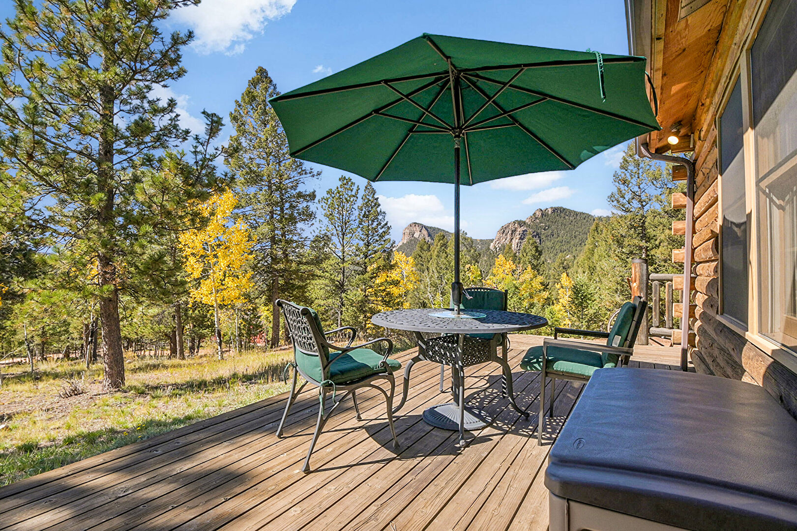 Deck, Forest View, Mountain View, Outdoor Dining Area, Deck, Forest View, Hot Tub, Mountain View, Satellite Dish, Woods View