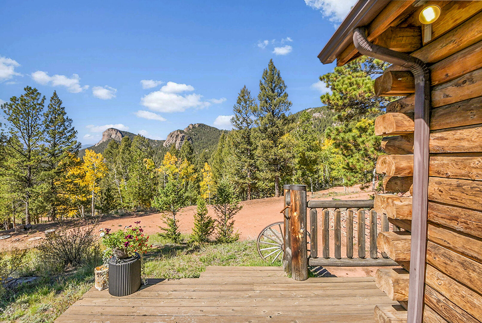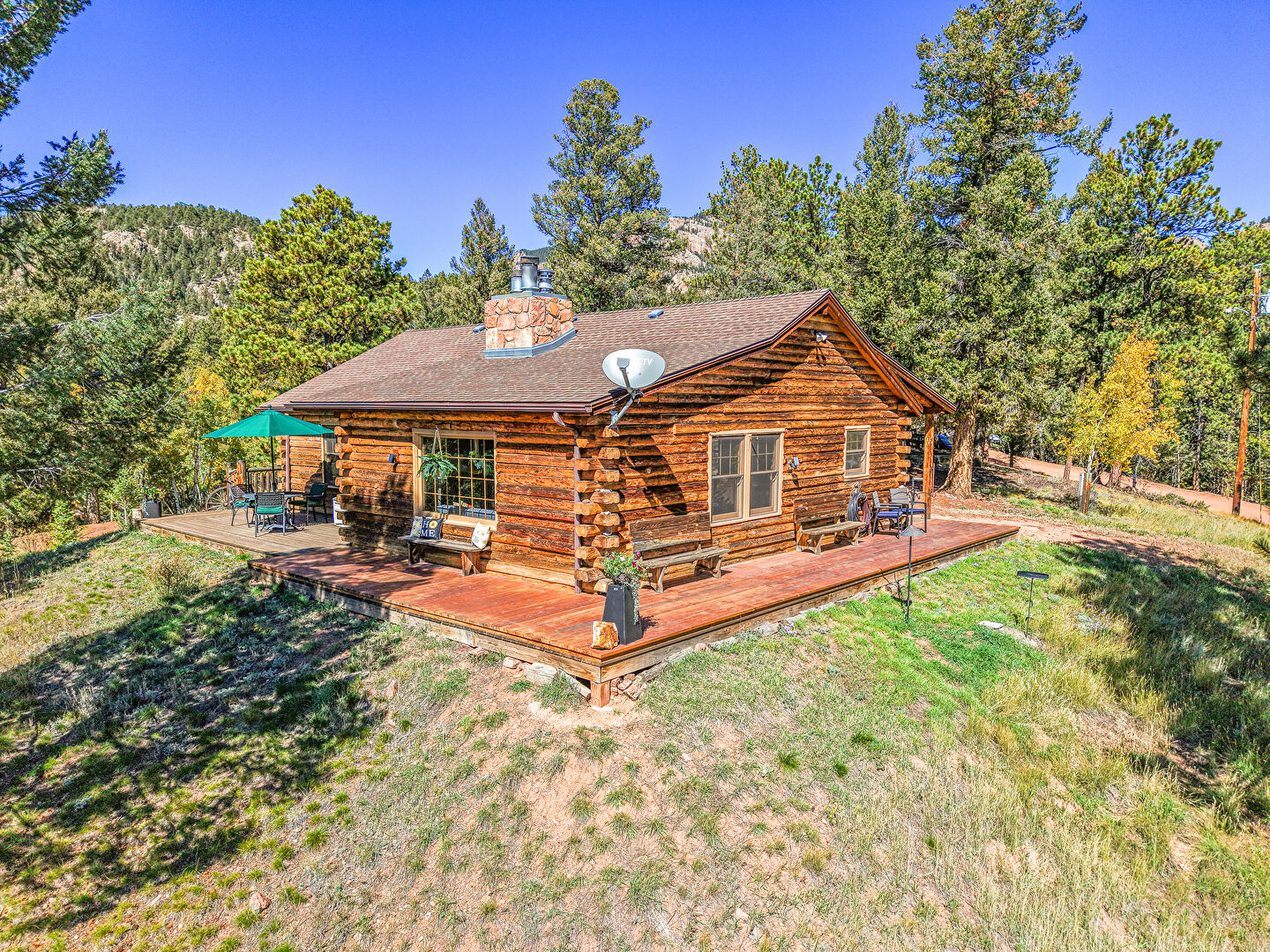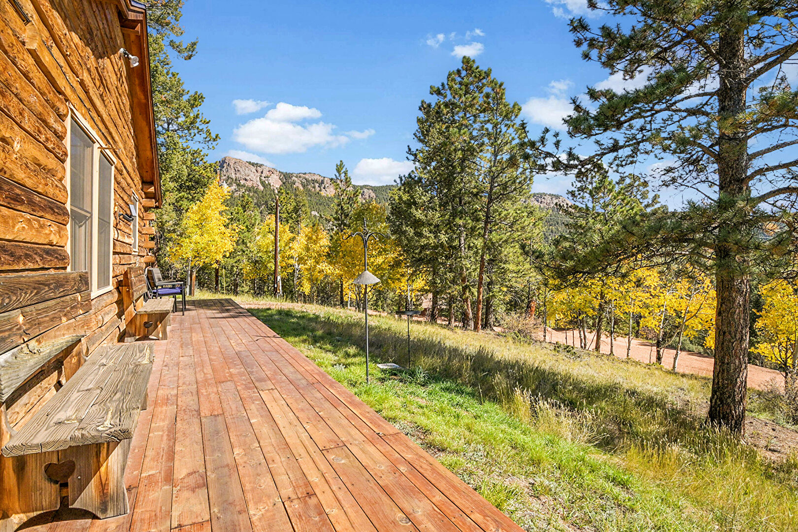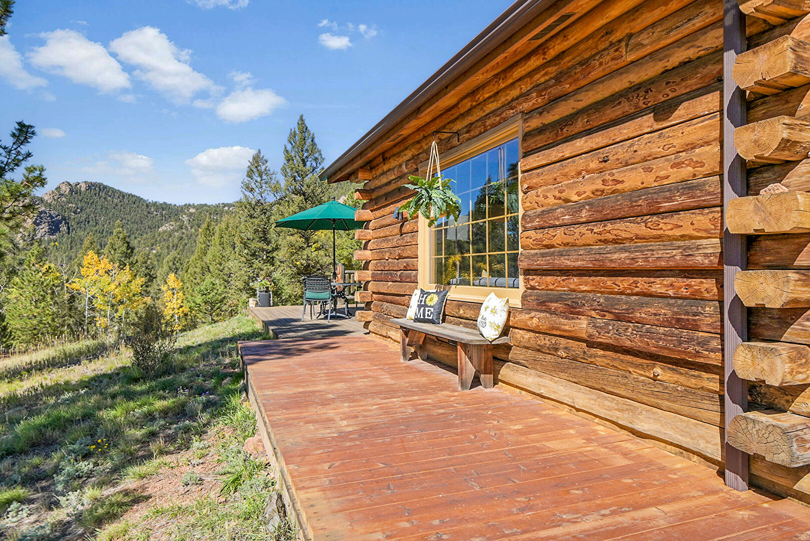 Deck, Forest View, Mountain View, Outdoor Dining Area, Deck, Forest View, Hot Tub, Mountain View, Satellite Dish, Woods View