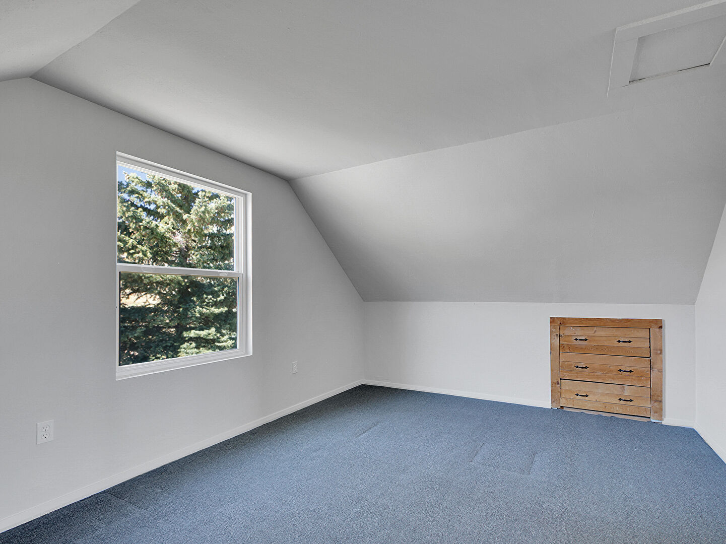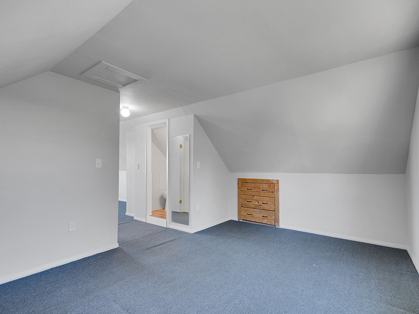 Baseboards Wall, Bonus Room, Carpet, Drywall, Natural Light, Scuttle, Vaulted Ceiling, Vent, Natural Light, Scuttle, Textured Ceiling