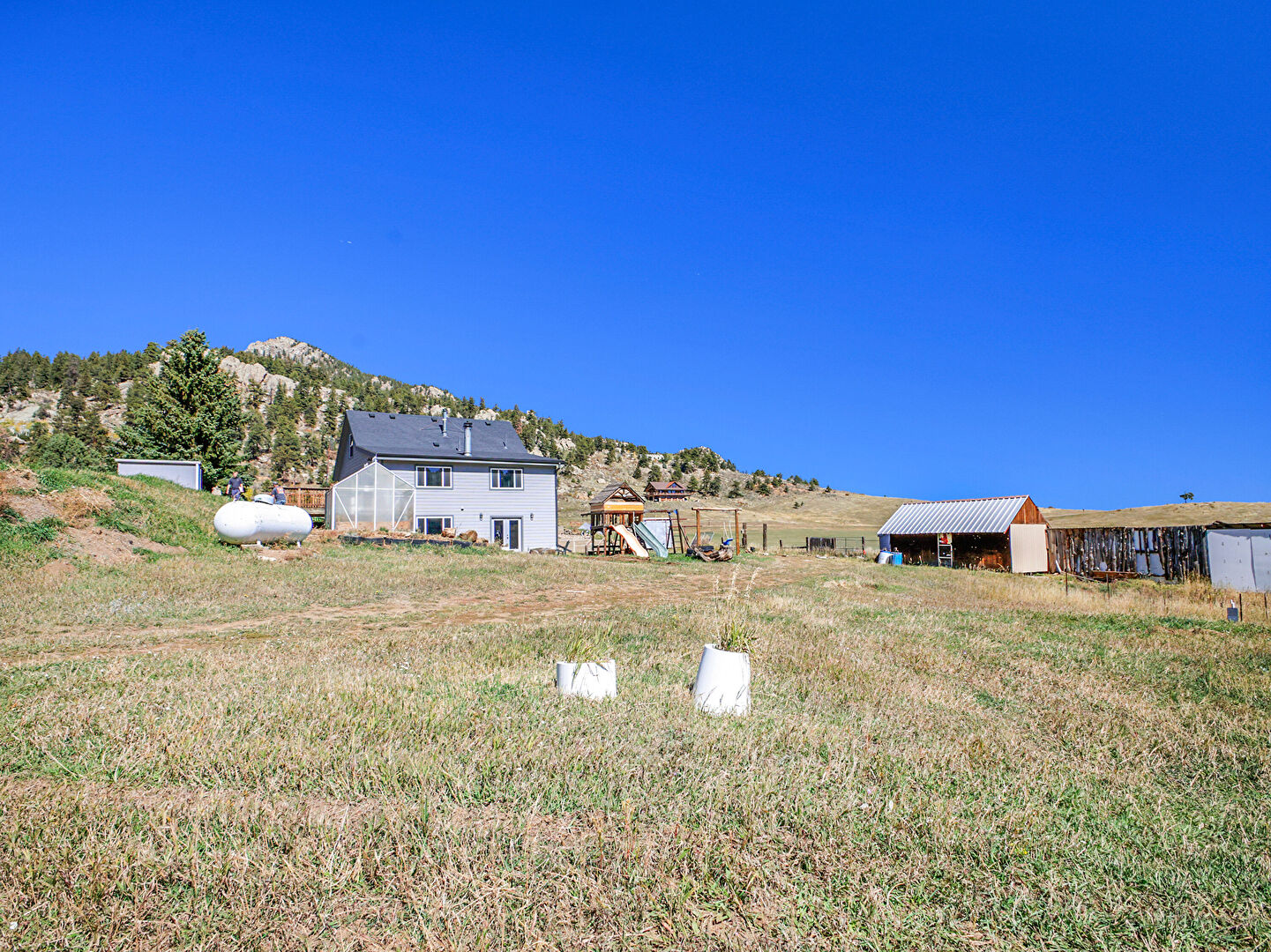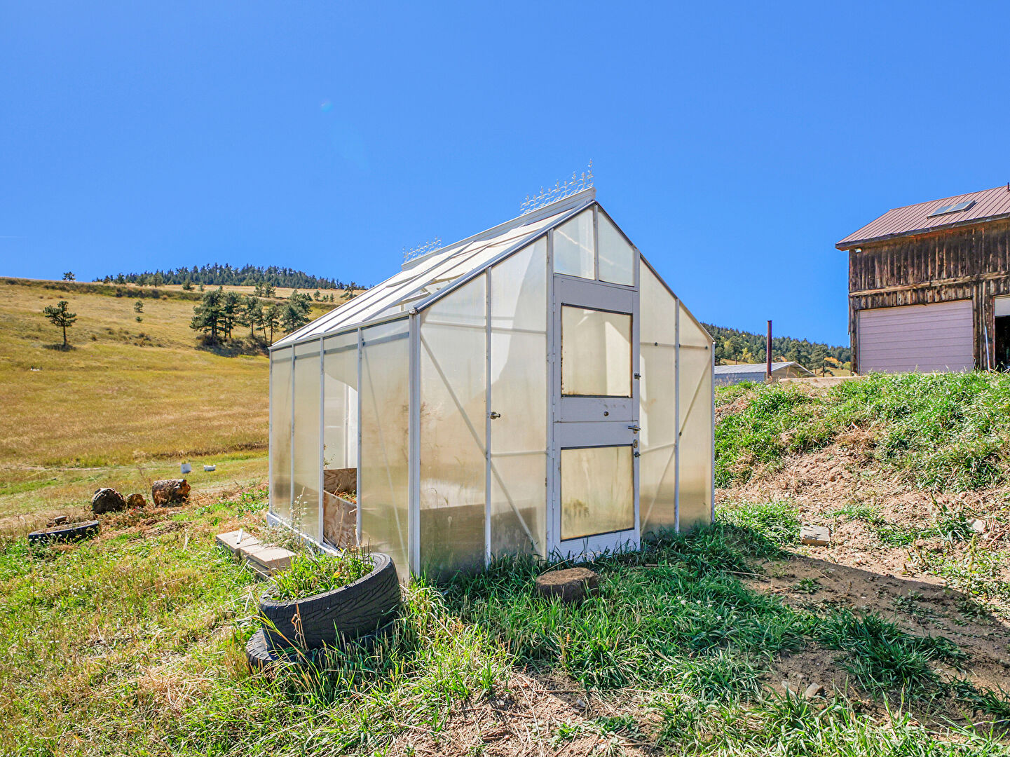Greenhouse, Lawn, Mountain View, Outdoor Structure, Playground, Rural View, Propane Tank