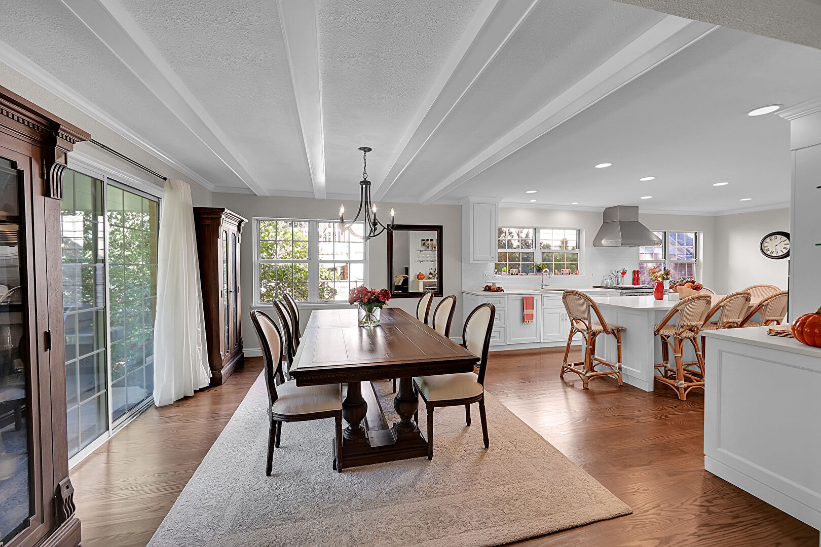 Baseboards Wall, Beamed Ceiling, Crown Molding, Drywall, Natural Light, Notable Chandelier, Recessed Lighting, Wood Finish Floor, Beamed Ceiling, Crown Molding
