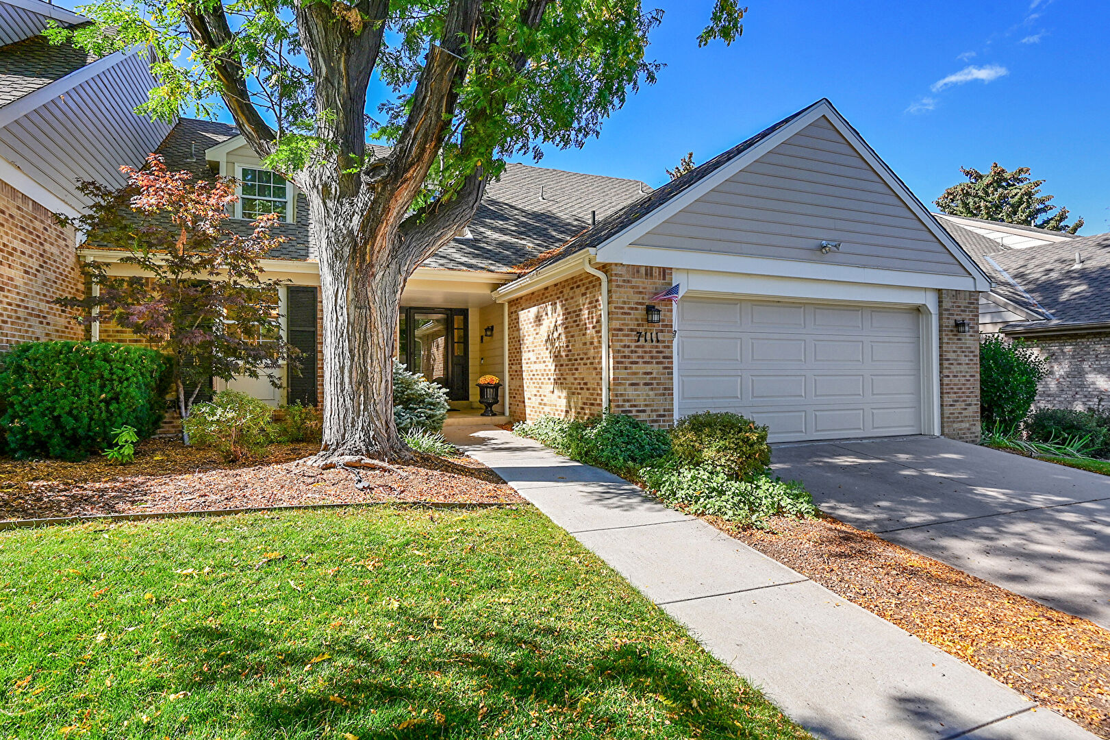 Brick Siding, Concrete Foundation, Dormer Roof, Downspout, Driveway, Gutters, Horizontal Siding, Lawn, Shingle Roof, Brick Siding, Lawn, Patio