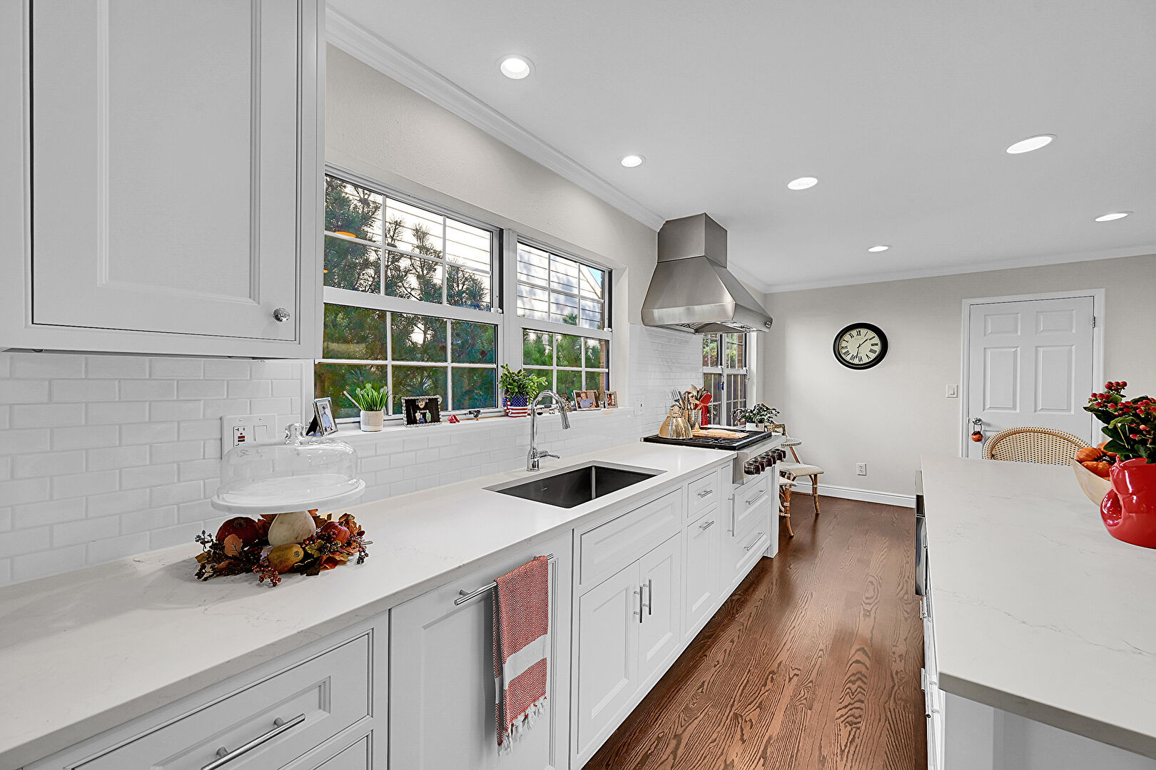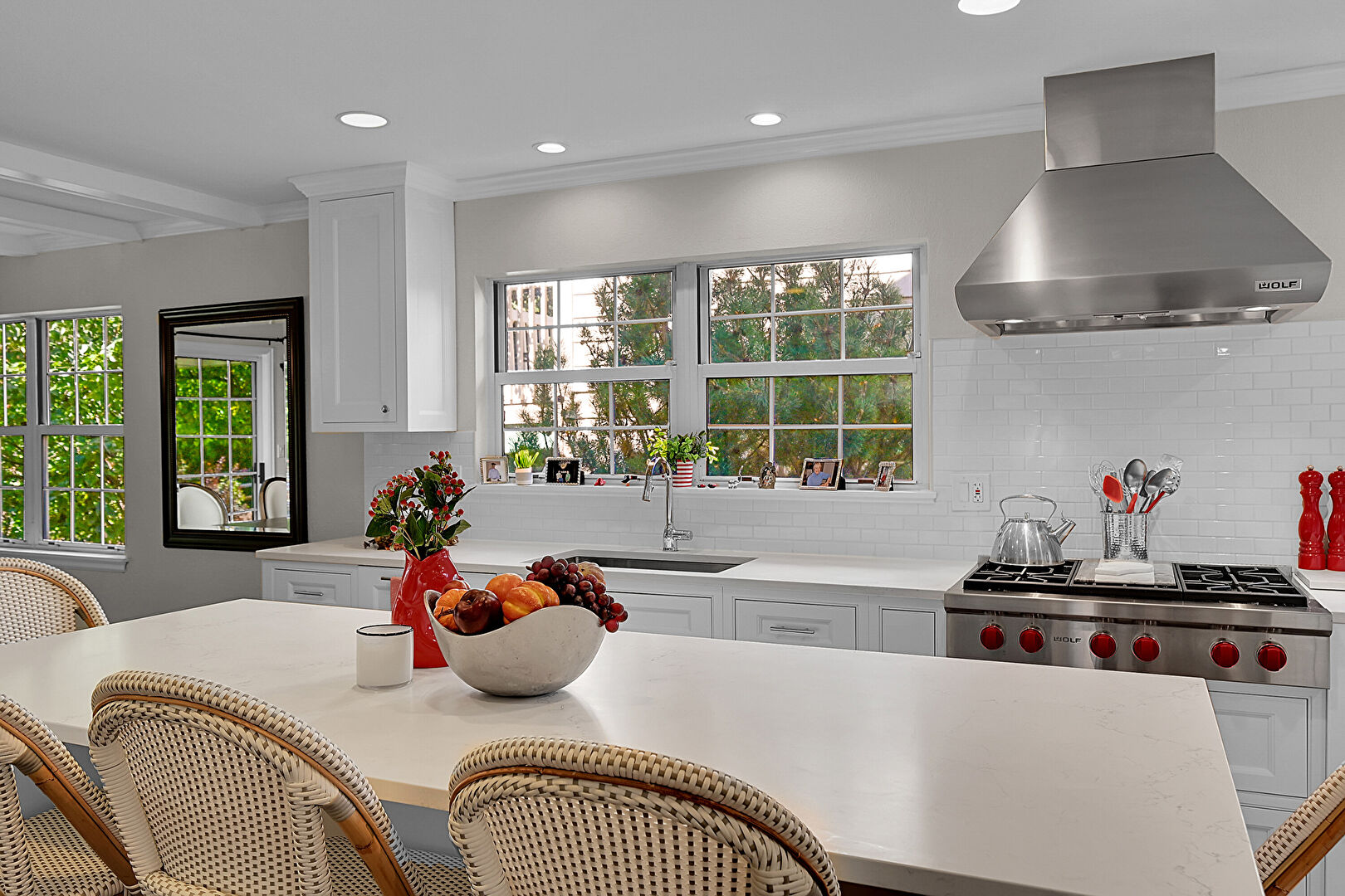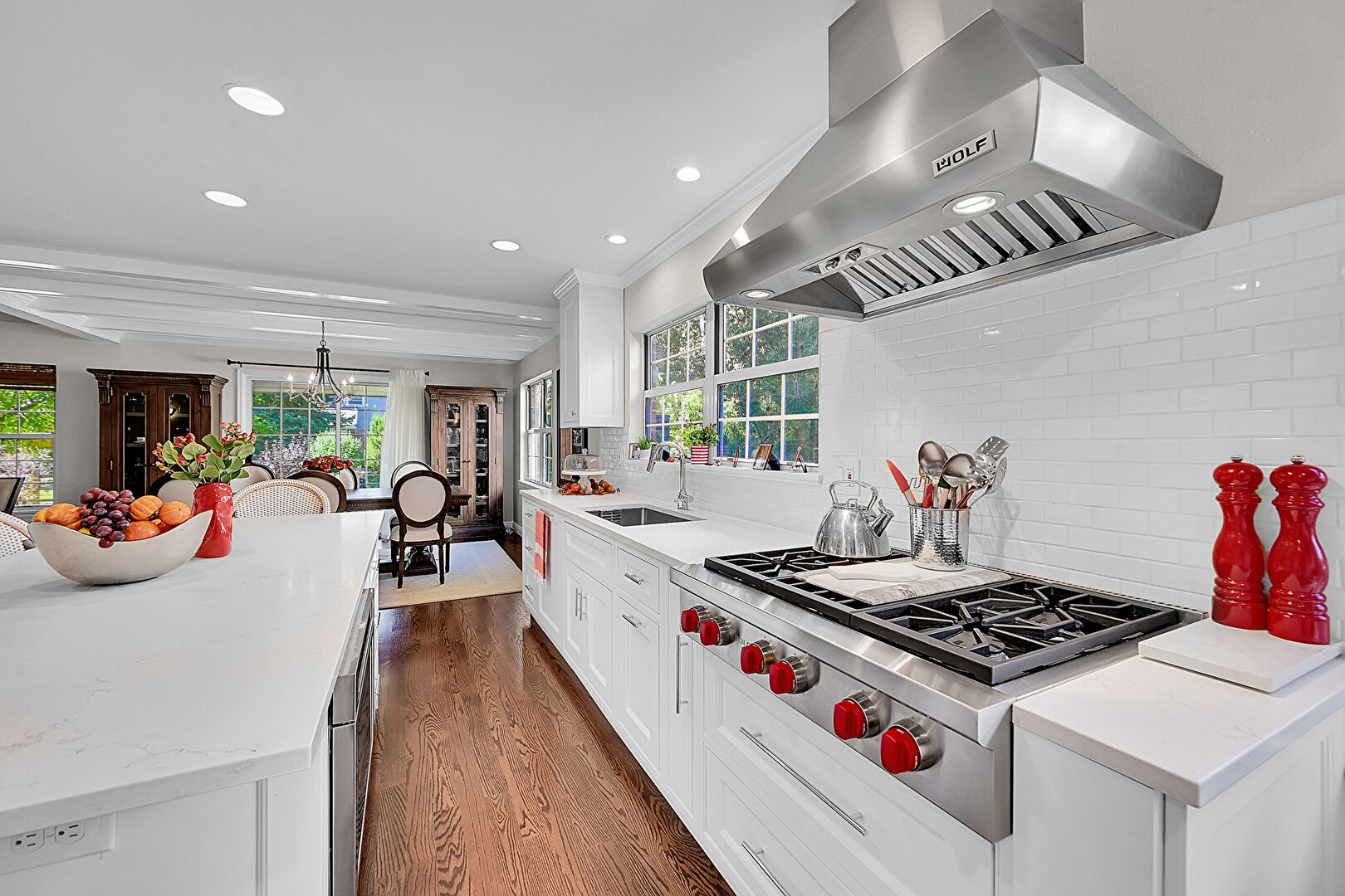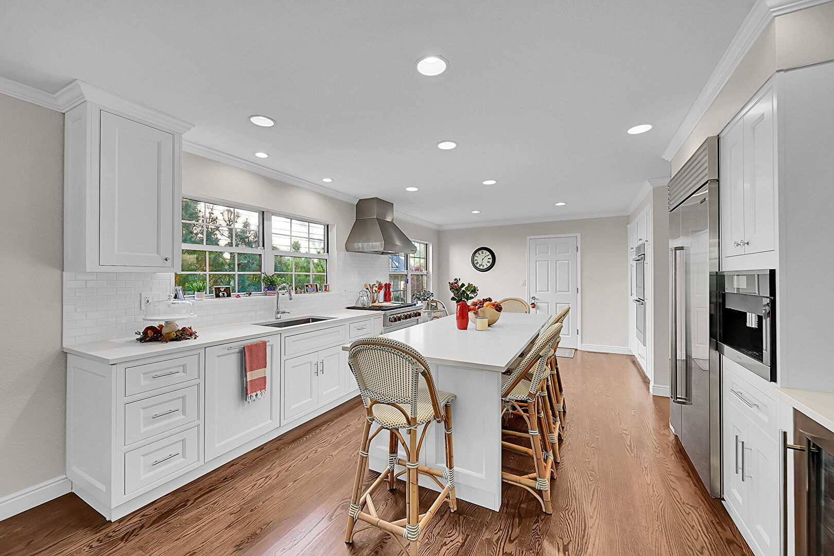 Baseboards Wall, Crown Molding, Crown Molding Cabinets, Double Oven, Drywall, Glass Insert Cabinets, Kitchen Bar, Kitchen Island, Natural Light, Notable Chandelier, Pendant Lighting, Recessed Lighting, Shaker Cabinets, Stone Countertops, Wine Cooler, Wood Finish Floor, Crown Molding, Drywall, Stone Countertops, Wine Cooler, Wood Finish Floor