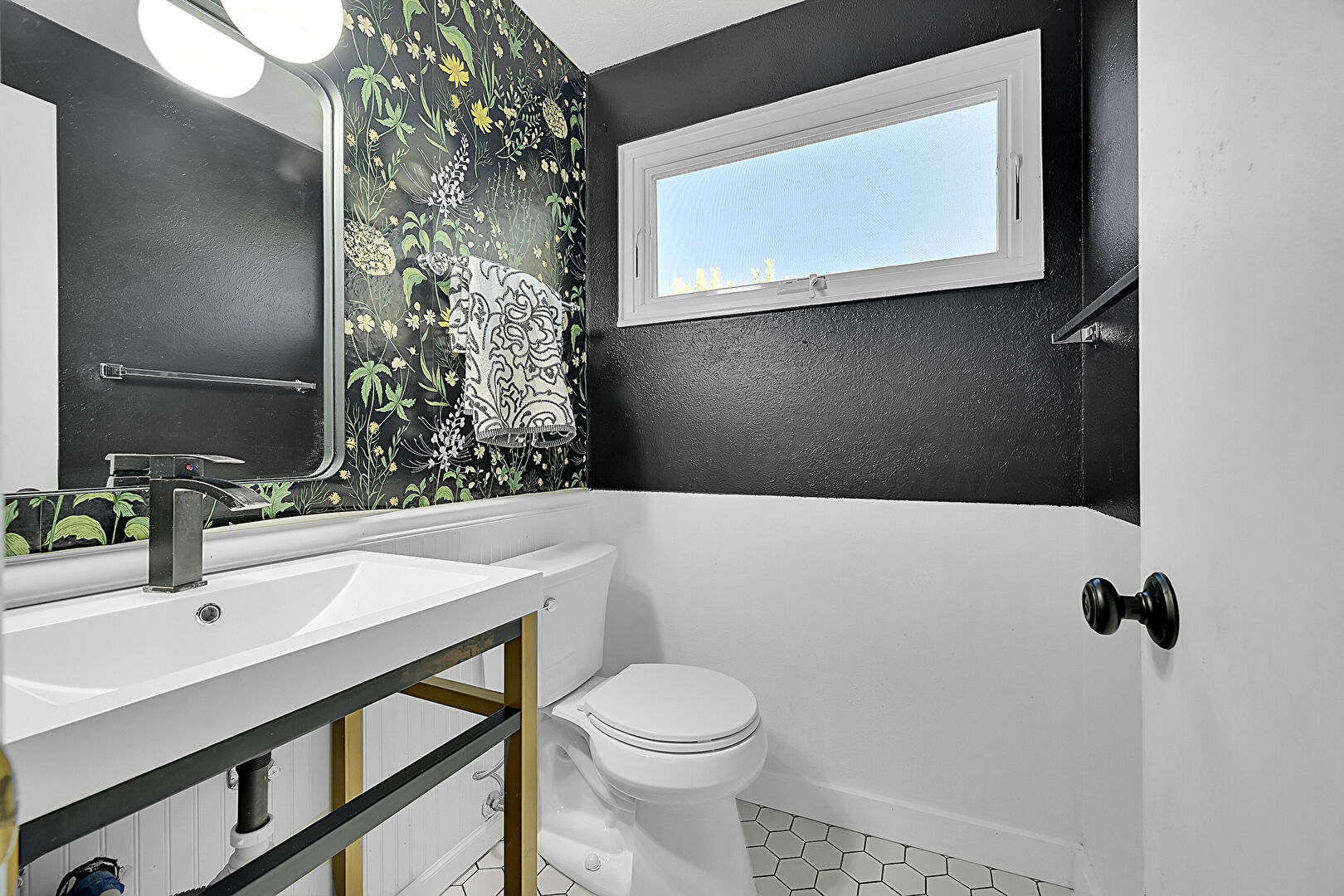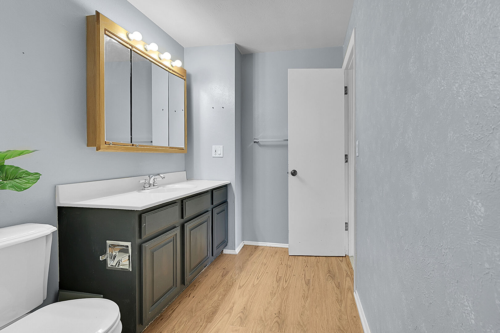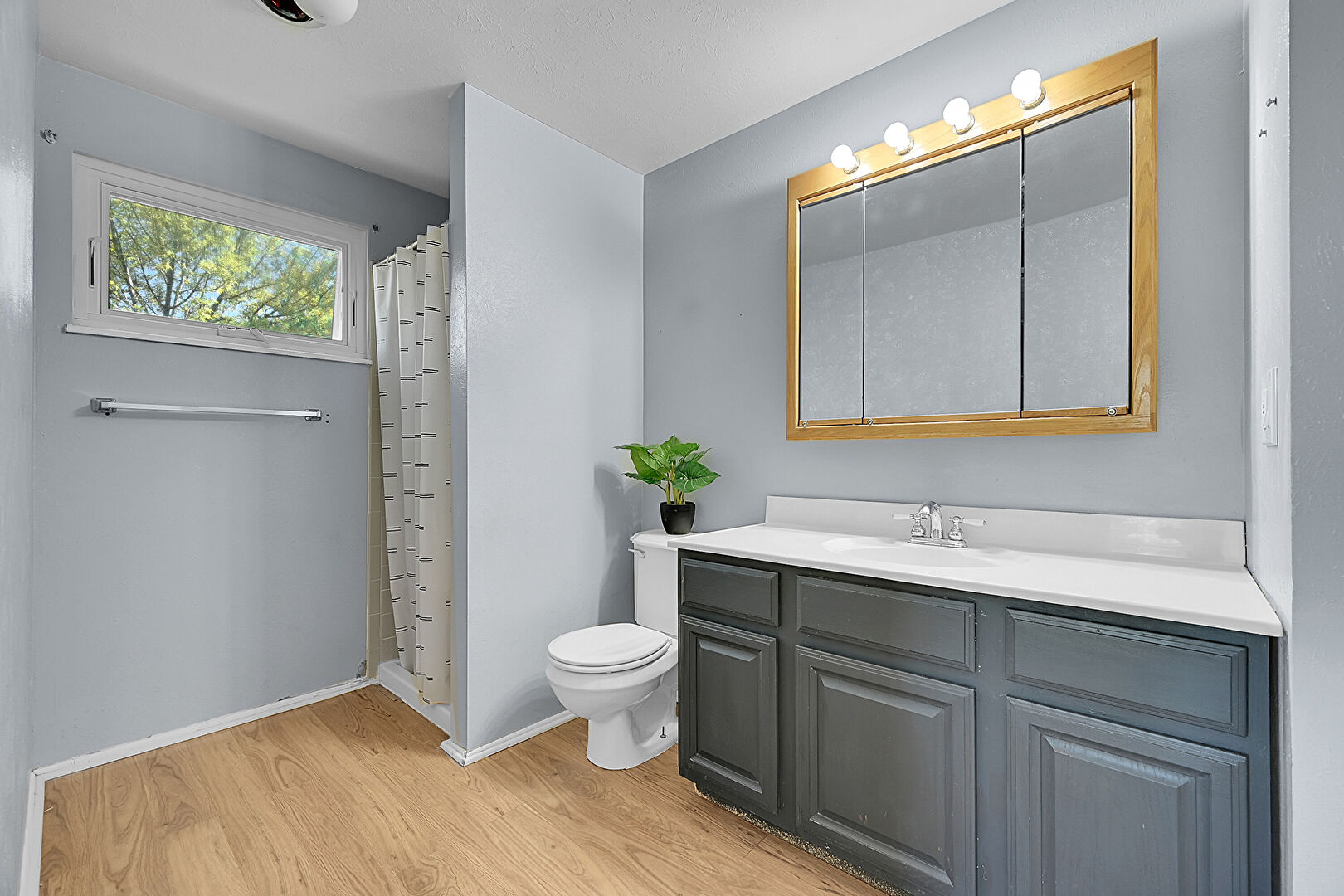 Baseboards Wall,  Drywall,  Half Bathroom,  Natural Light,  Textured Wall,  Vanity,  Wood Finish Floor, Baseboards Wall, Full Bathroom