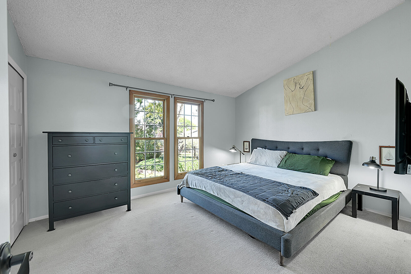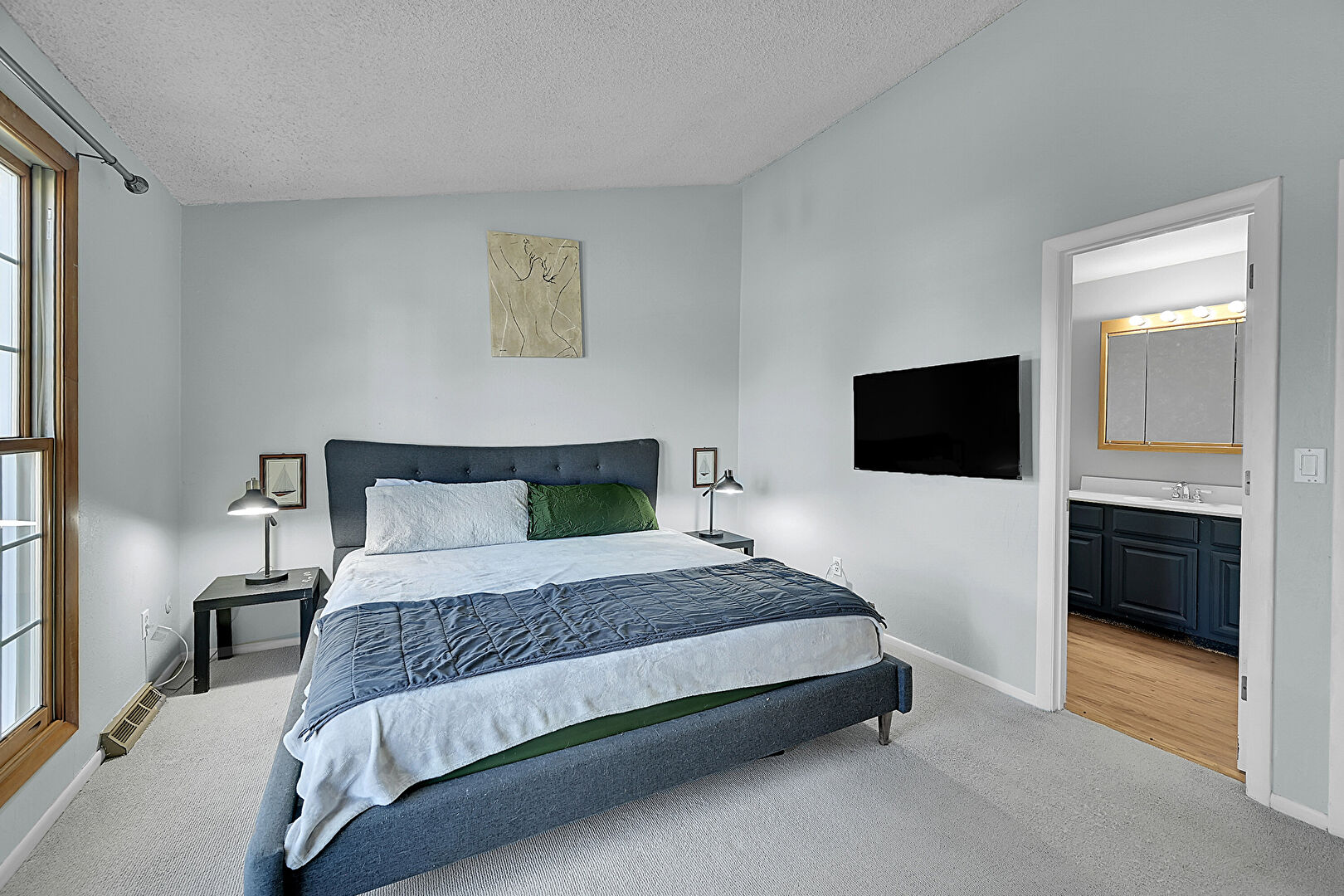 Baseboards Wall,  Carpet,  Closet,  Drywall,  Ensuite Bathroom,  Natural Light,  Textured Ceiling,  Two Closets,  Vaulted Ceiling,  Vent, Carpet, Textured Ceiling