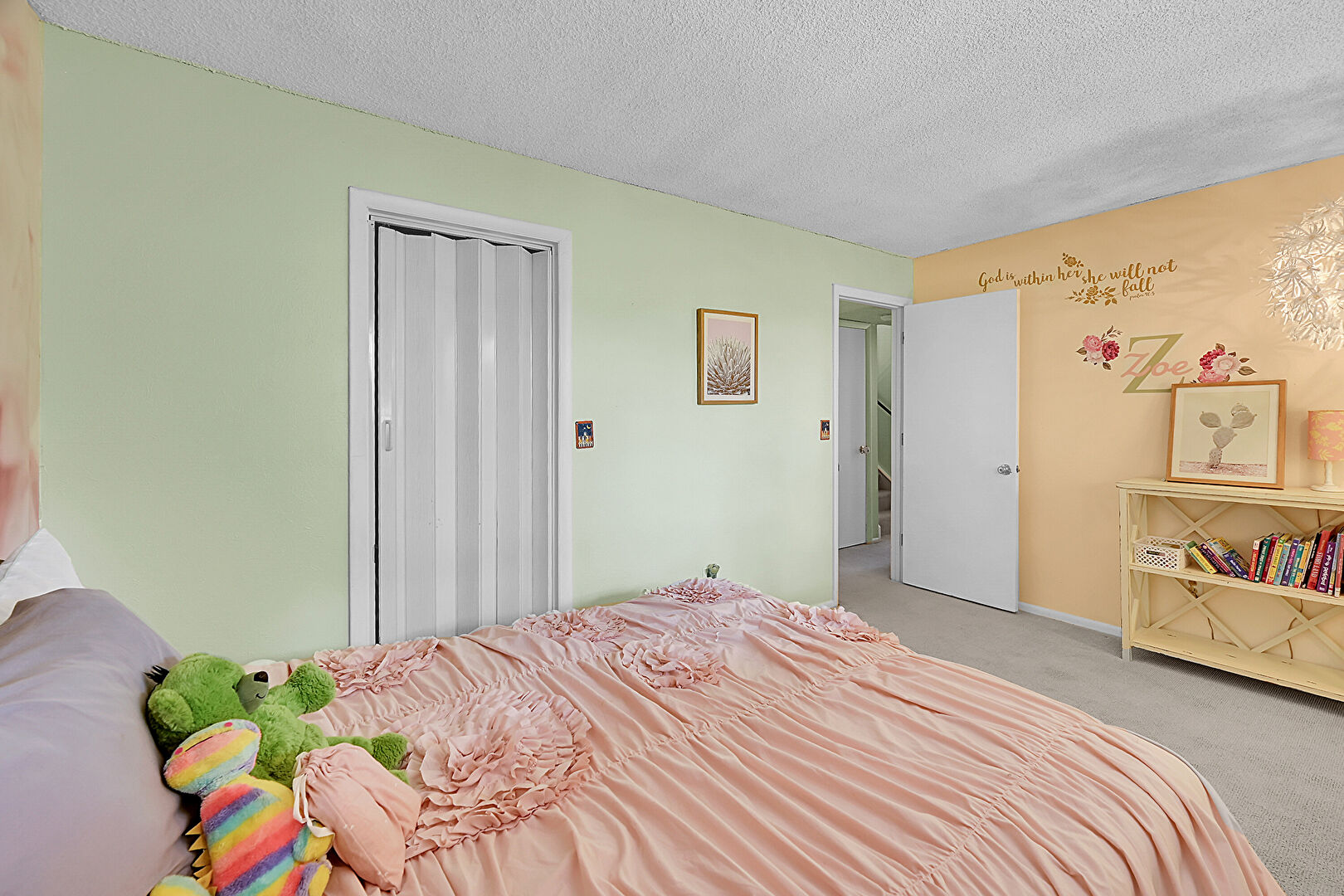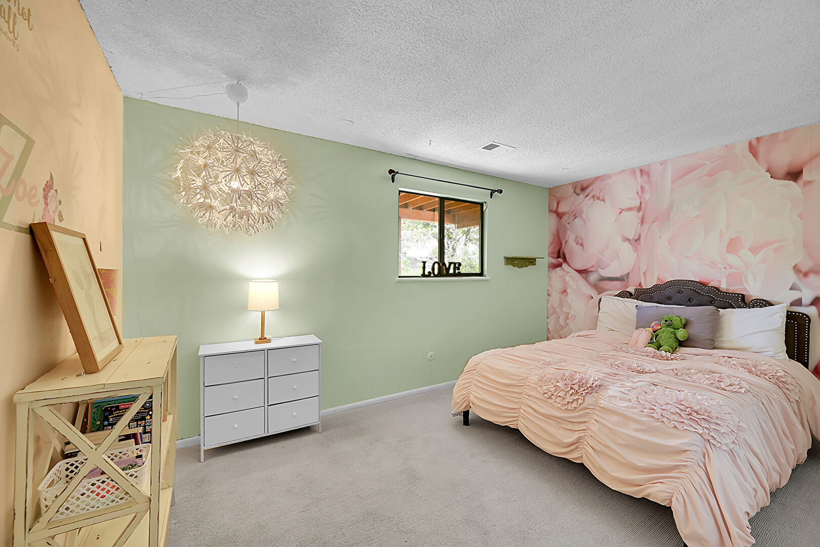 Accent Wall,  Baseboards Wall,  Carpet,  Drywall,  Natural Light,  Notable Chandelier,  Textured Ceiling,  Vent,  Wallpaper Wall, Closet, Drywall
