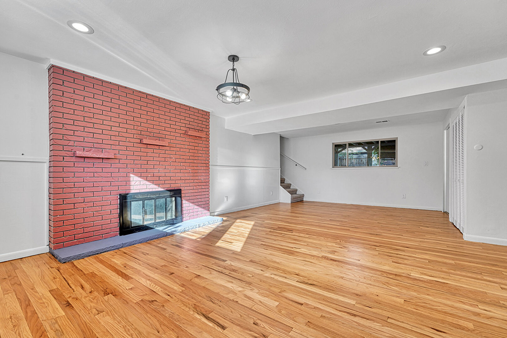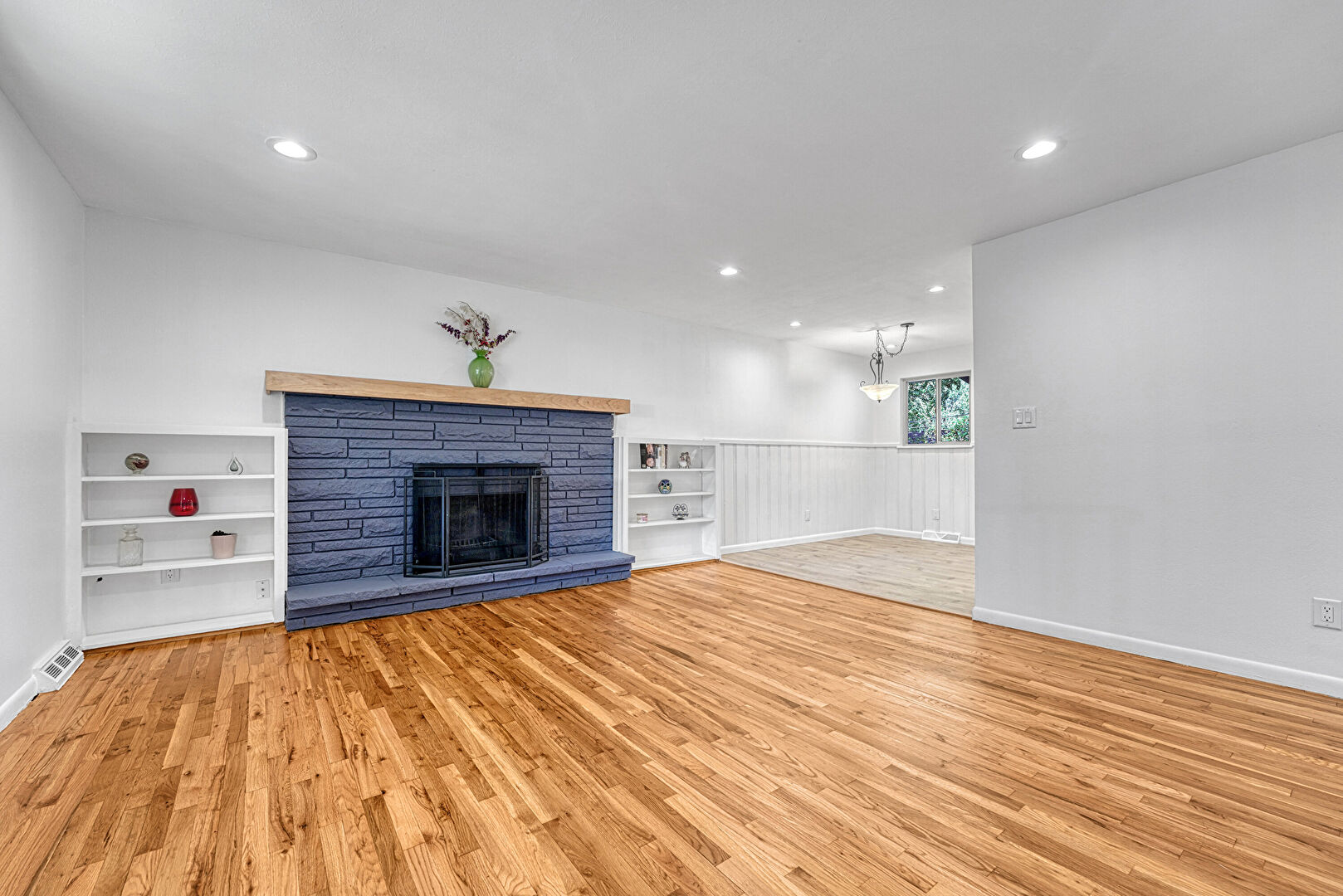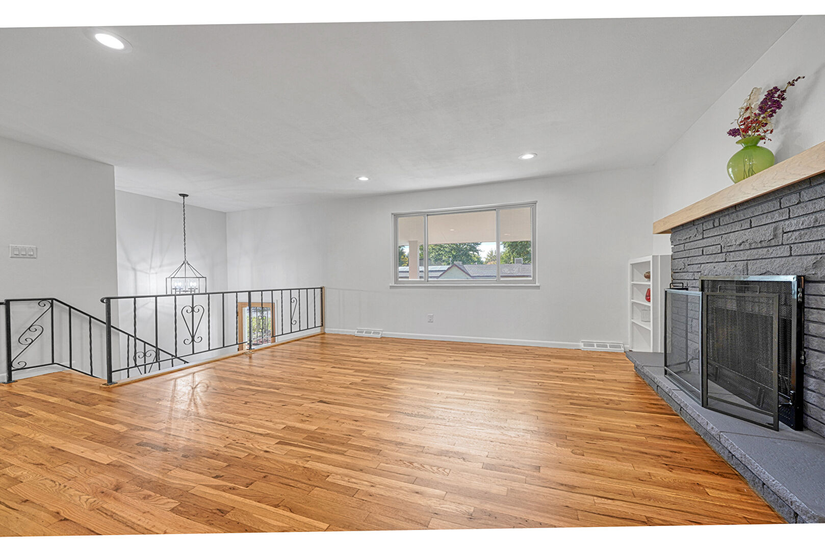 Baseboards Wall, Drywall, Fireplace, Natural Light, Recessed Lighting, Stairs, Vent, Wood Finish Floor, Drywall, Fireplace, Natural Light, Recessed Lighting