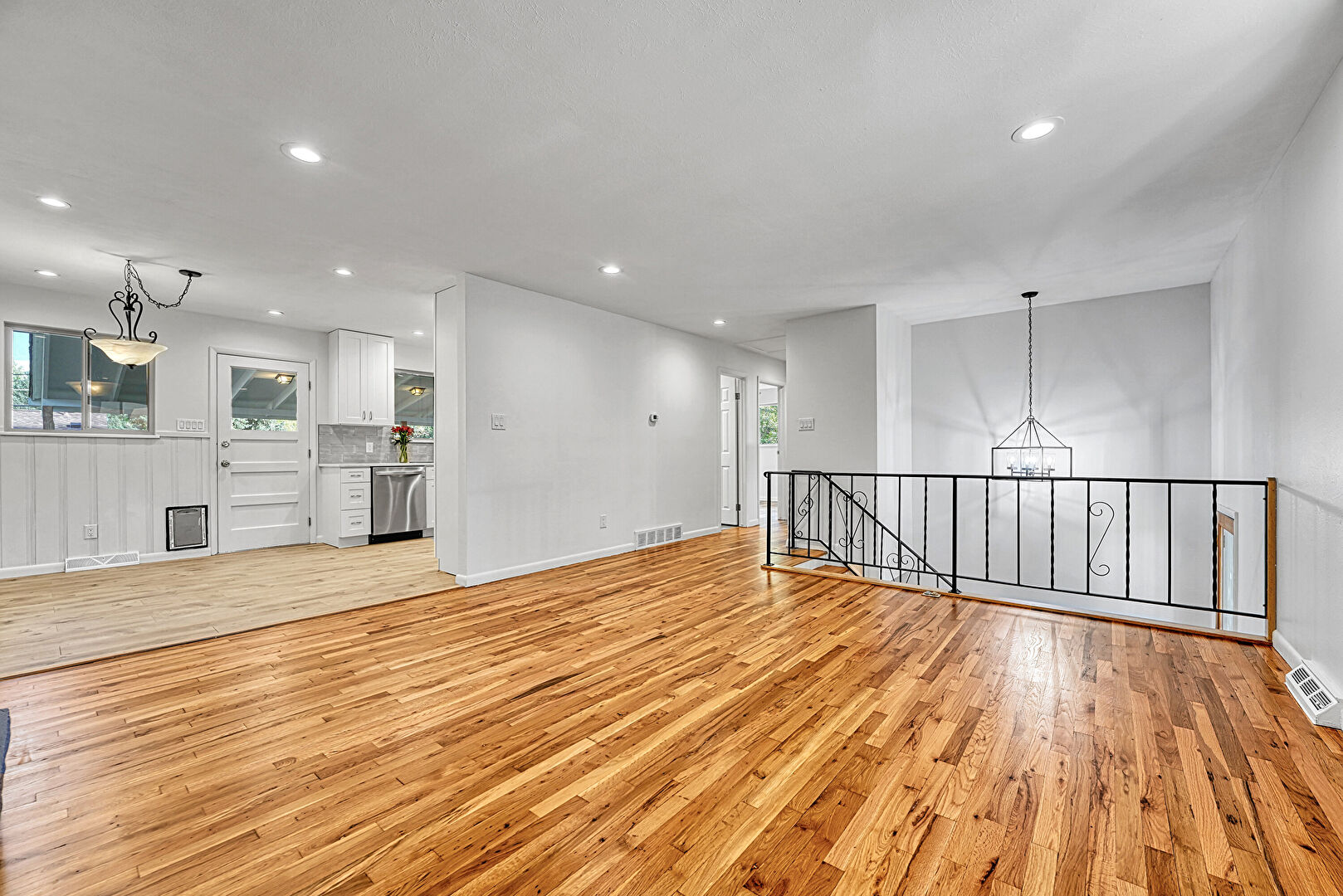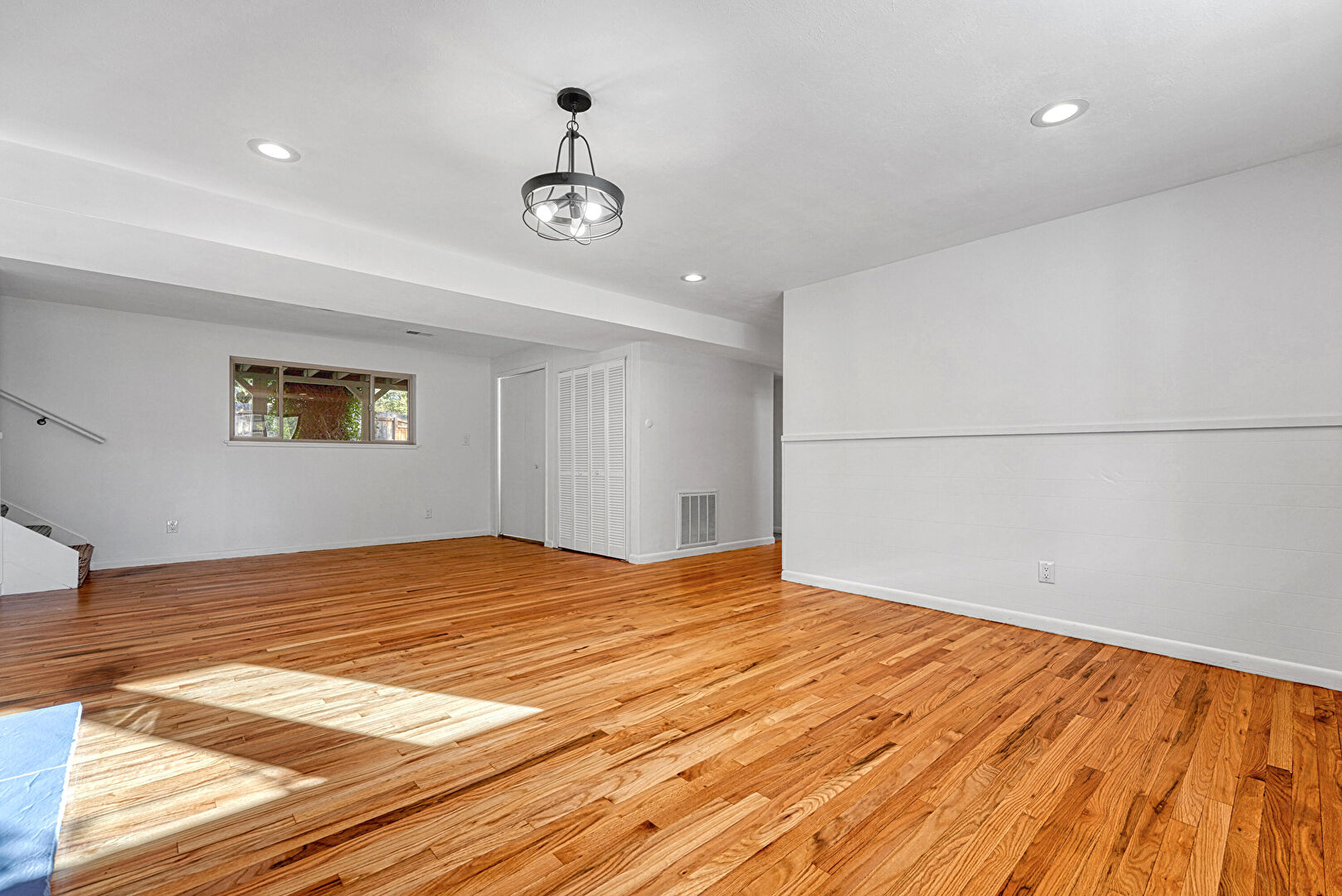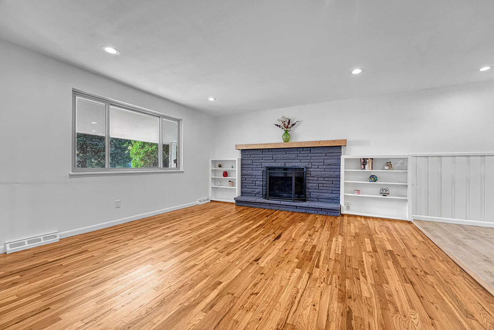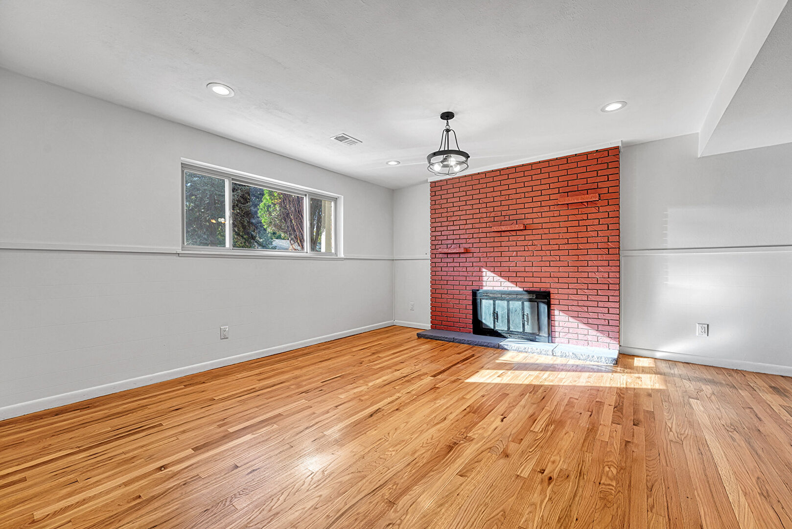 Baseboards Wall, Drywall, Fireplace, Natural Light, Recessed Lighting, Stairs, Vent, Wood Finish Floor, Drywall, Fireplace, Natural Light, Recessed Lighting