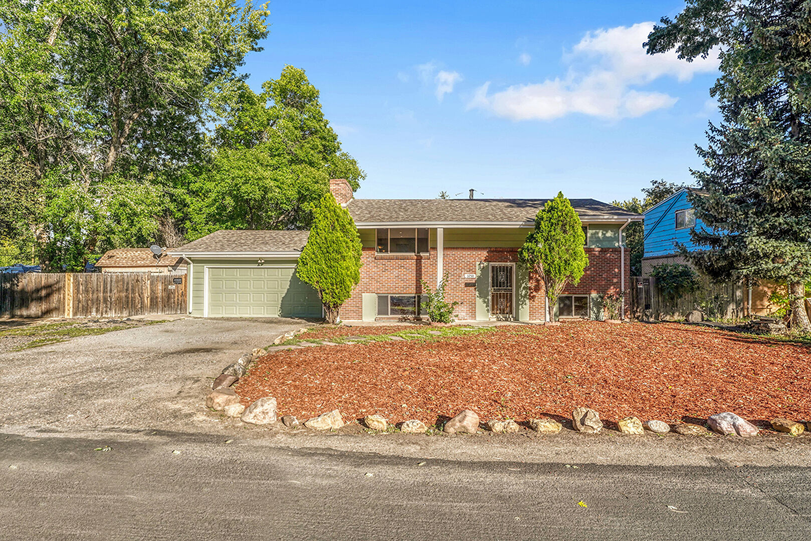 Brick Siding, Chimney, Downspout, Driveway, Fence, Gutters, Horizontal Siding, Satellite Dish, Shingle Roof, Brick Siding, Fence