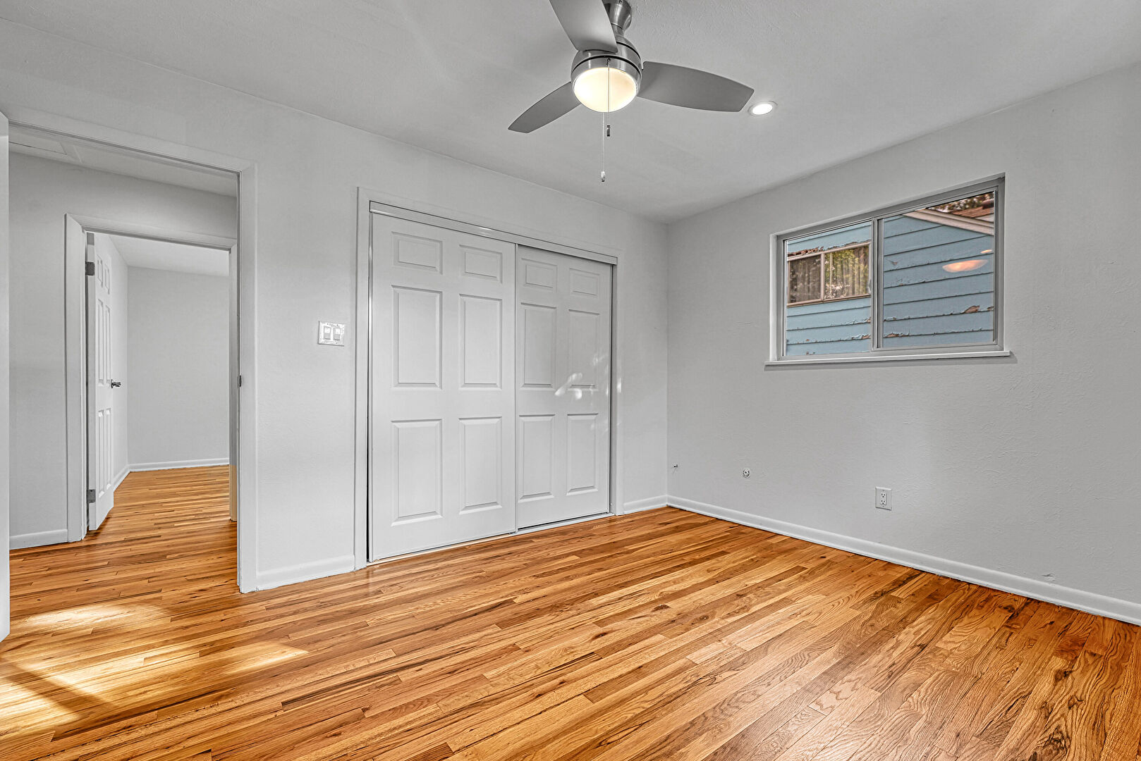 Baseboards Wall, Closet, Drywall, Natural Light, Recessed Lighting, Vent, Wood Finish Floor, Ceiling Fan