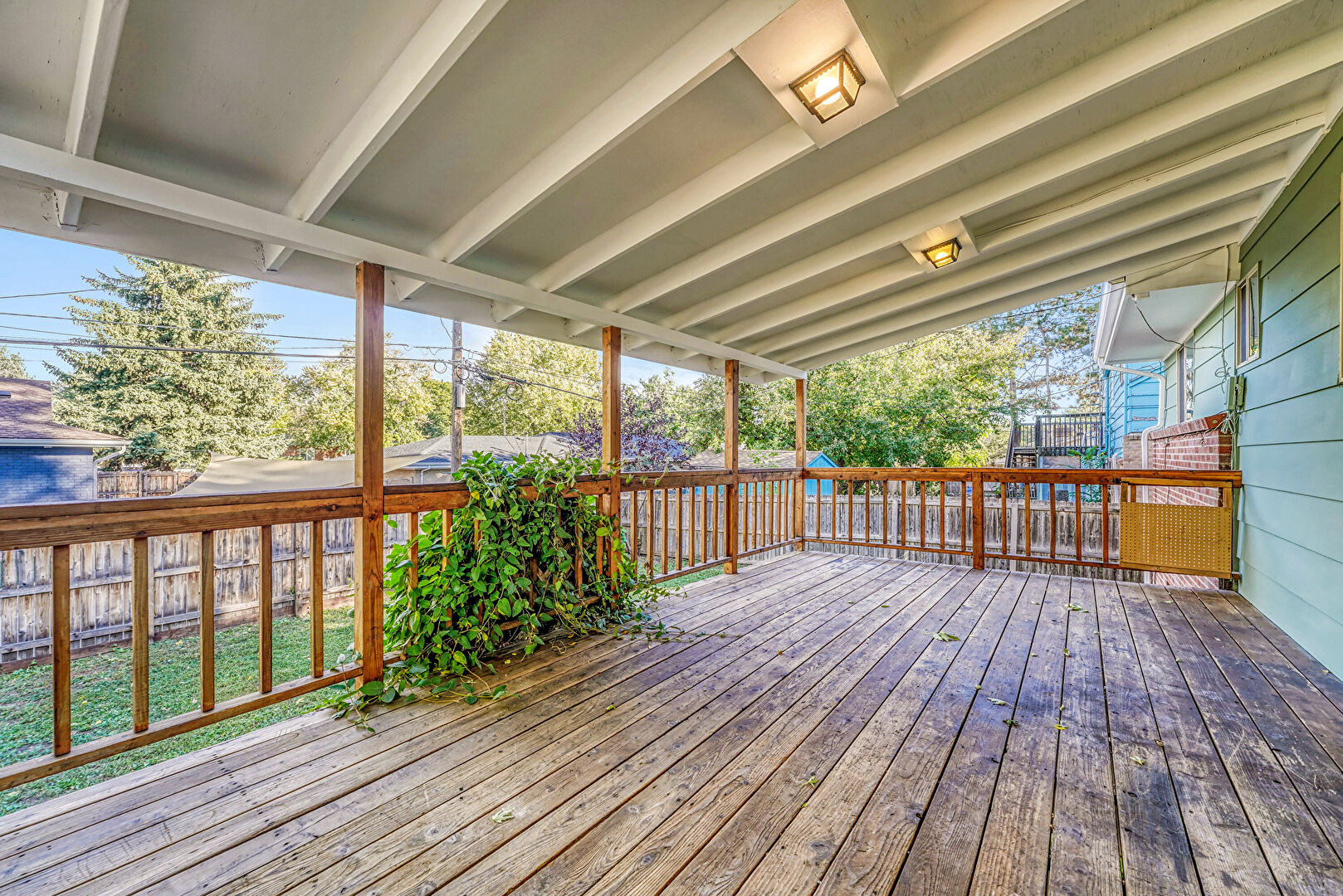 Deck, Fence, Lawn, Patio, Stairs, Satellite Dish