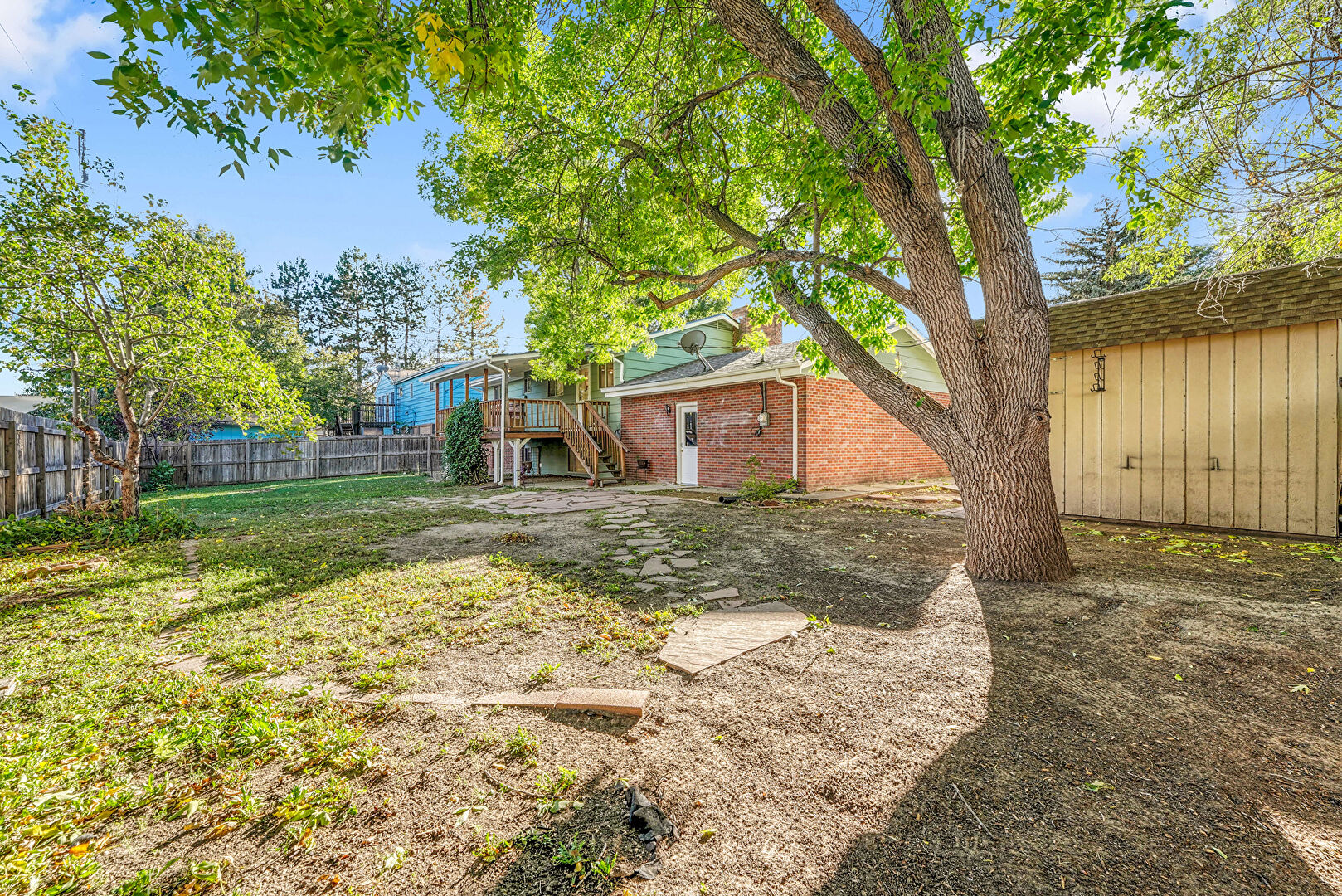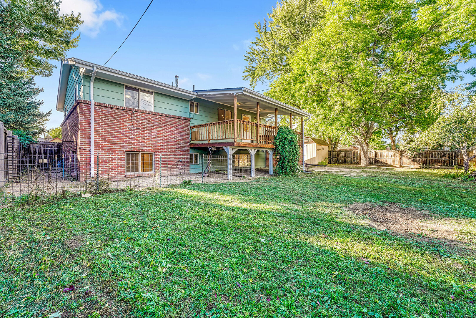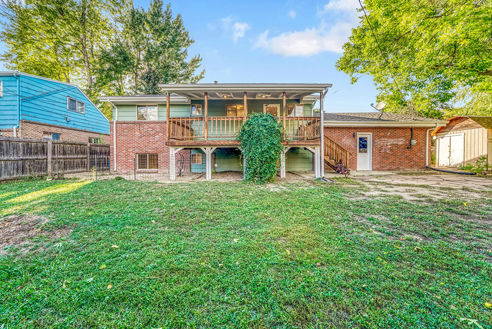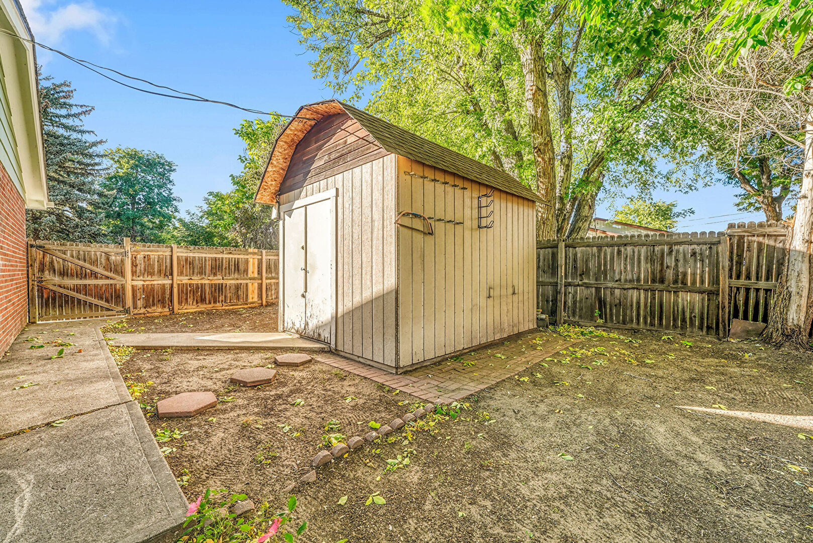 Brick Siding, Deck, Downspout, Fence, Gutters, Horizontal Siding, Lawn, Outdoor Structure, Patio, Satellite Dish, Shed, Stairs, Lawn, Shed