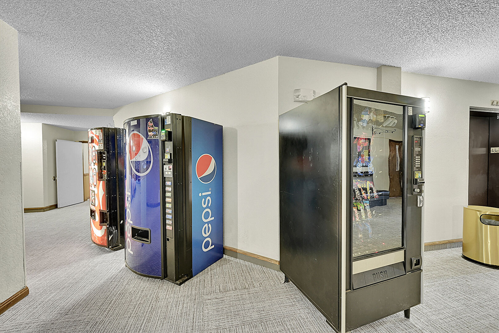 Baseboards Wall, Drywall, Elevator, Textured Ceiling, Carpet