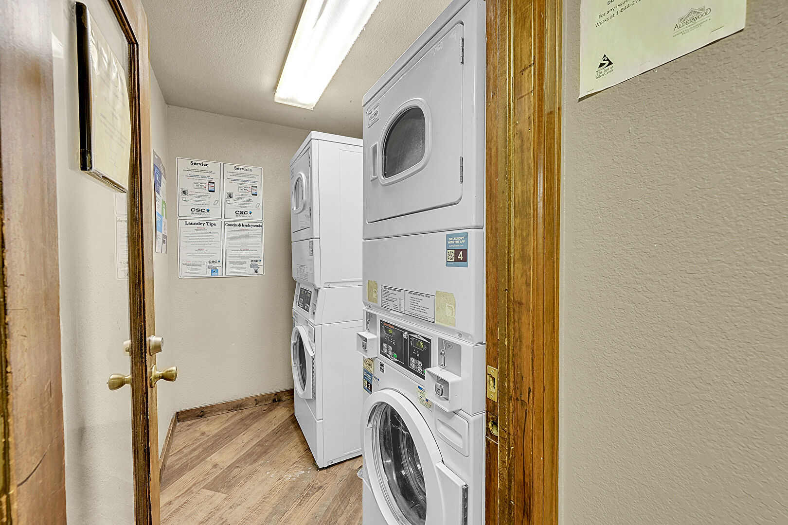 Baseboards Wall, Laundry, Textured Ceiling, Textured Wall, Wood Finish Floor