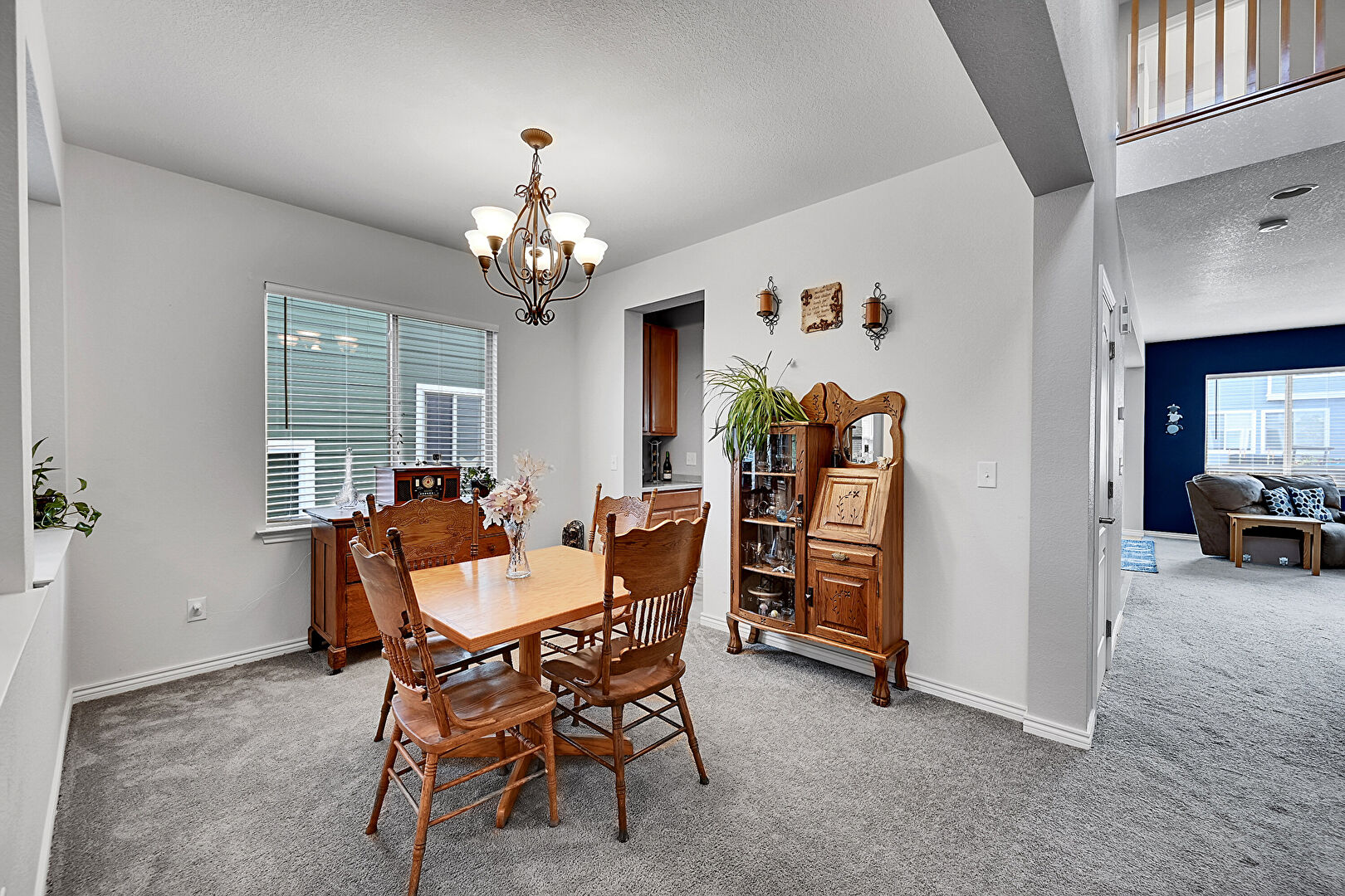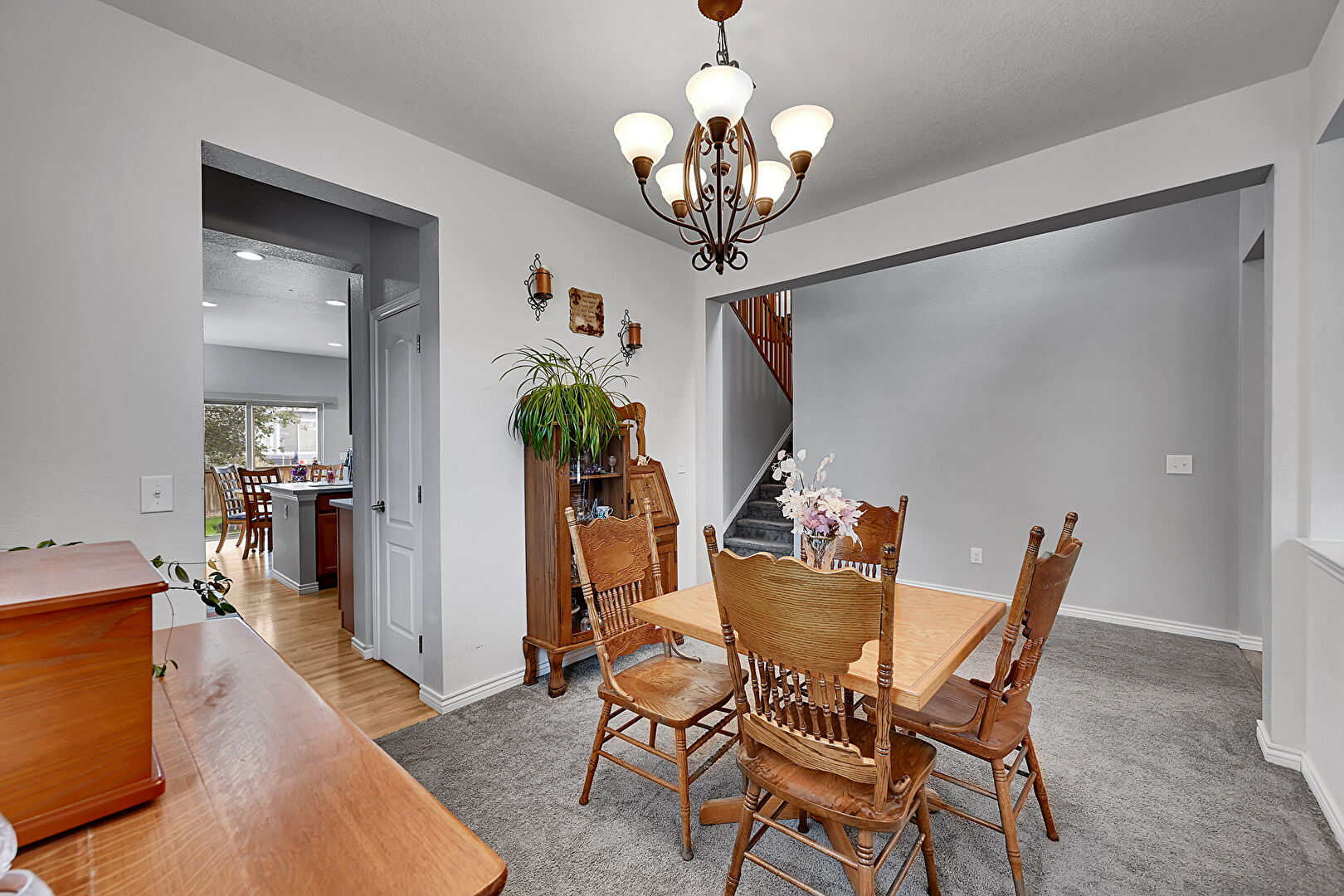 Baseboards Wall, Carpet, Drywall, Natural Light, Notable Chandelier, Stairs, Textured Ceiling, Baseboards Wall, Carpet, Drywall
