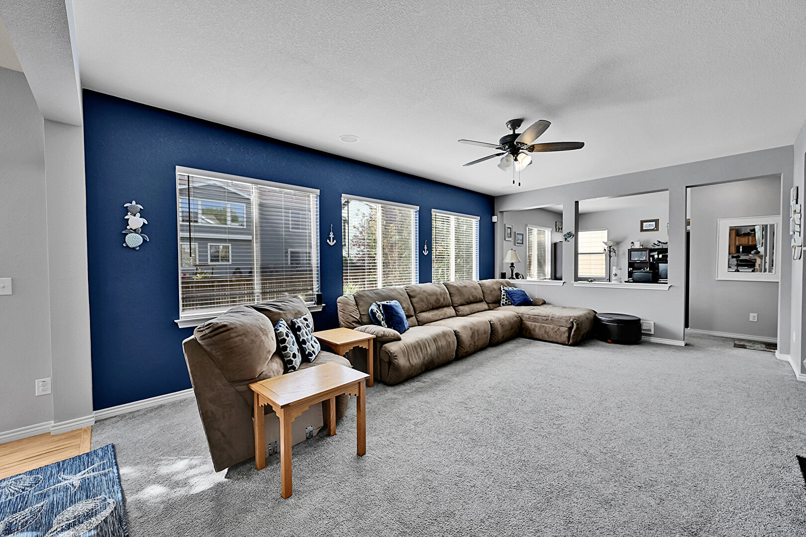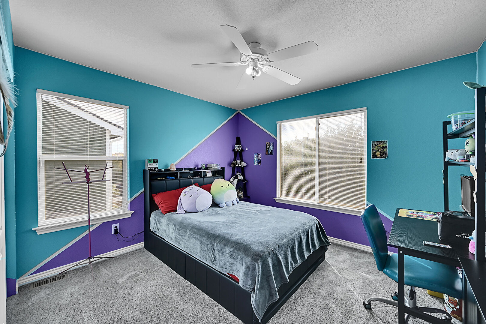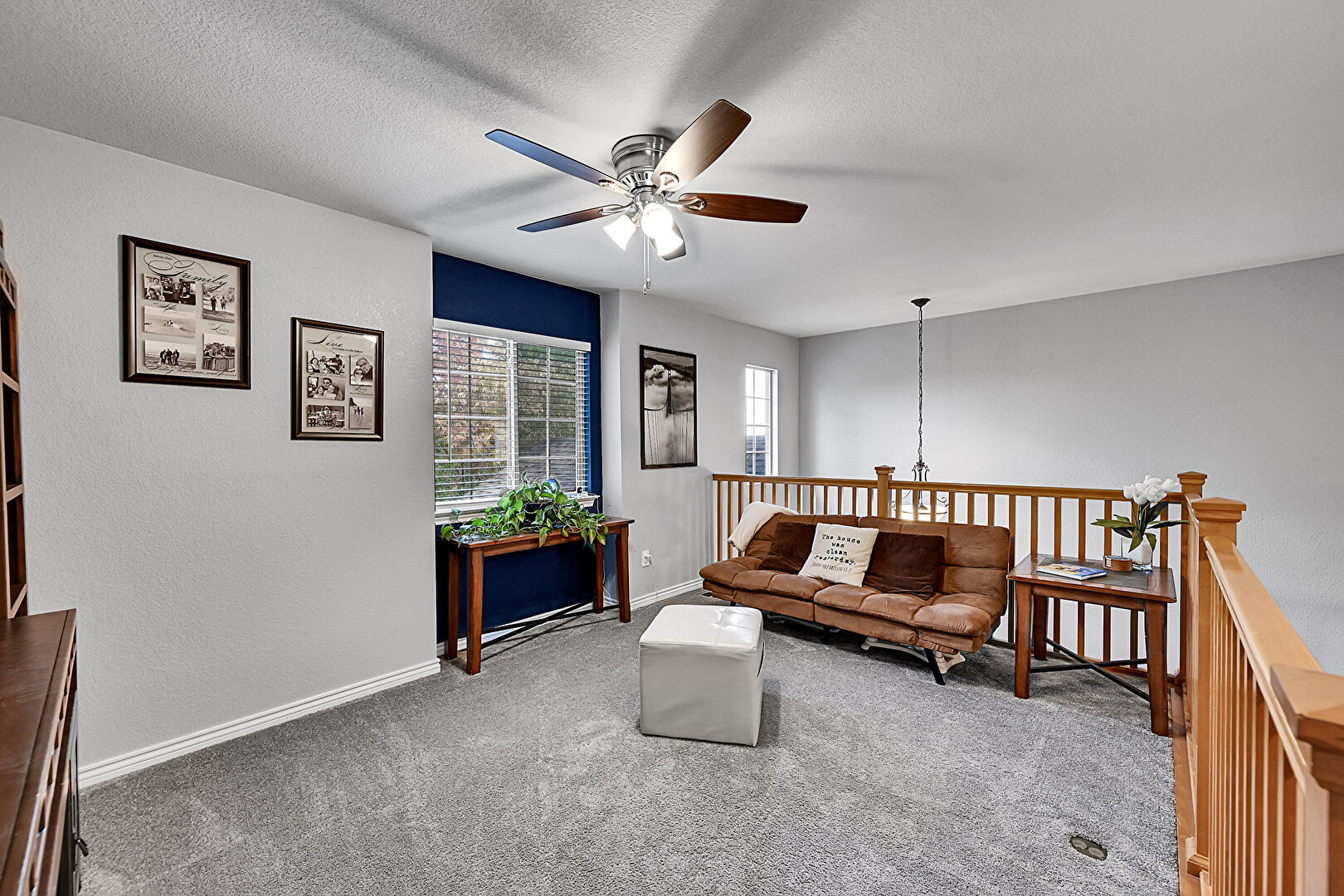 Baseboards Wall, Carpet, Ceiling Fan, Drywall, Natural Light, Recessed Lighting, Textured Ceiling, Vent, Carpet, Ceiling Fan