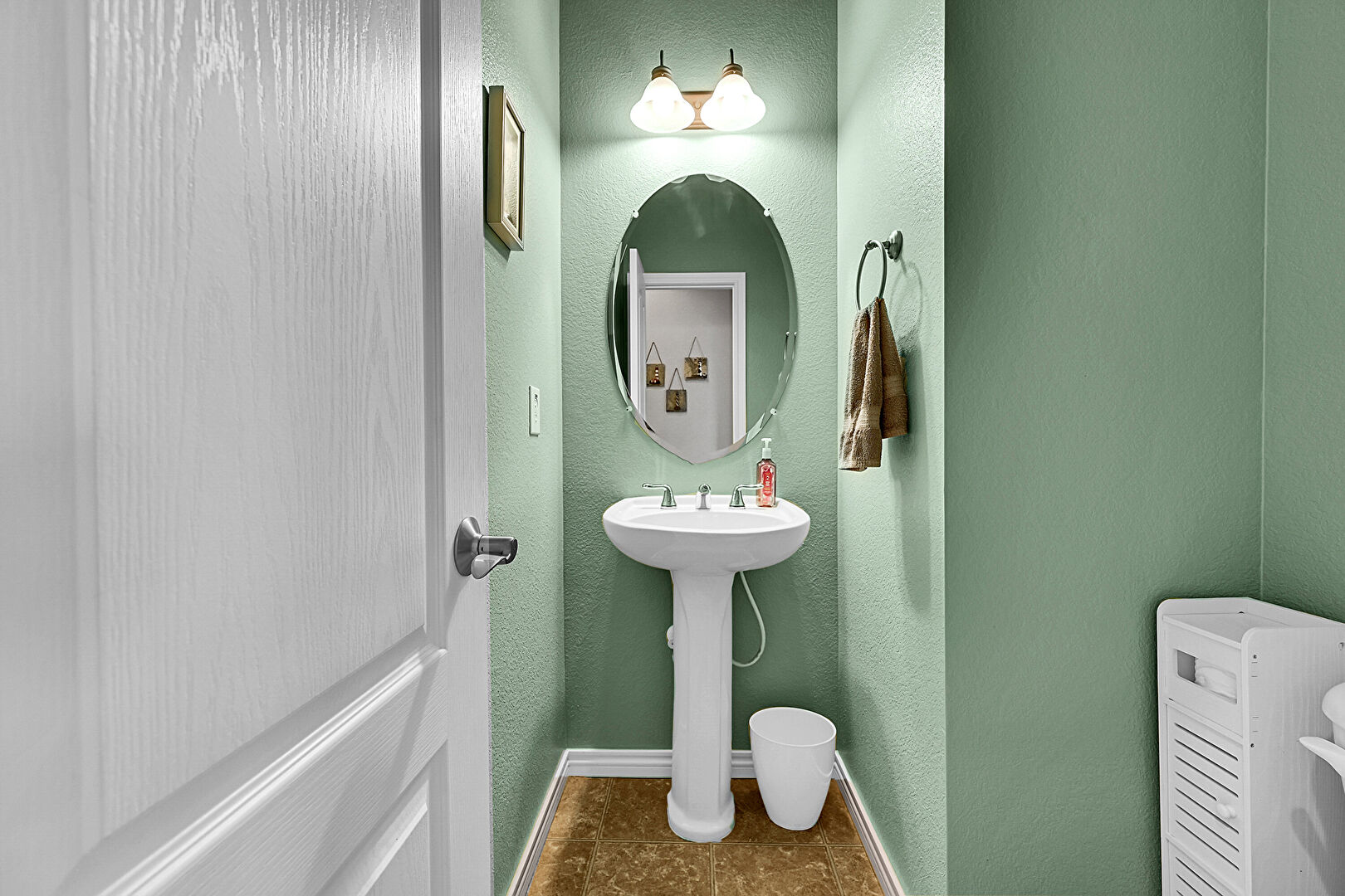 Baseboards Wall, Textured Wall, Tile Floor, Half Bathroom