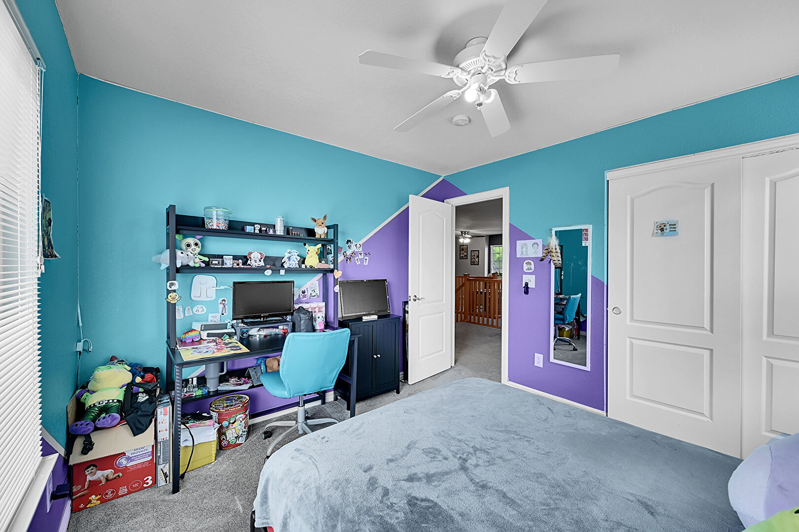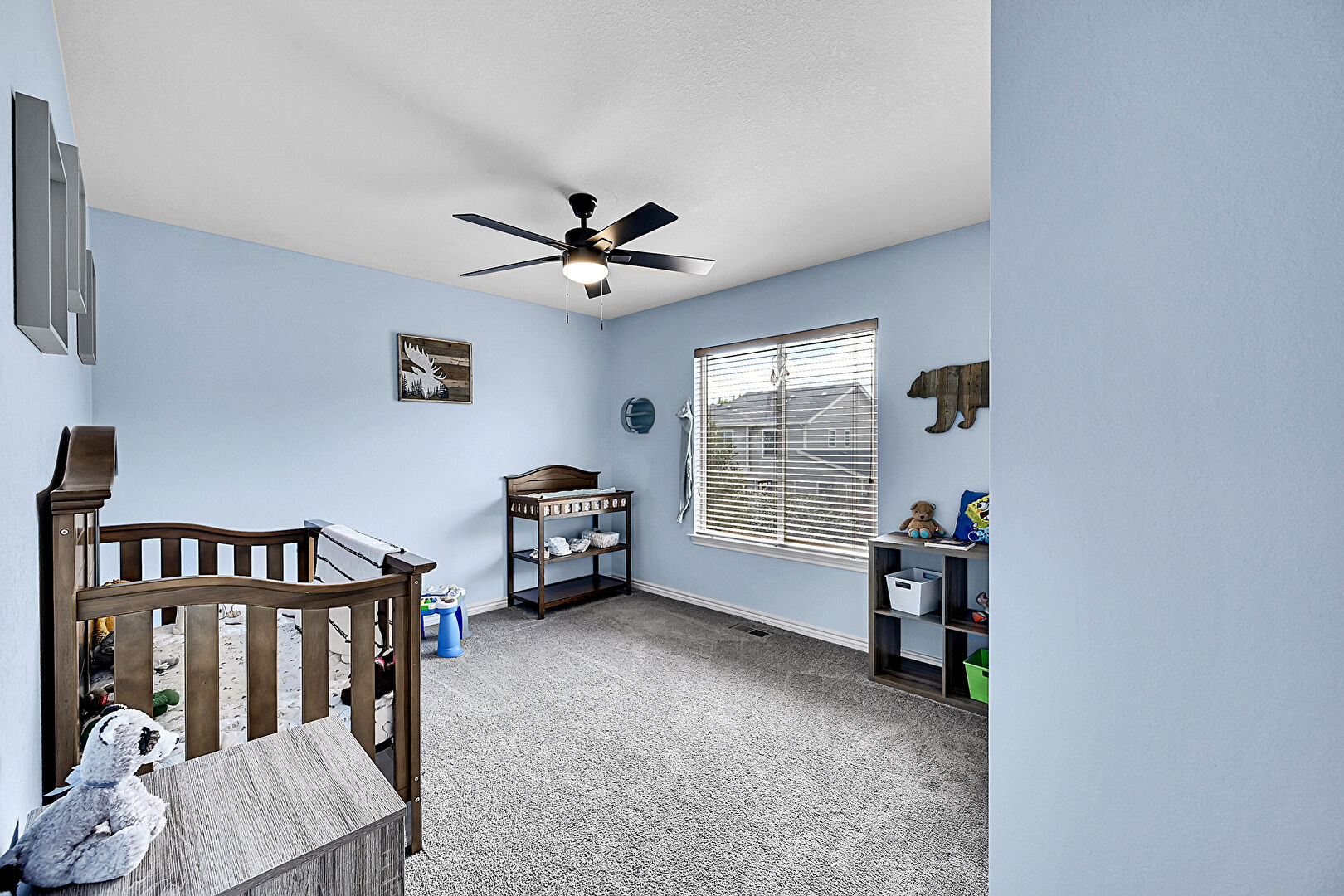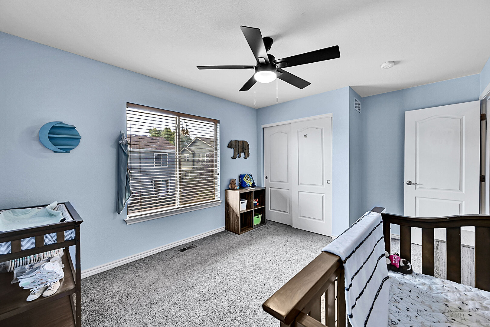 Baseboards Wall, Carpet, Closet, Drywall, Natural Light, Nursery, Smoke Carbon Monoxide Detector, Vent, Ceiling Fan