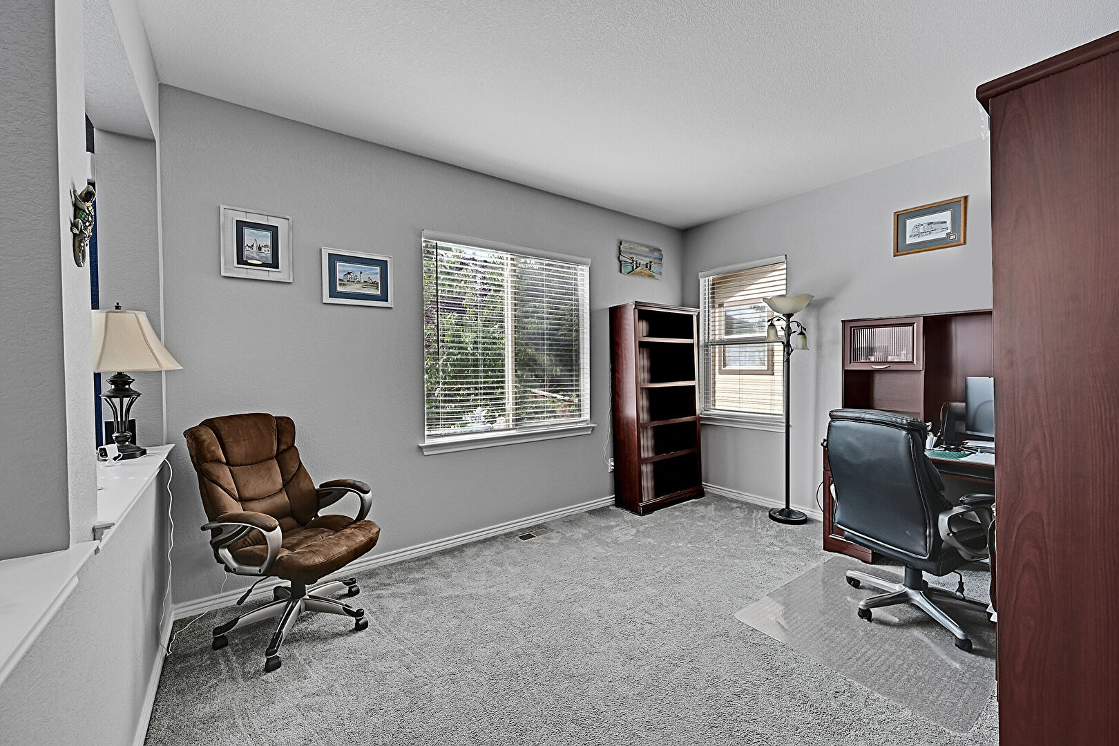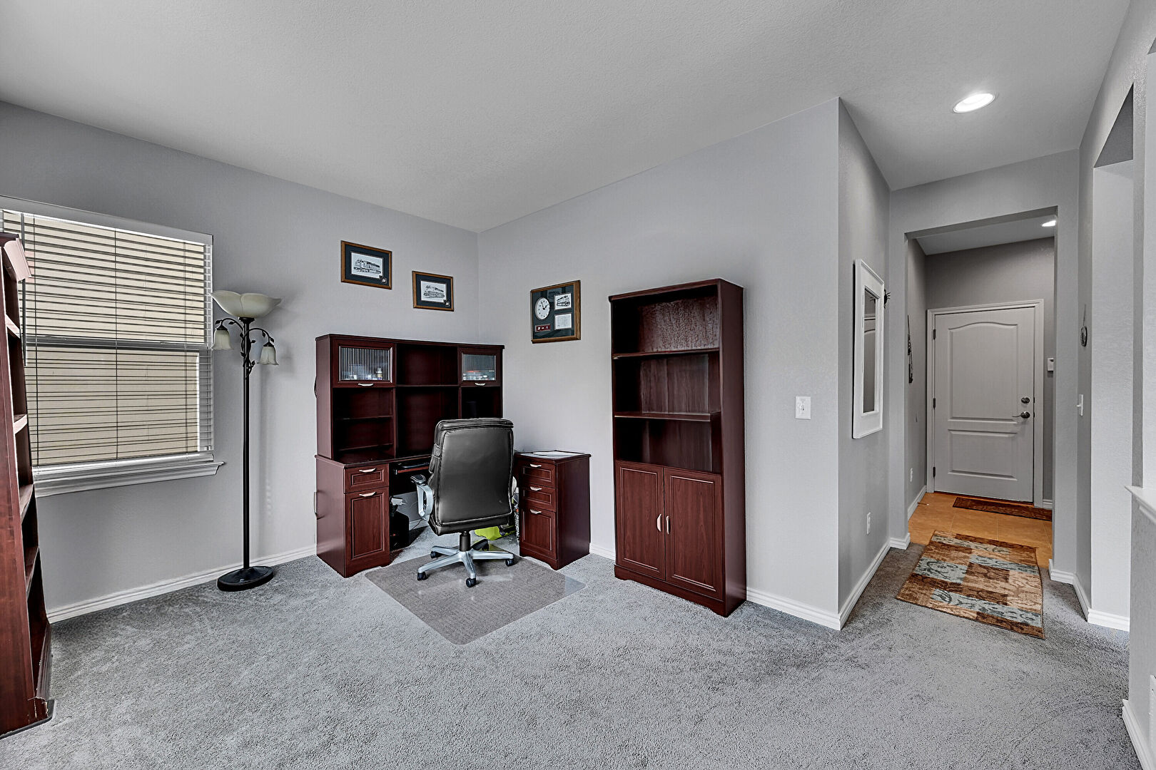 Baseboards Wall, Carpet, Drywall, Natural Light, Office Area, Recessed Lighting, Vent