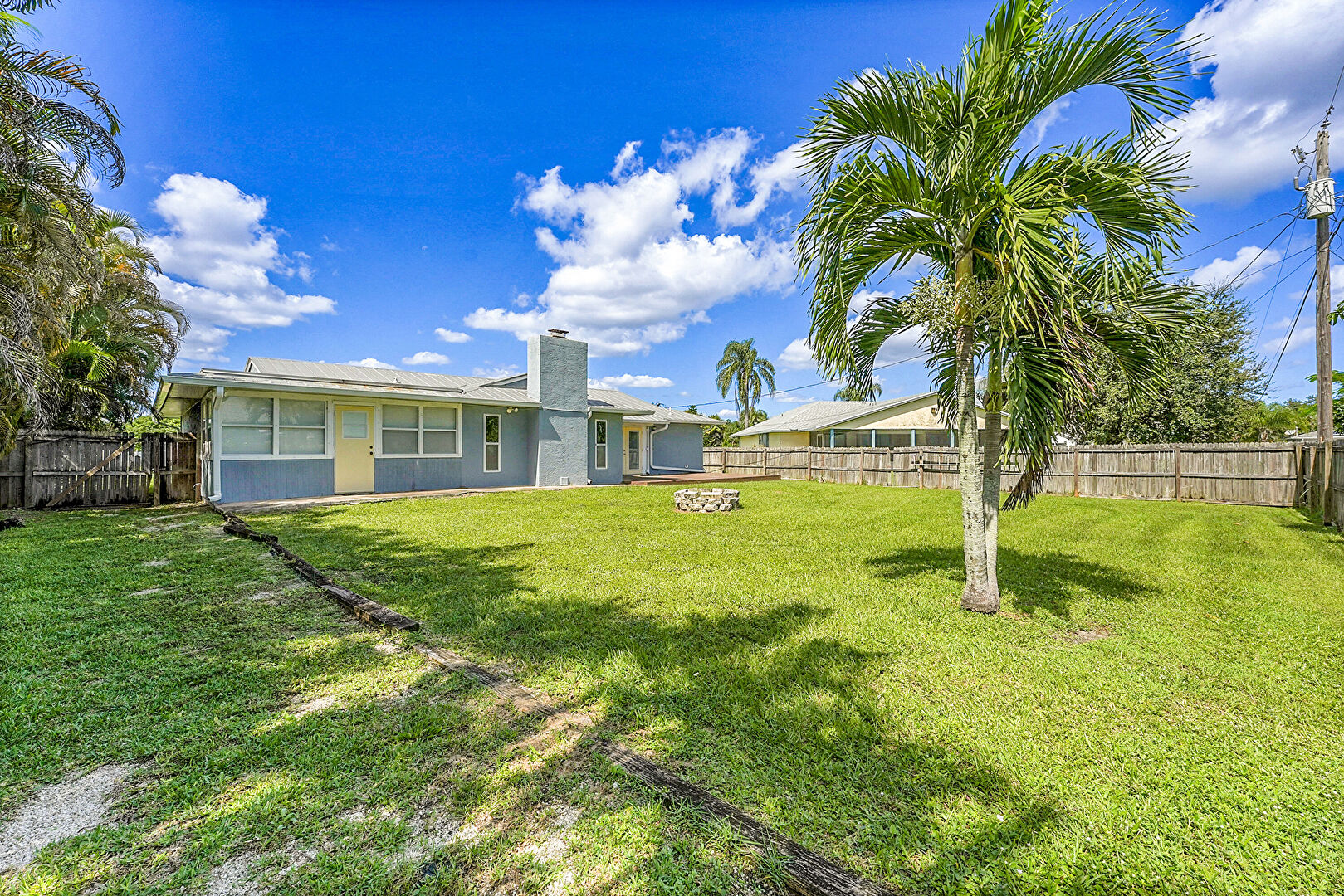 Chimney, Fence, French Doors, Gutters, Lawn, Metal Roof, Patio, Standing Seam Roof, Stucco Siding, Chimney, Downspout