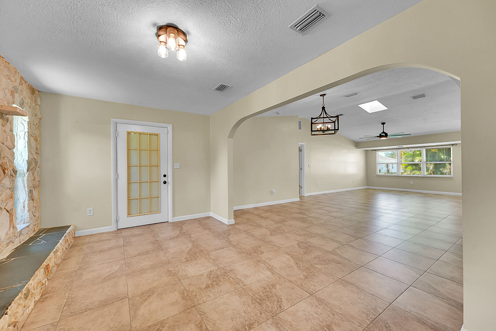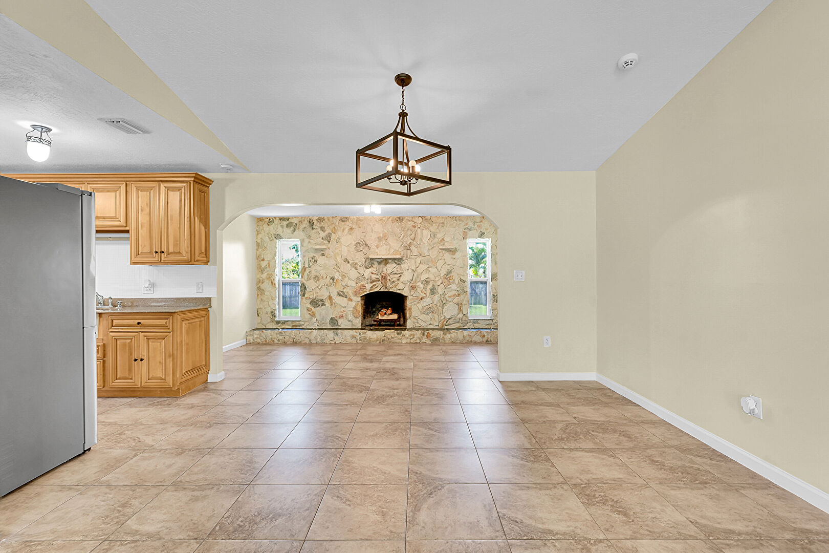 Arched Walkways, Baseboards Wall, Drywall, Fireplace, Natural Light, Notable Chandelier, Smoke Carbon Monoxide Detector, Vent, Tile Floor