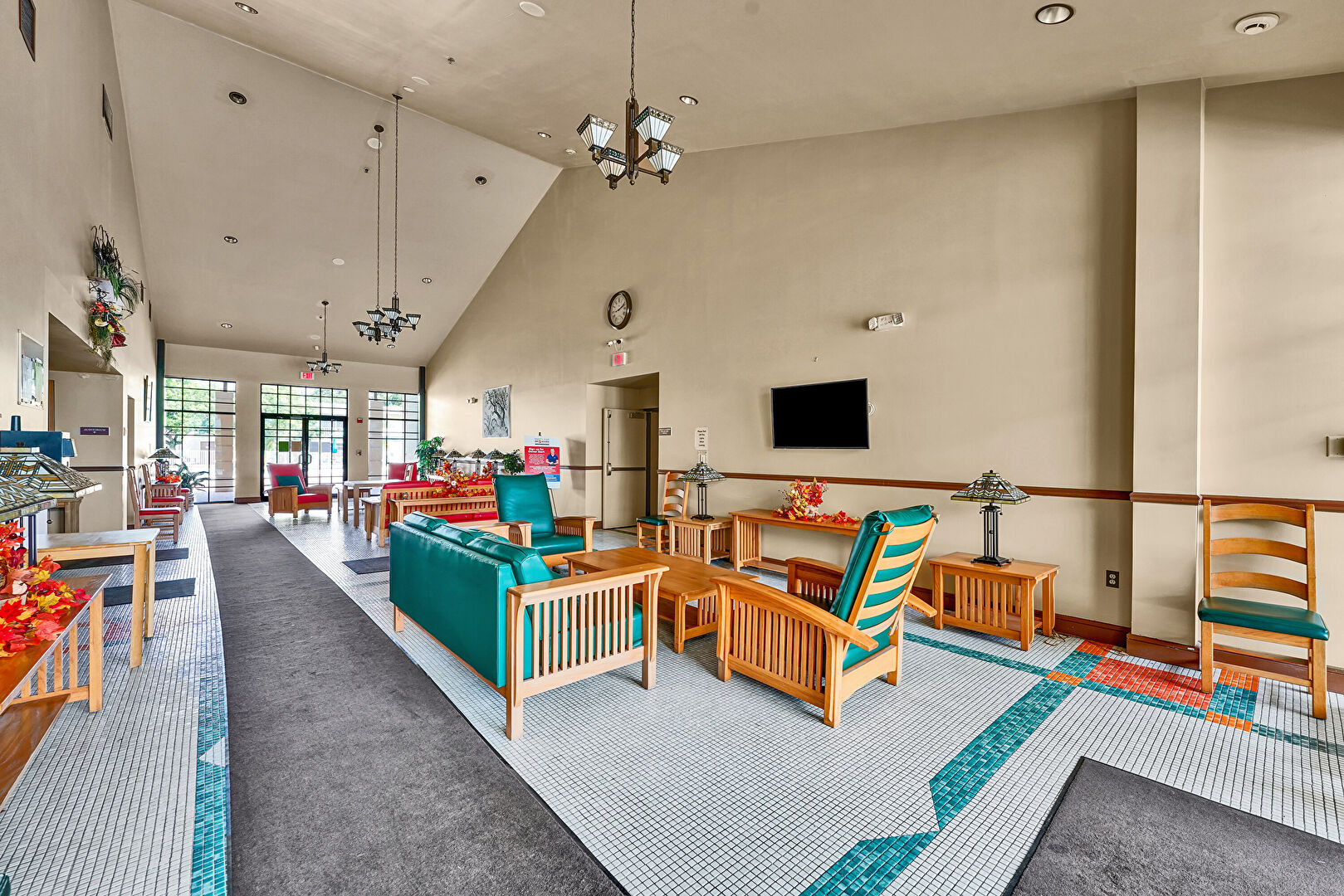 Natural Light, Textured Ceiling, Tile Floor, Wood Finish Floor, Drywall, Notable Chandelier