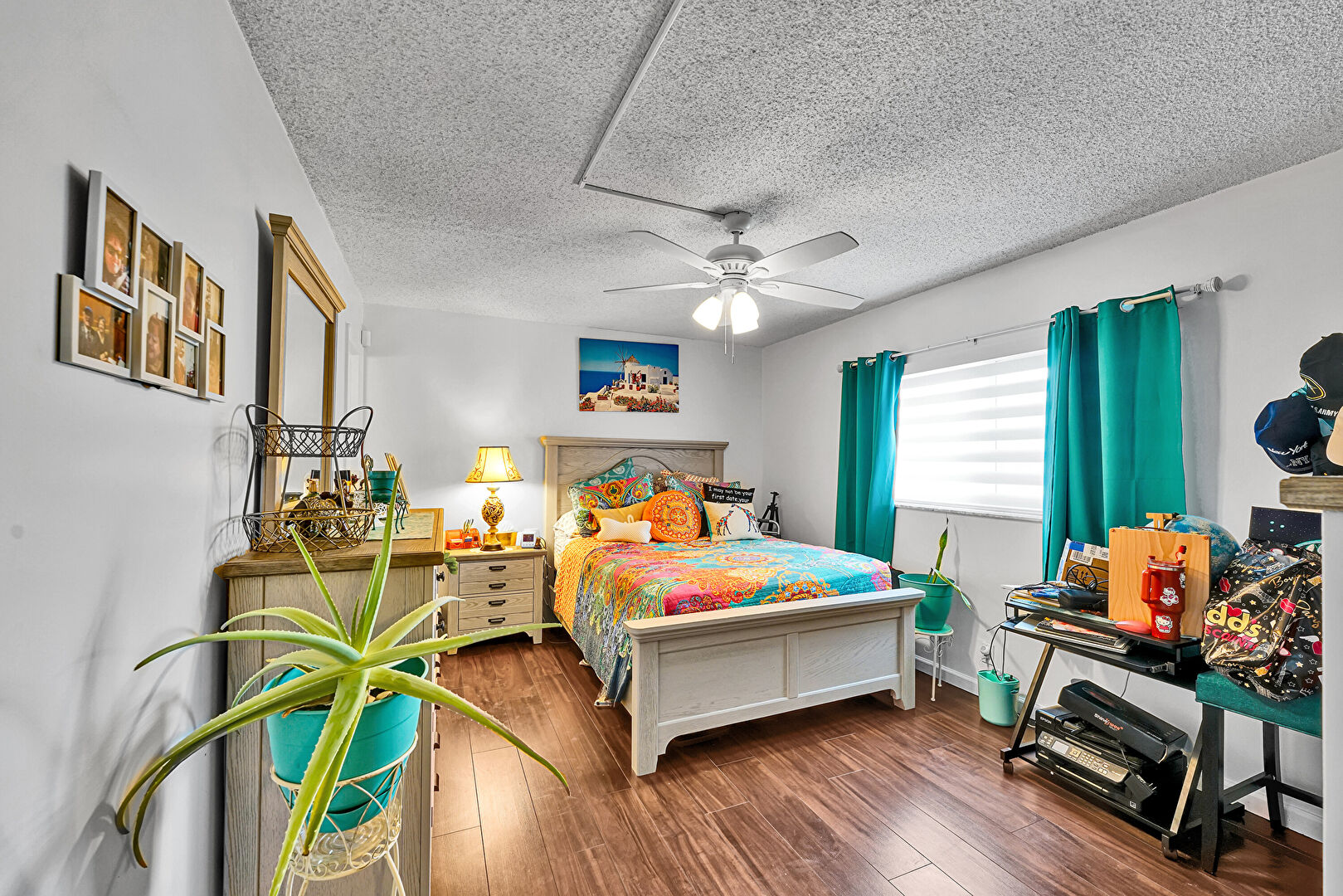 Baseboards Wall, Ceiling Fan, Drywall, Natural Light, Textured Ceiling, Wood Finish Floor, Ceiling Fan, Textured Ceiling, Wood Finish Floor