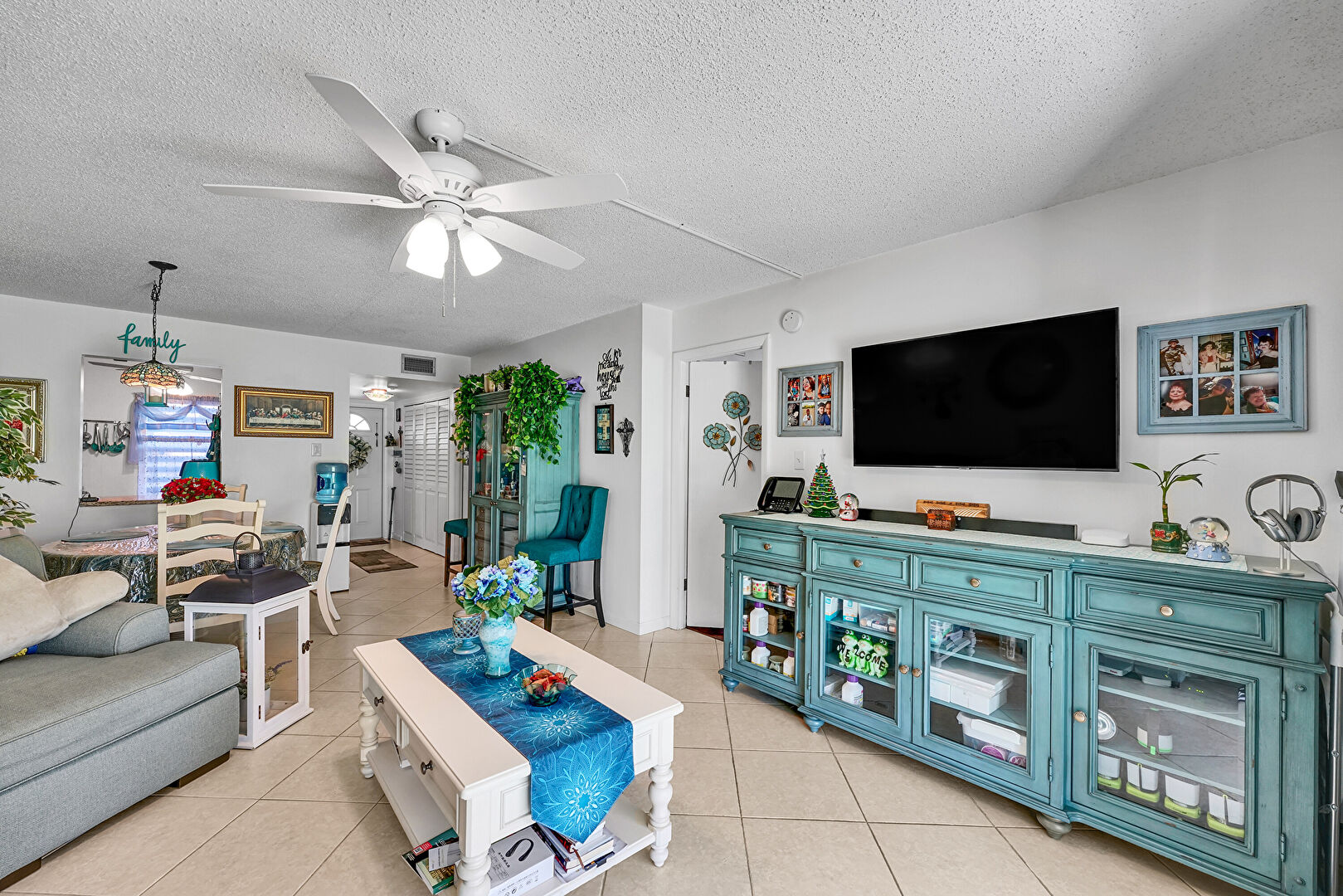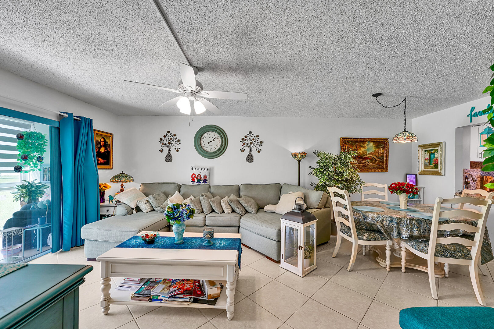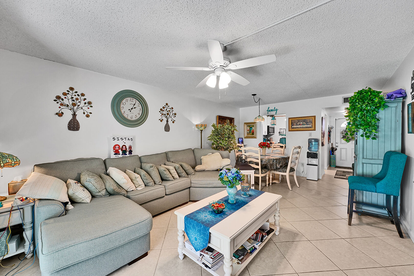 Baseboards Wall, Ceiling Fan, Drywall, Natural Light, Textured Ceiling, Tile Floor, Ceiling Fan, Textured Ceiling