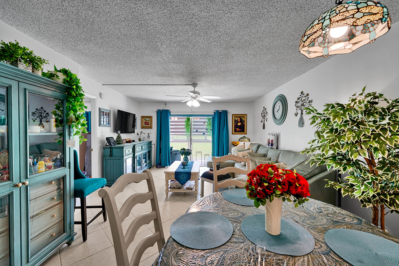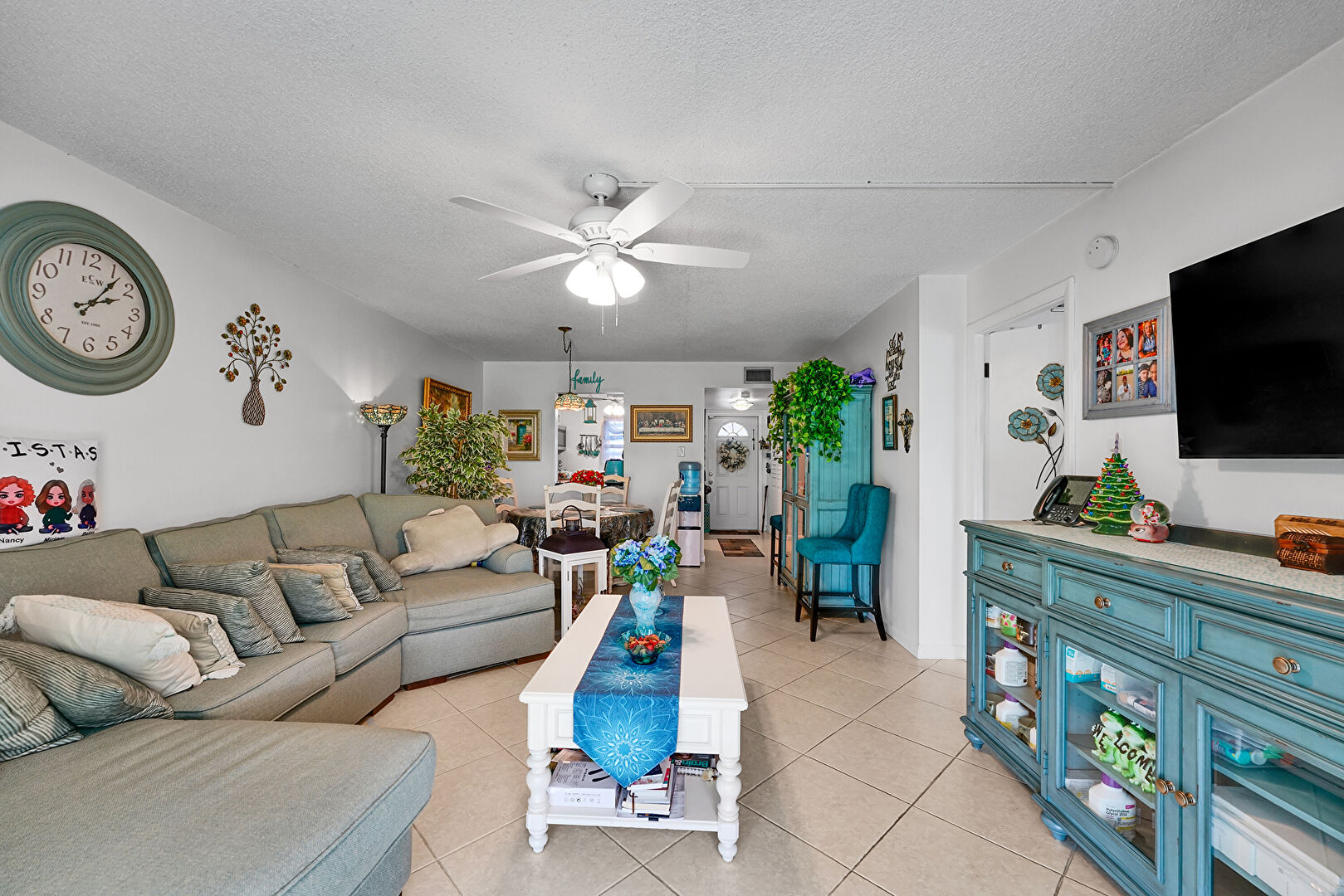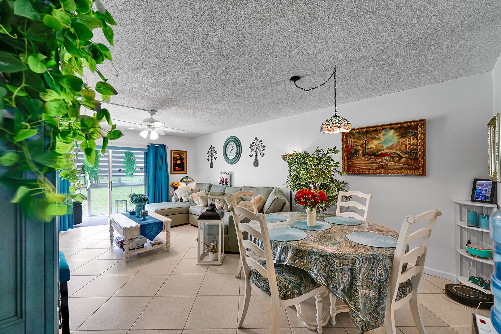 Baseboards Wall, Ceiling Fan, Drywall, Natural Light, Textured Ceiling, Tile Floor, Ceiling Fan, Textured Ceiling