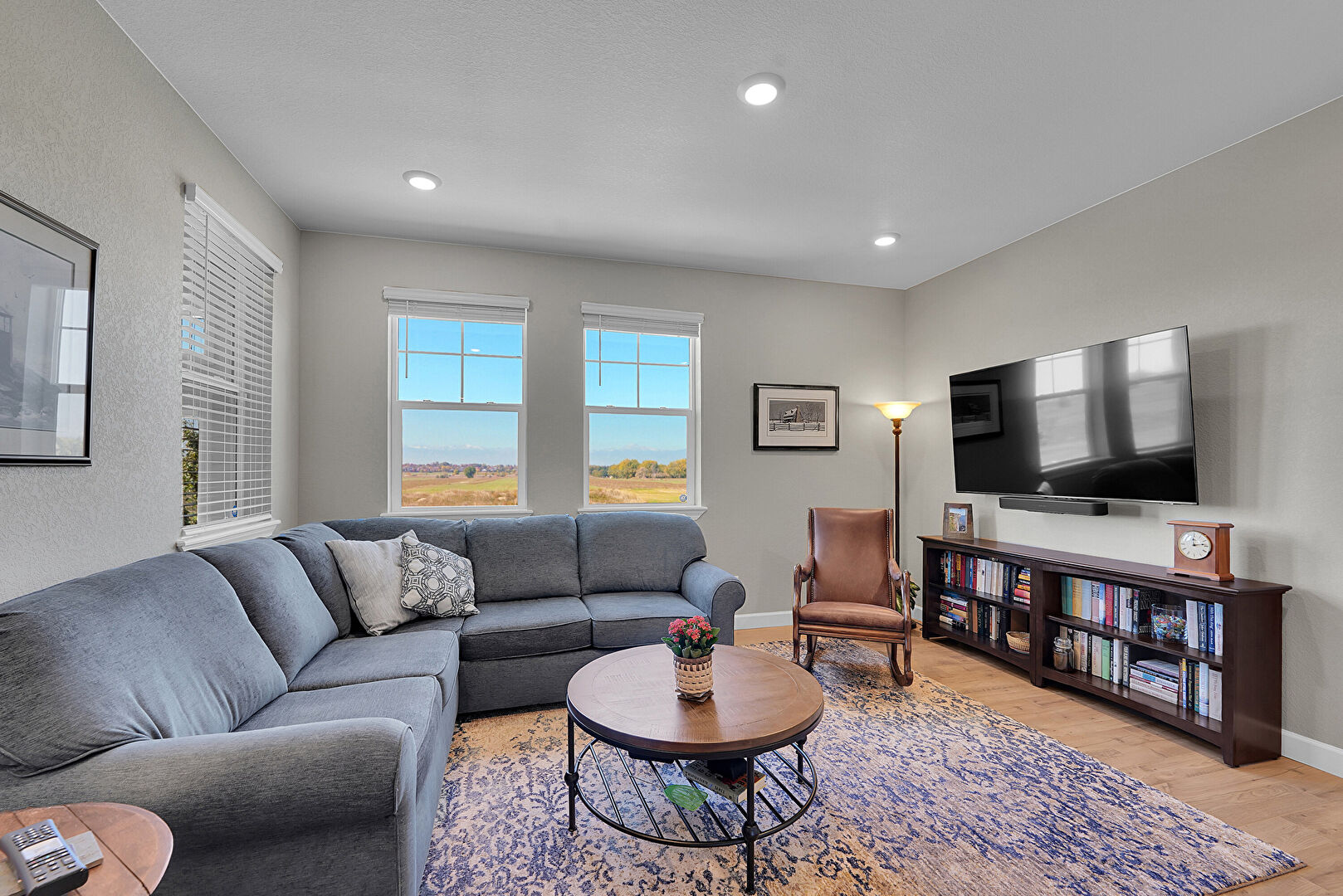 Baseboards Wall,  Carpet,  Ceiling Fan,  Drywall,  Natural Light,  Recessed Lighting,  Vent,  Wood Finish Floor, Baseboards Wall, Carpet, Drywall