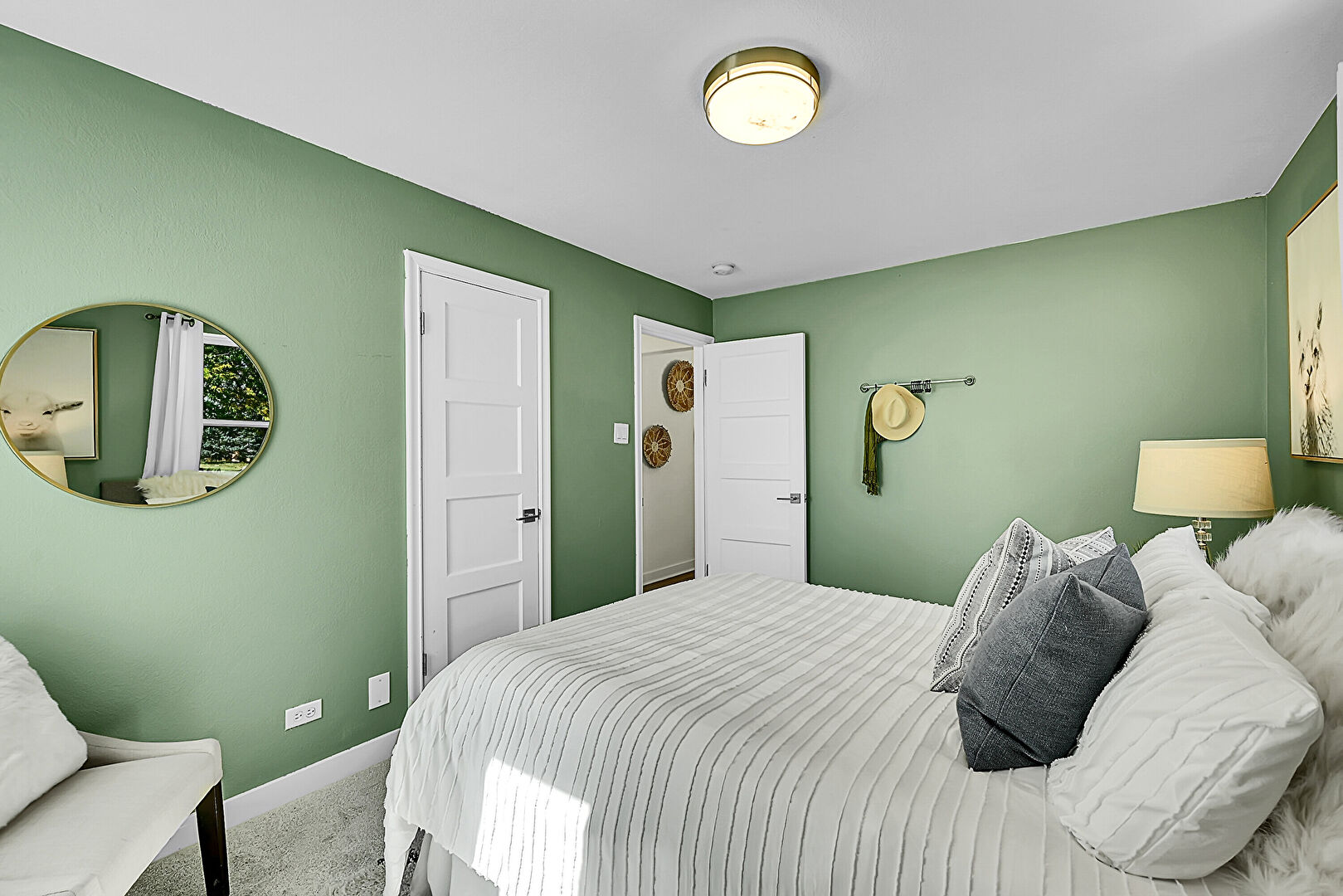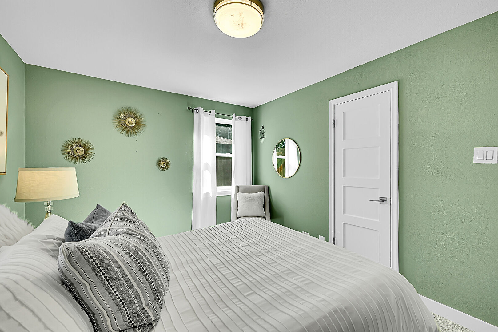 Barn Door, Baseboards Wall, Drywall, Natural Light, Recessed Lighting, Textured Ceiling, Vent, Wood Finish Floor, Barn Door, Recessed Lighting, Vent