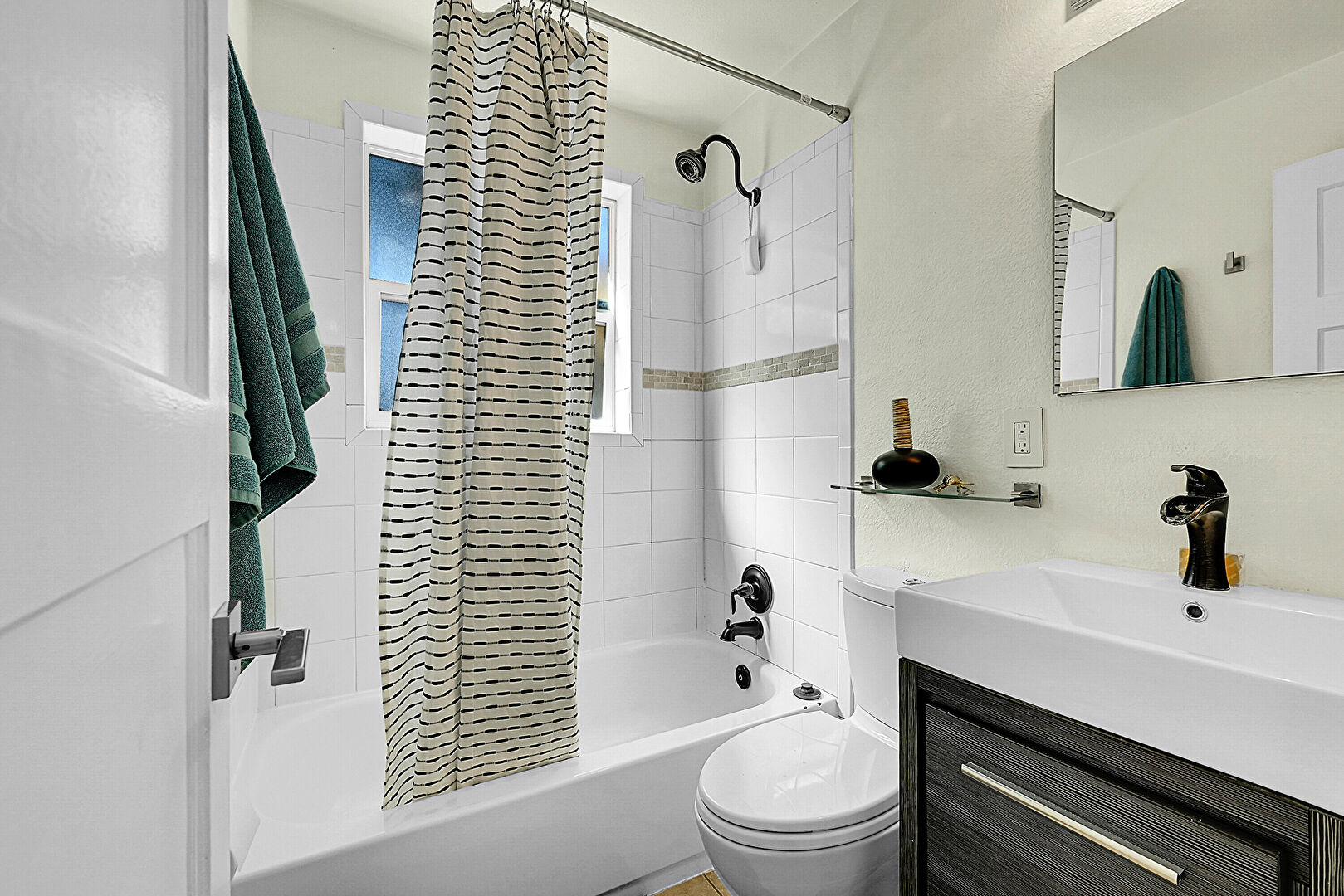 Combined Bath Shower, Drywall, Full Bathroom, Natural Light, Vanity