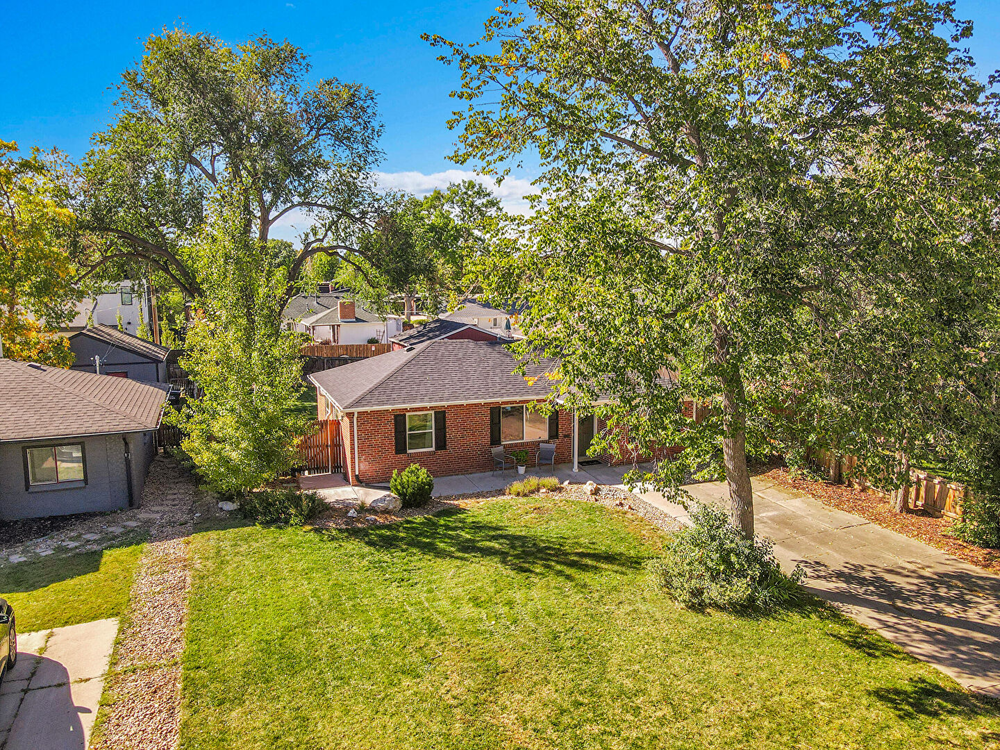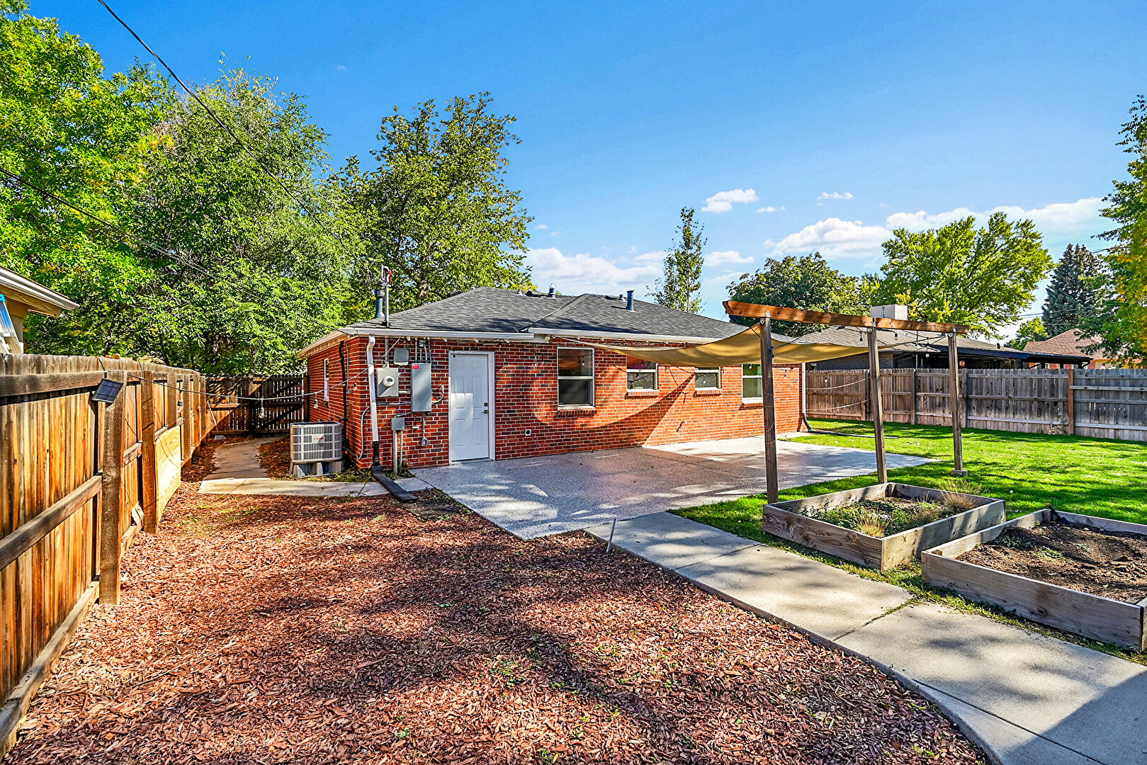 Brick Siding, Concrete Foundation, Downspout, Driveway, Fence, Gutters, Lawn, Parking Pad, Patio, Shingle Roof, Brick Siding, Fence, Lawn, Parking Pad, Patio