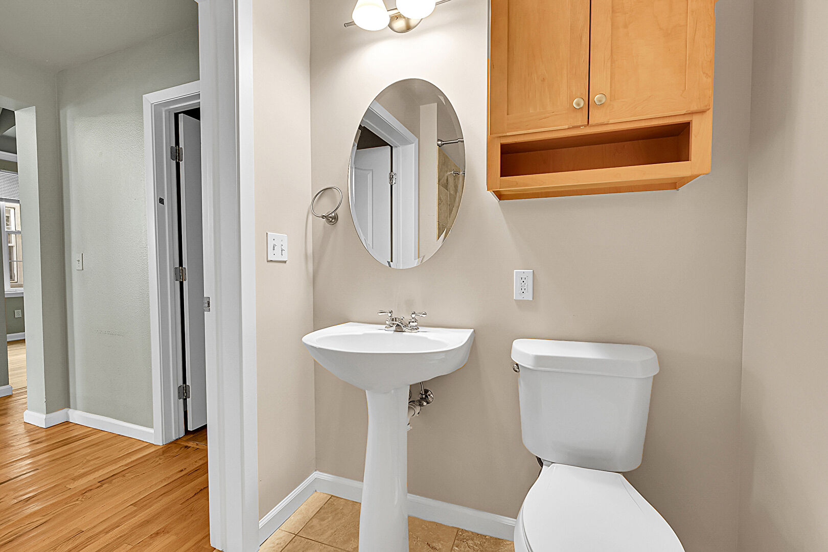 Baseboards Wall, Combined Bath Shower, Full Bathroom, Half Bathroom, Tile Floor, Wood Finish Floor, Drywall