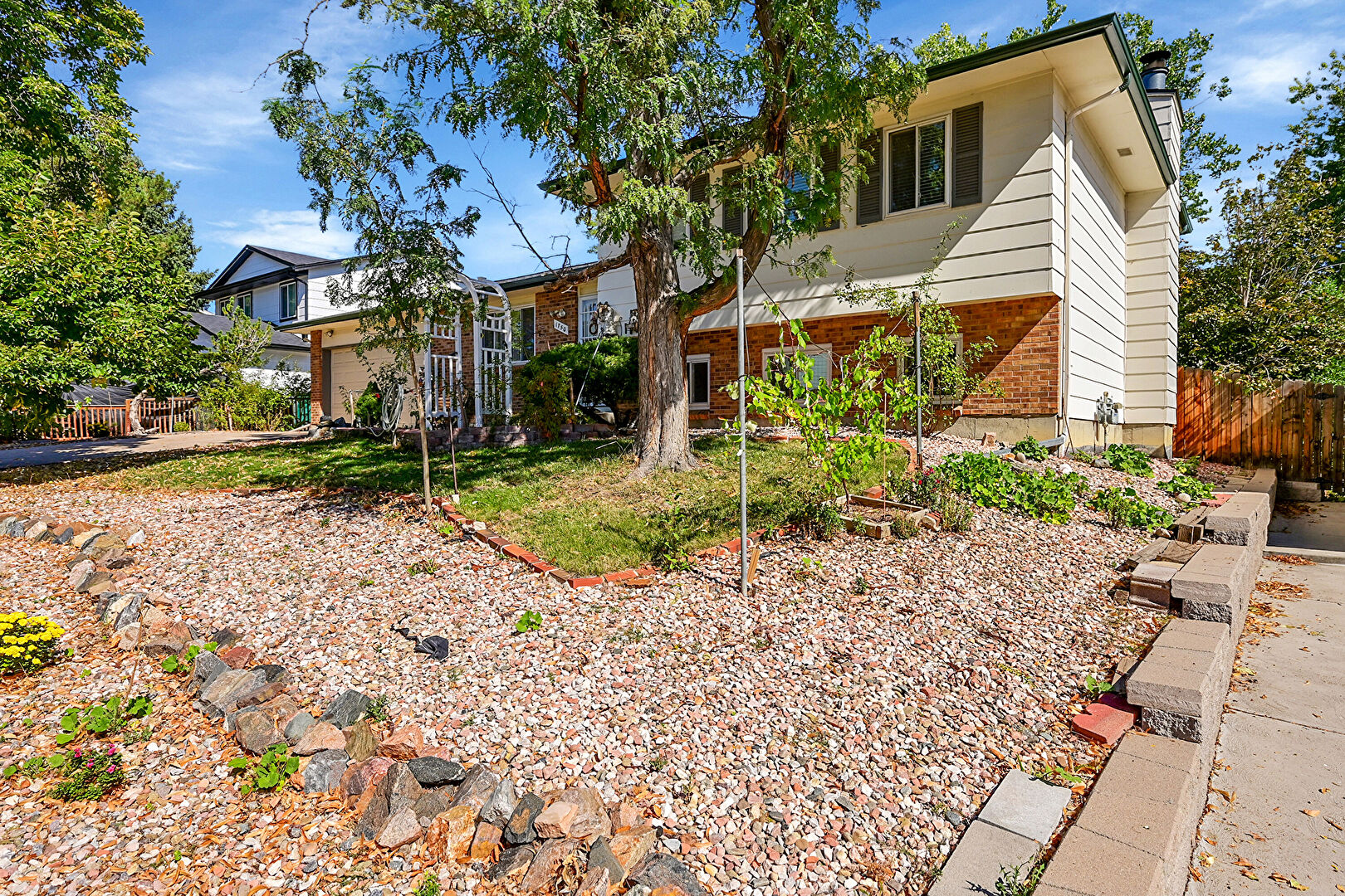 Brick Siding, Chimney, Concrete Foundation, Downspout, Fence, Gutters, Horizontal Siding, Lawn, Patio, Driveway, Horizontal Siding