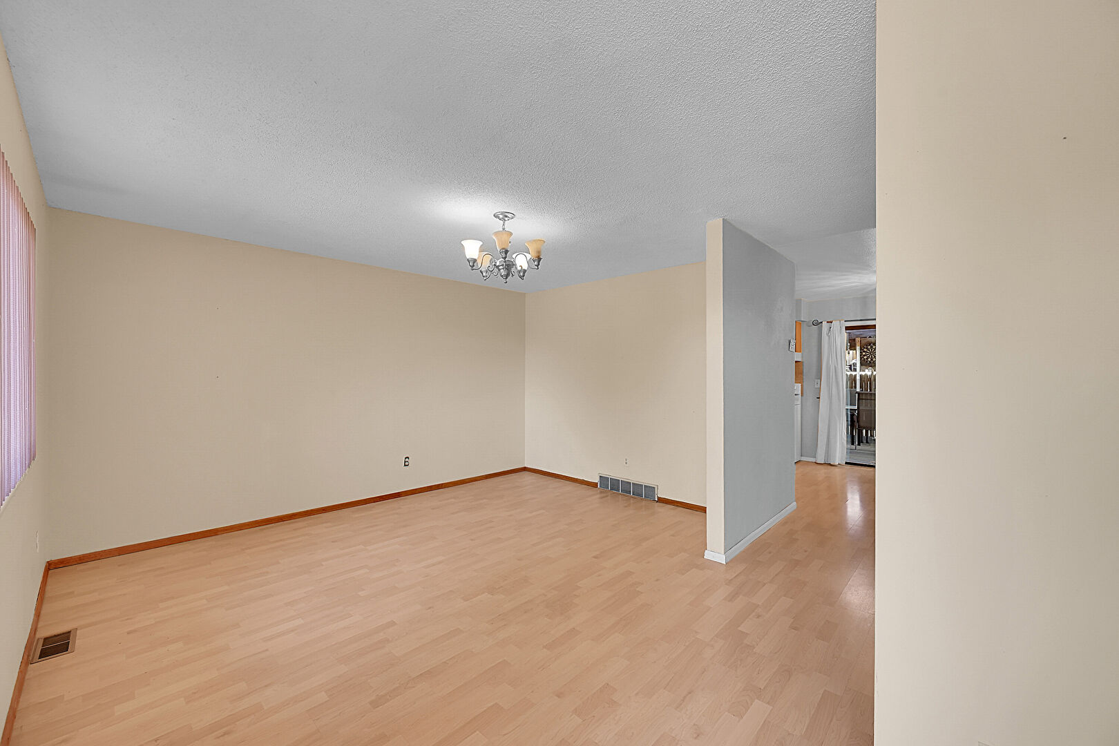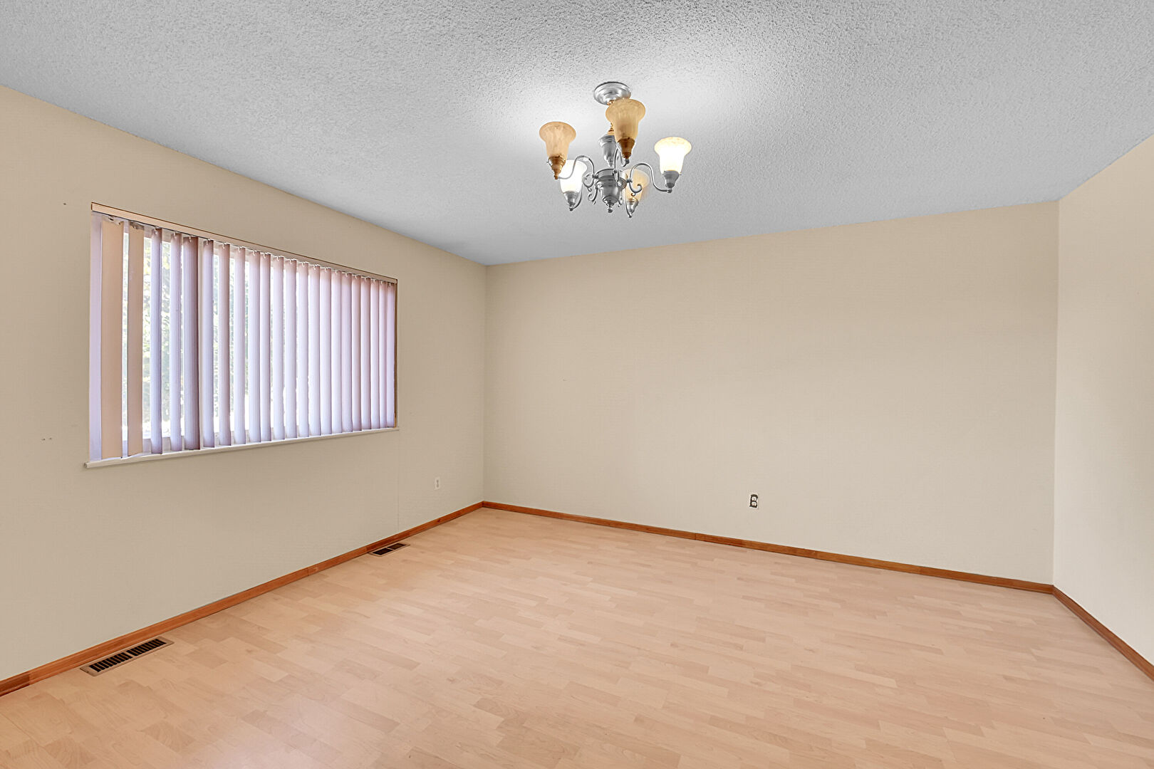 Baseboards Wall, Drywall, Notable Chandelier, Vent, Wood Finish Floor, Textured Ceiling