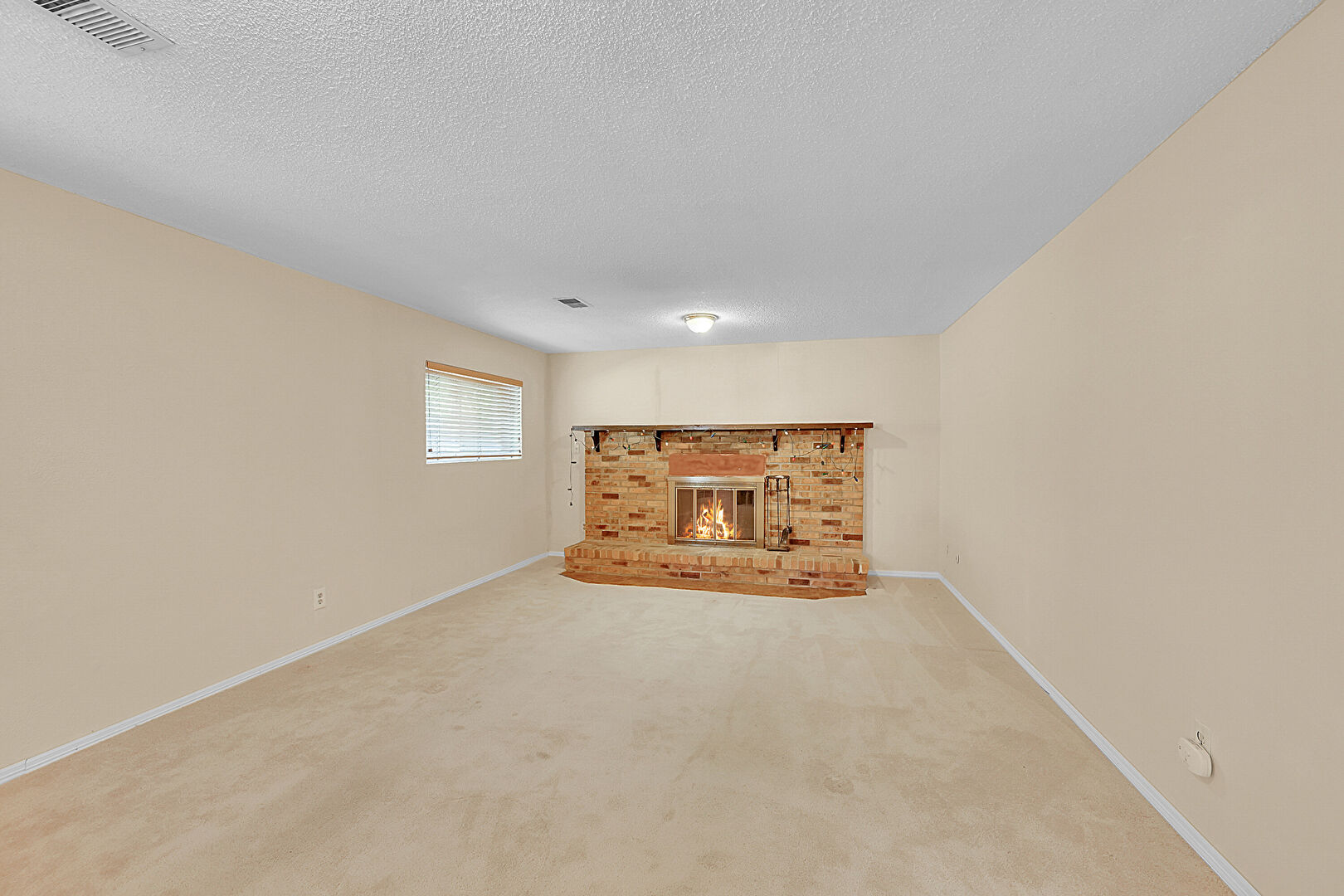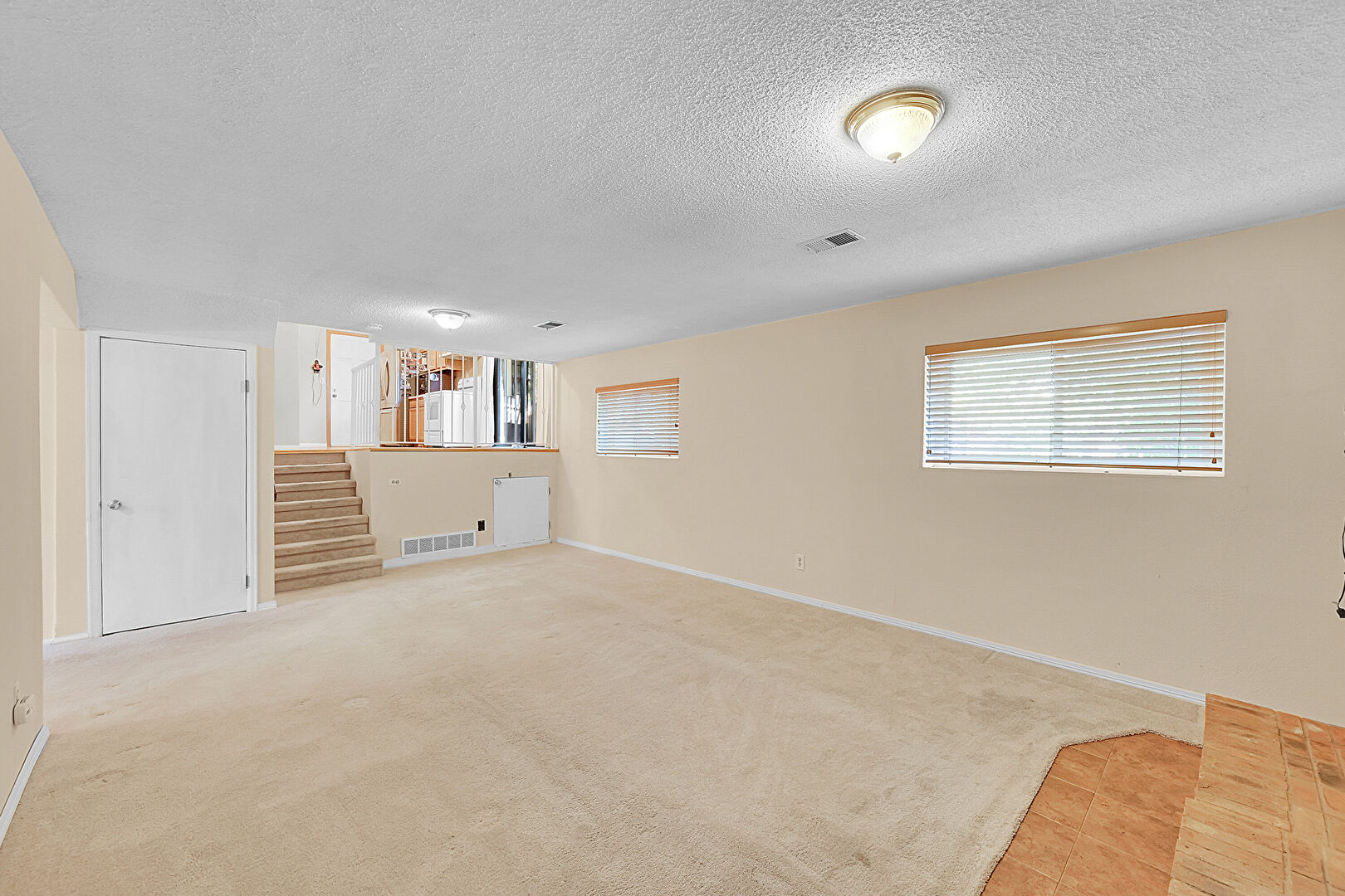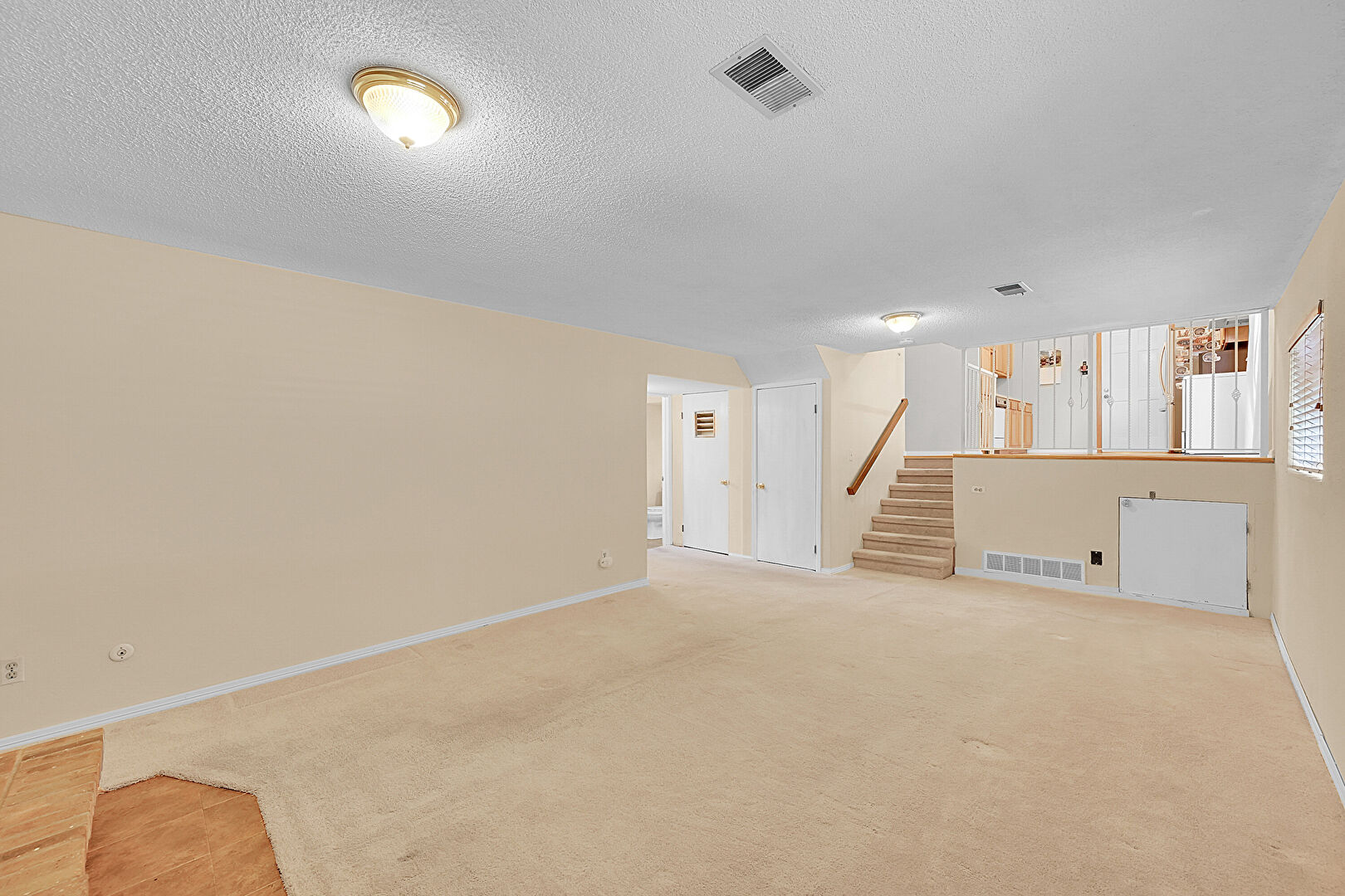 Baseboards Wall, Carpet, Drywall, Fireplace, Natural Light, Smoke Carbon Monoxide Detector, Stairs, Textured Ceiling, Vent, Drywall, Stairs, Textured Ceiling