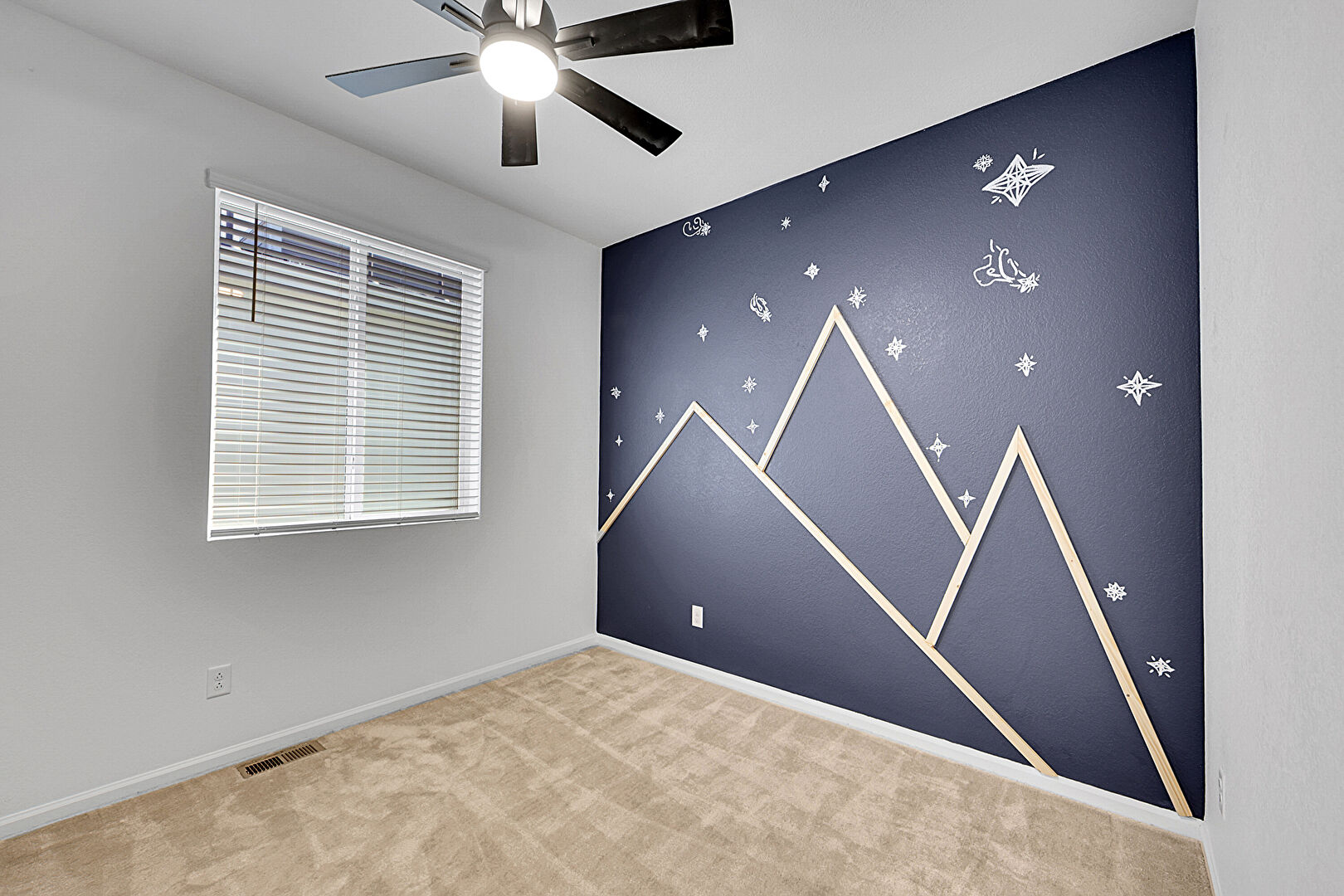 Accent Wall, Baseboards Wall, Carpet, Ceiling Fan, Closet, Drywall, Natural Light, Smoke Carbon Monoxide Detector, Vent, Baseboards Wall, Carpet, Ceiling Fan, Drywall, Natural Light, Vent