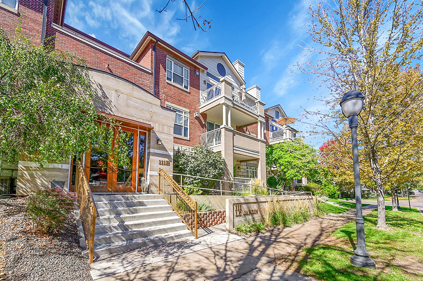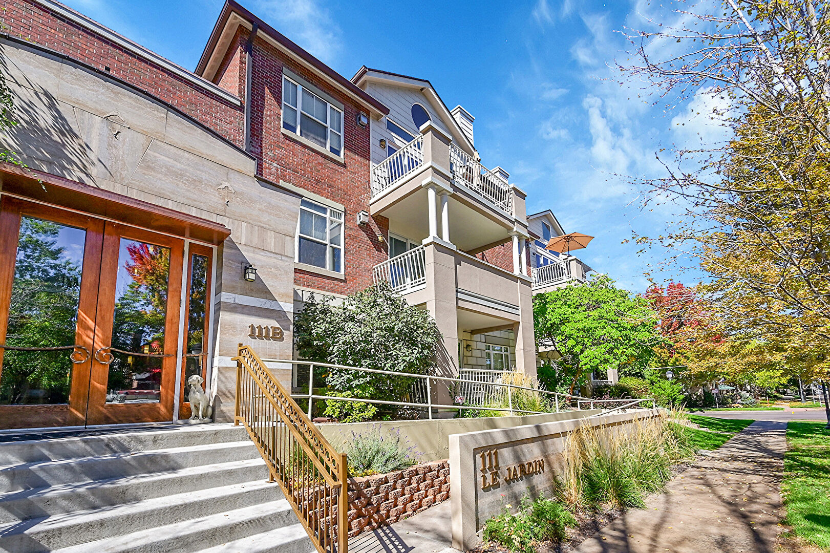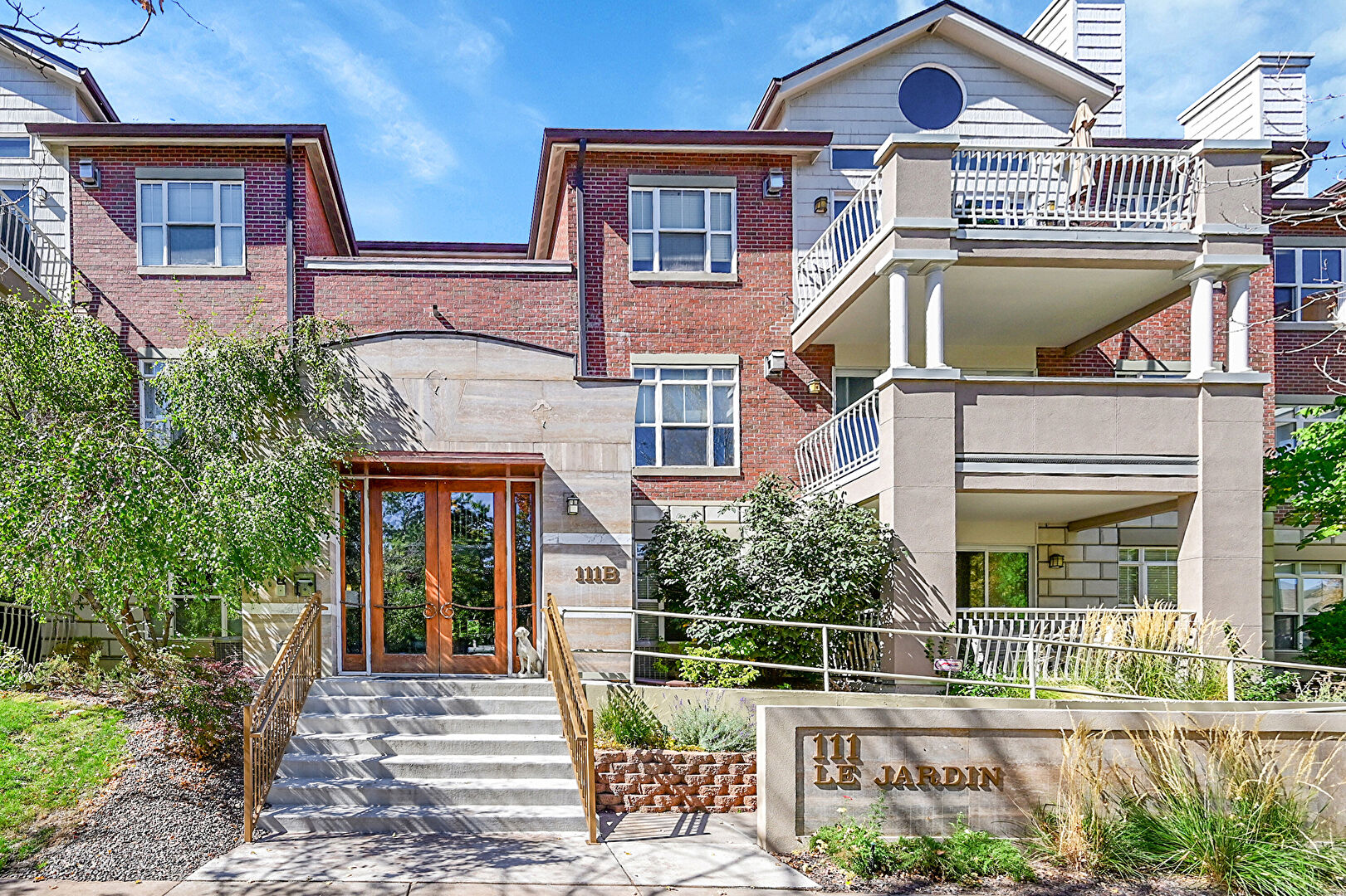 Balcony, Brick Siding, Chimney, Downspout, Fence, French Doors, Gutters, Satellite Dish, Stone Siding, Stoop, Central Ac, Fence, Gutters, Water Meter