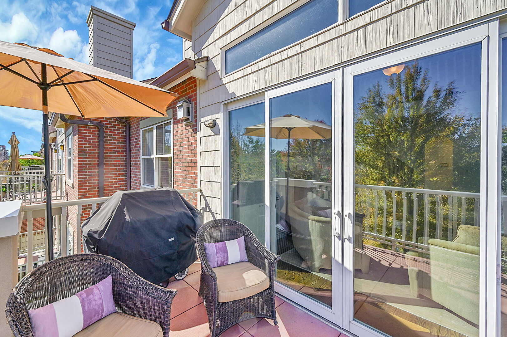 Balcony, Grill, Outdoor Living Space, Sunroom, Woods View, Balcony, Grill, Residential View