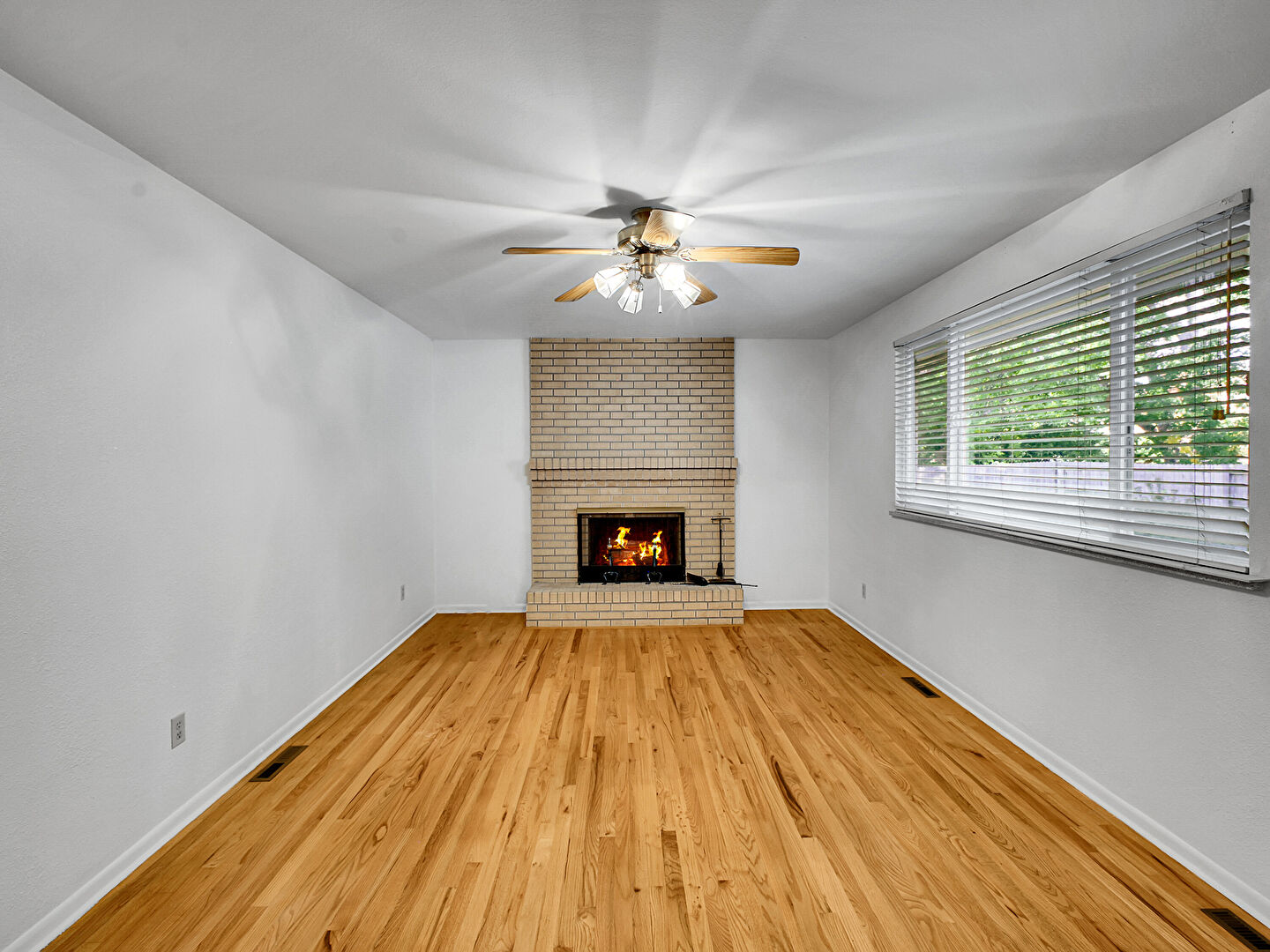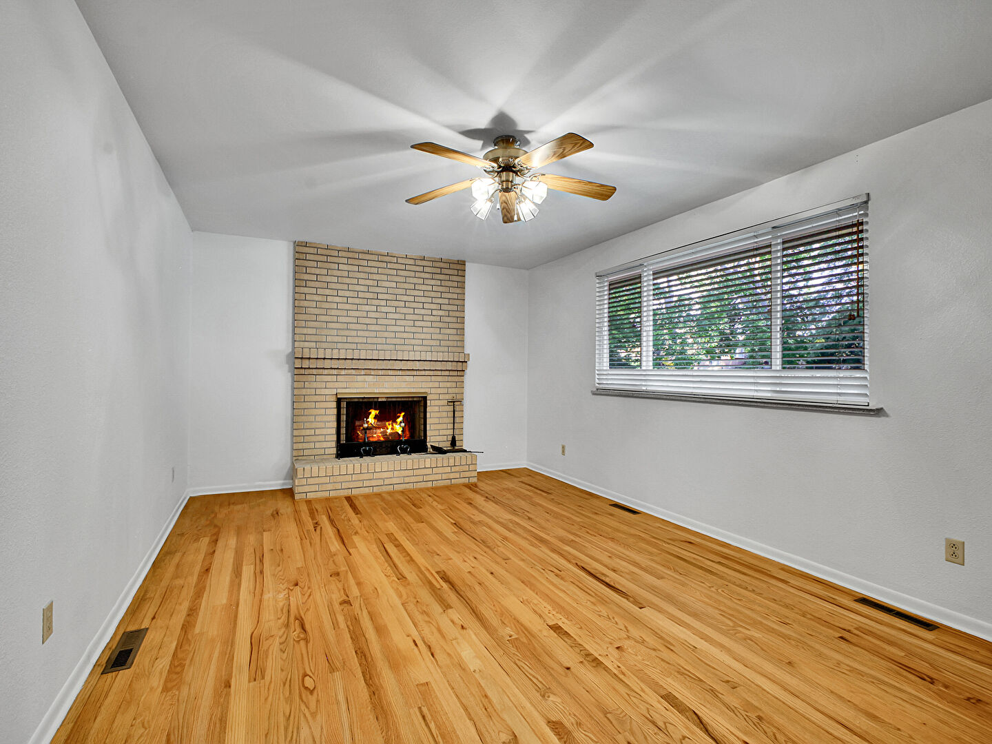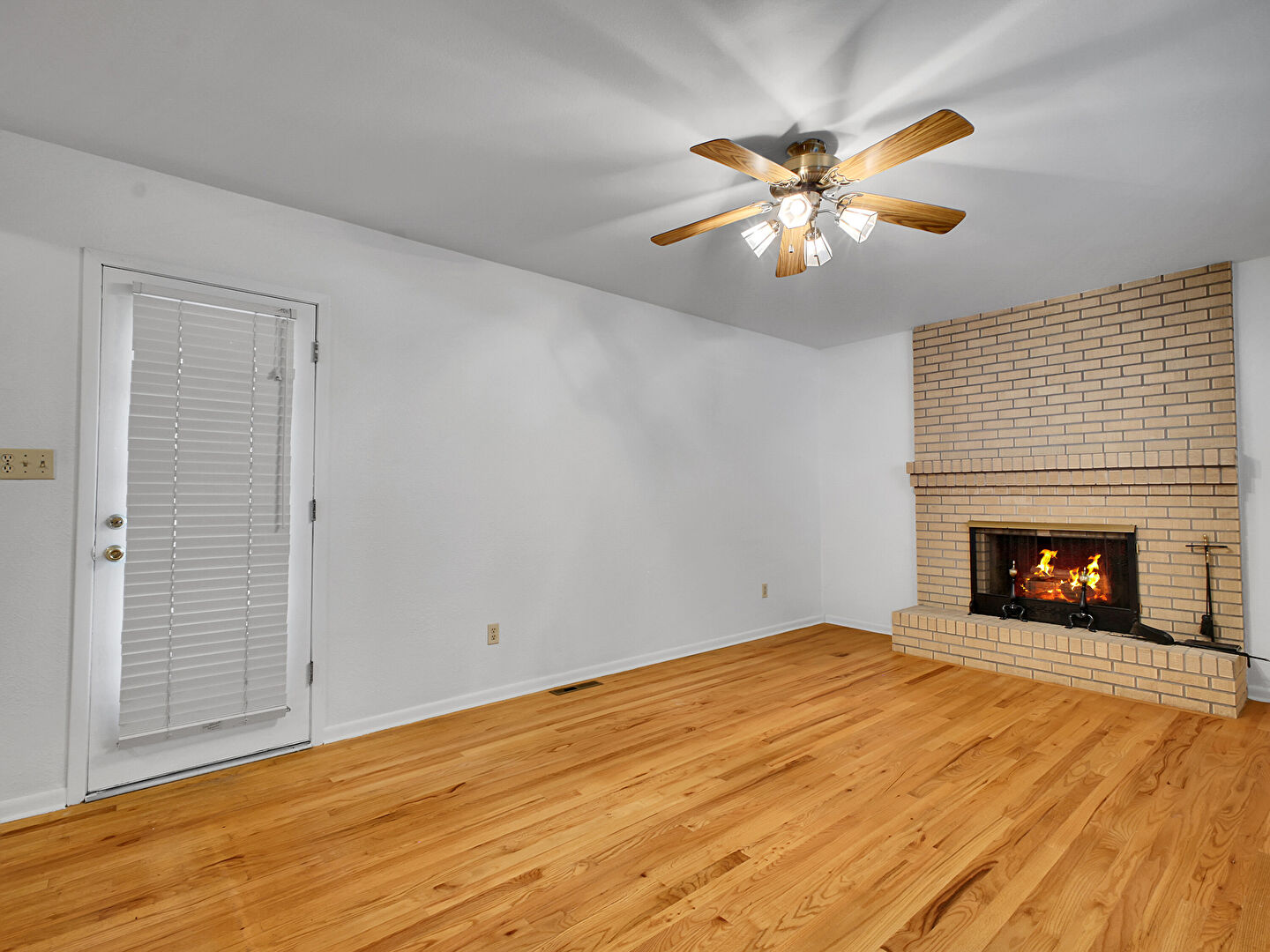 Baseboards Wall, Ceiling Fan, Drywall, Fireplace, Natural Light, Vent, Wood Finish Floor, Drywall, Fireplace, Natural Light, Notable Chandelier, Vent, Wood Finish Floor