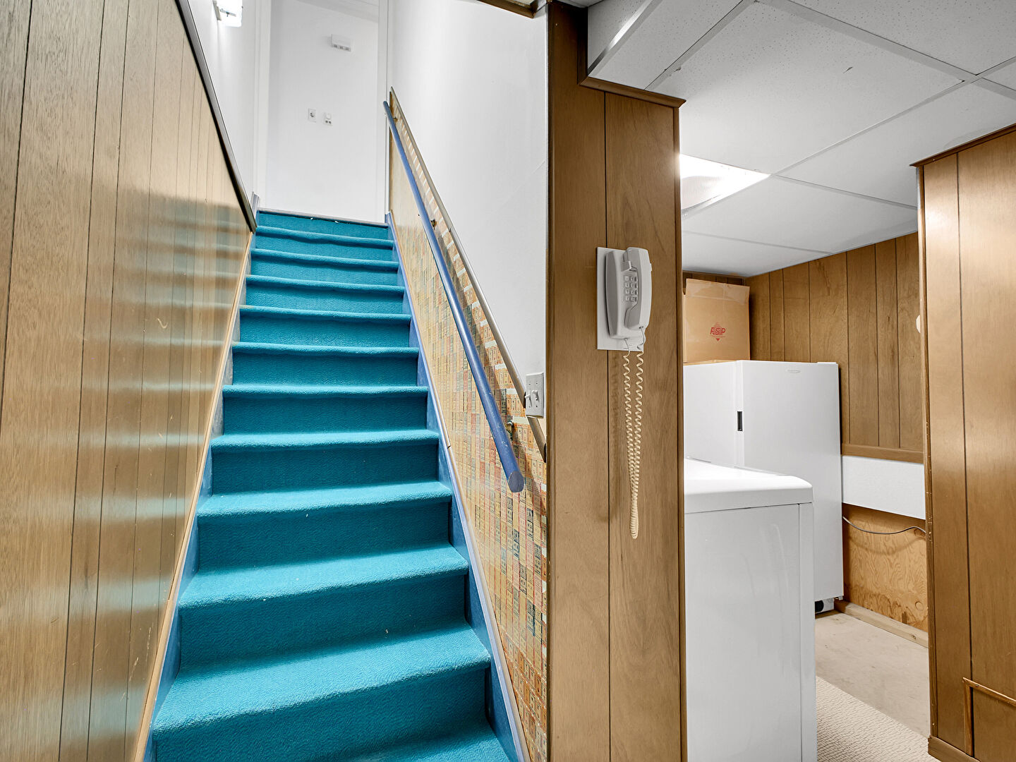 Basement, Drop Ceiling, Stairs, Washer Dryer, Wood Wall, Laundry