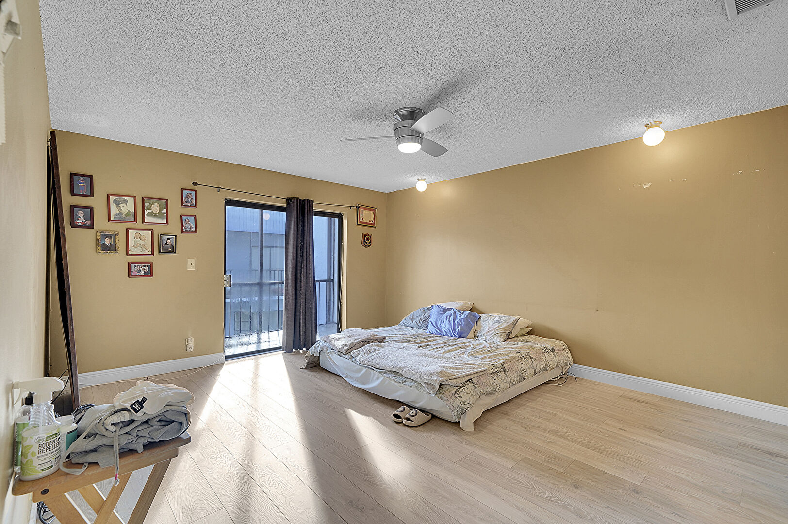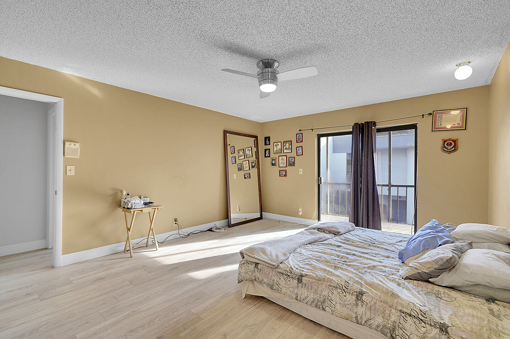 Access To Exterior, Baseboards Wall, Ceiling Fan, Drywall, Ensuite Bathroom, Natural Light, Textured Ceiling, Vent, Wood Finish Floor, Baseboards Wall, Closet, Wood Finish Floor