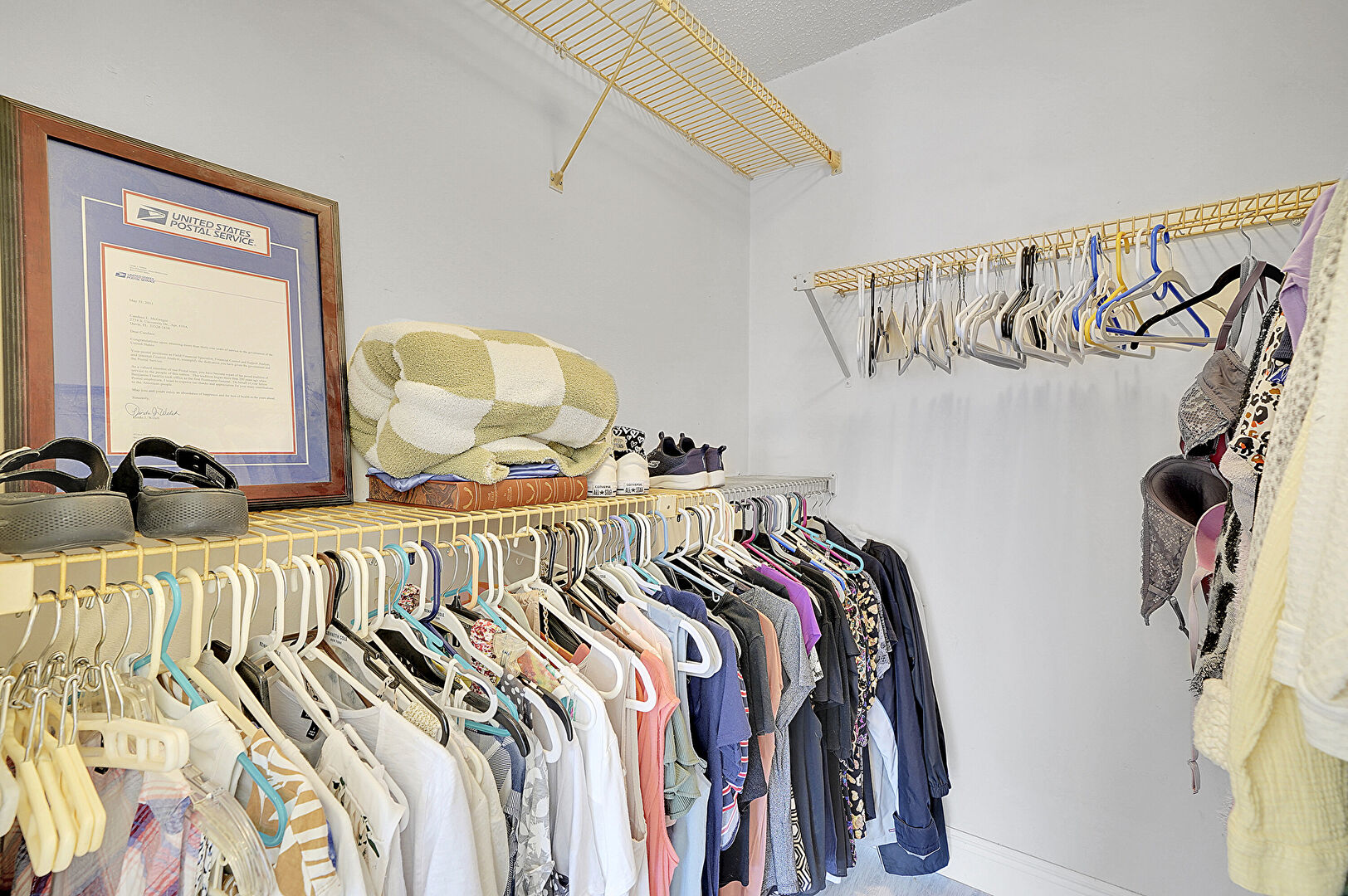 Baseboards Wall, Ceiling Fan, Closet, Drywall, Natural Light, Textured Ceiling, Wood Finish Floor, Baseboards Wall, Drywall, Vent